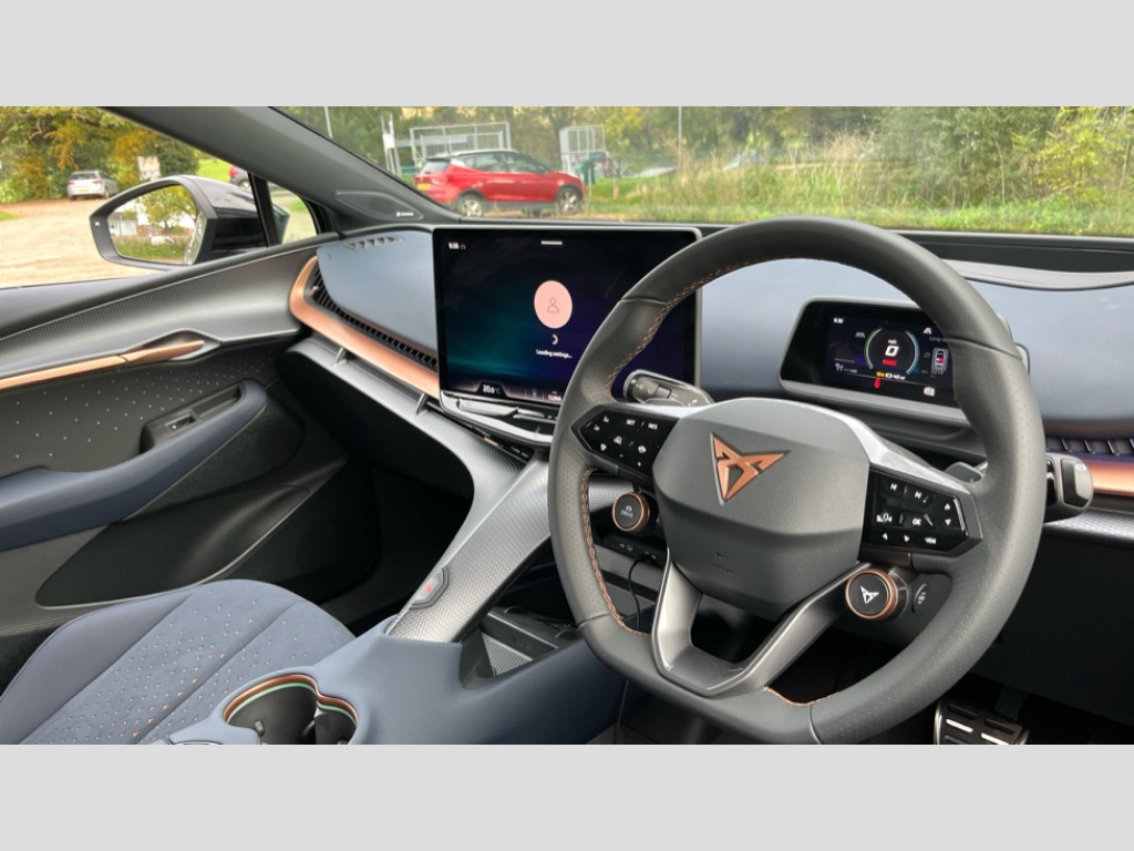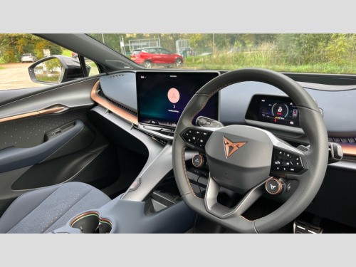 Cupra Tavascan 210kW V2 77kWh 5dr Auto 5.3" Digital Cockpit with 15" central display infotainment system, Augmented reality head up display, Bluetooth, Car 2X function, Drive Profile Selection (Range, Comfort, Performance, CUPRA, Individual), Dynamic road sign display, Dynamic steering, Electric tailgate with virtual pedal + switch in driver door, Emergency assist, Emergency call service, Emergency steering support with turn assist, Exit warning and assist, Forward collision warning, Intelligent park assist, Intelligent voice control powered by ChatGPT, Lane assist, Level 2 autonomous driving, Level 2 autonomous parking, Navigation system with media and CUPRA Connect with online services, PAS, Predictive adaptive cruise control with speed limiter, Rear traffic alert, Rear view camera, Remote park assist, Side assist, Top view camera, Traffic jam assist, Traffic sign recognition, Trained park assist, Travel assist, Wireless charger, Wireless full link smartphone integration, 11 kW AC onboard charger, 135kW DC charging capacity, 6m Type 2 Mode 3 Charging Cable - 32 Amp/22kW, Dynamic chassis control Sport, Gear ratio 7915, Shock absorption in front, Sports rear shock absorption, AM/FM and DAB radio, CUPRA interior sound, Sennheiser premium audio (12 speakers), Two front and two rear USB sockets, Auto dimming interior rear view mirror, Dark tinted windows, Electric adjustable/heated/folding door mirrors, Front and rear electric windows, Front and rear illuminated CUPRA logos, Front light assist, Heated rear window, Illuminated door handles, LED daytime running lights, LED third brake light, Matrix LED headlights with Matrix Beam and signature, Panoramic sunroof, Rain and light sensors, Rear 3D lights with ceremony, Rear side wing doors, Rear wiper, Tow hook preparation, Transport protection film, Welcome light with logo projector in door mirrors, 12 way electrical adjustment and memory function for driver and front passenger, 3 seat bench in 2nd row, 3 zone Climatronic air conditioning, Aluminium pedals, Ambient lighting "Immersive", Centre console with armrest, Double floor in boot, Front + rear carpet mats, Front and rear head restraints, Front bucket seats, Heated front seats, Heated leather wrapped multi function steering wheel with satellite buttons, Illuminated door mouldings, ISOFIX points in outer rear seats with top tether anchorage points, Microfiber upholstery, Rear armrest, Single front passenger seat, Sun visors with illuminated vanity mirrors, 3 point seatbelts in front with pretensioner/lap belt pretensioner and height adjustment, ABS, Active bonnet, Attention and drowsiness assist, Child locks on rear doors, Driver and front passenger airbags with front passenger airbag deactivation, side airbag in front with curtain airbag and front interaction airbag, ESC (Electronic Stability Control), Extended safety system (proactive passenger protection system, basic, front and rear), Pre crash system, Rollover assist, Tyre pressure monitoring system, Visual and acoustic seat belt reminder, Anti theft alarm system with interior monitoring, backup horn and towing protection, Keyless entry and go, 21" Katla machined alloy wheels with copper inserts and 255/40 R21 performance tyres, Anti-theft wheel bolts protection, Self sealing tyres, Tool kit