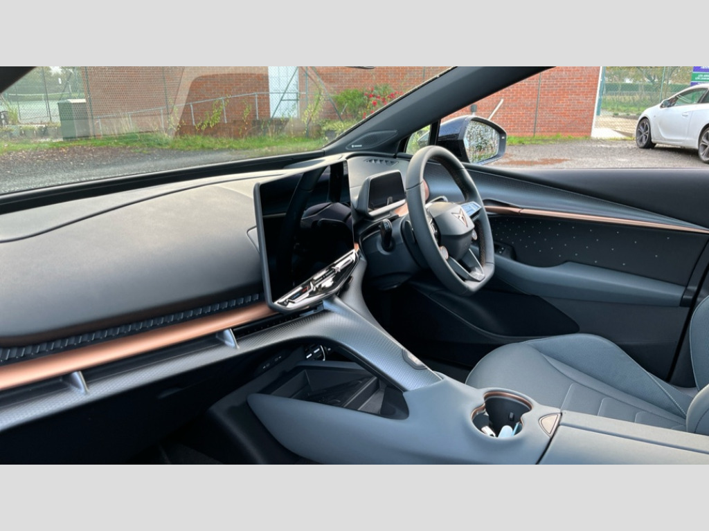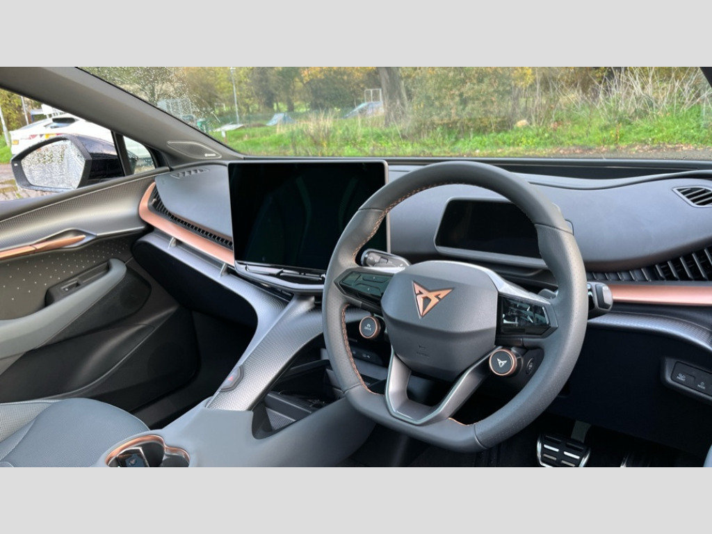 Cupra Tavascan 250kW VZ2 77kWh AWD 5dr Auto 5.3" Digital Cockpit with 15" central display infotainment system, Augmented reality head up display, Bluetooth, Car 2X function, Drive Profile Selection (Range, Comfort, Performance, CUPRA, Individual), Dynamic road sign display, Dynamic steering, Electric tailgate with virtual pedal + switch in driver door, Emergency assist, Emergency call service, Emergency steering support with turn assist, Exit warning and assist, Forward collision warning, Intelligent park assist, Intelligent voice control powered by ChatGPT, Lane assist, Level 2 autonomous driving, Level 2 autonomous parking, Navigation system with media and CUPRA Connect with online services, PAS, Predictive adaptive cruise control with speed limiter, Rear traffic alert, Rear view camera, Remote park assist, Side assist, Top view camera, Traffic jam assist, Traffic sign recognition, Trained park assist, Travel assist, Wireless charger, Wireless full link smartphone integration, 11 kW AC onboard charger, 135kW DC charging capacity, 6m Type 2 Mode 3 Charging Cable - 32 Amp/22kW, Dynamic chassis control Sport, Gear ratio 7915, Shock absorption in front, Sports rear shock absorption, AM/FM and DAB radio, CUPRA interior sound, Sennheiser premium audio (12 speakers), Two front and two rear USB sockets, Auto dimming interior rear view mirror, Dark tinted windows, Electric adjustable/heated/folding door mirrors, Front and rear electric windows, Front and rear illuminated CUPRA logos, Front light assist, Heated rear window, Illuminated door handles, LED daytime running lights, LED third brake light, Matrix LED headlights with Matrix Beam and signature, Panoramic sunroof, Rain and light sensors, Rear 3D lights with ceremony, Rear side wing doors, Rear wiper, Tow hook preparation, Transport protection film, Welcome light with logo projector in door mirrors, 12 way electrical adjustment and memory function for driver and front passenger, 3 seat bench in 2nd row, 3 zone Climatronic air conditioning, Aluminium pedals, Ambient lighting "Immersive", Centre console with armrest, Double floor in boot, Front + rear carpet mats, Front and rear head restraints, Front bucket seats, Heated leather wrapped multi function steering wheel with satellite buttons, Illuminated door mouldings, ISOFIX points in outer rear seats with top tether anchorage points, Microfiber upholstery, Rear armrest, Single front passenger seat, Sun visors with illuminated vanity mirrors, Winter pack - Tavascan, 3 point seatbelts in front with pretensioner/lap belt pretensioner and height adjustment, ABS, Active bonnet, Attention and drowsiness assist, Child locks on rear doors, Driver and front passenger airbags with front passenger airbag deactivation, side airbag in front with curtain airbag and front interaction airbag, ESC (Electronic Stability Control), Extended safety system (proactive passenger protection system, basic, front and rear), Pre crash system, Rollover assist, Tyre pressure monitoring system, Visual and acoustic seat belt reminder, Anti theft alarm system with interior monitoring, backup horn and towing protection, Keyless entry and go, 21" Katla machined alloy wheels with copper inserts and 255/40 R21 performance tyres, Anti-theft wheel bolts protection, Self sealing tyres, Tool kit