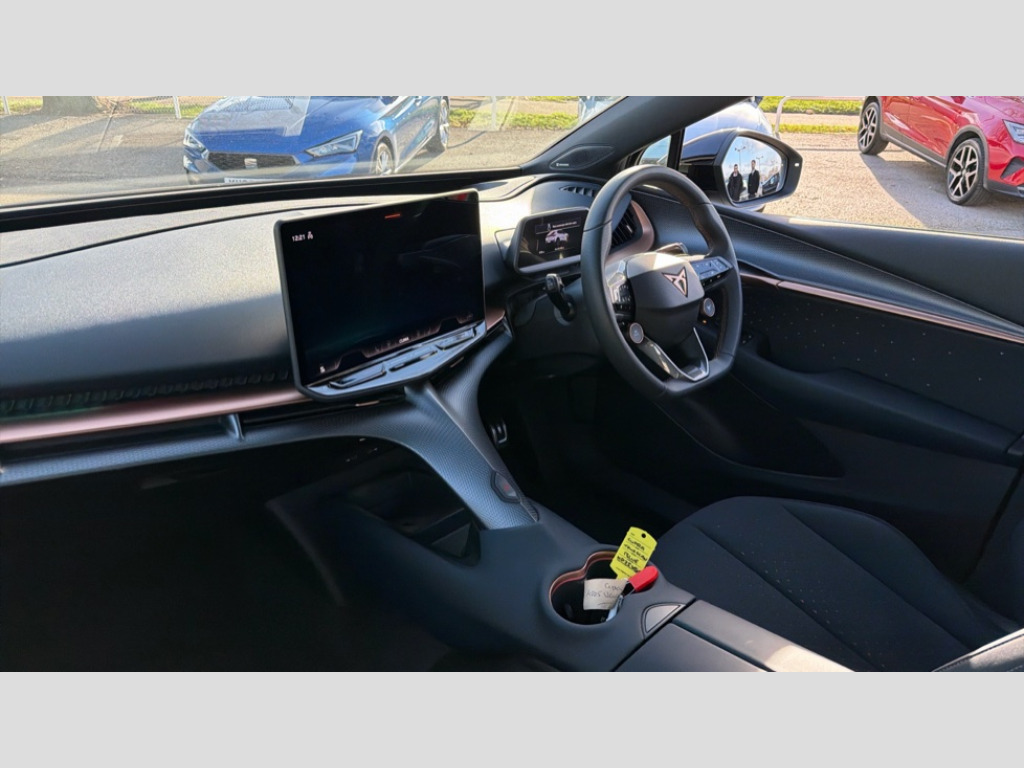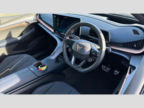 Cupra Tavascan 250kW VZ1 77kWh AWD 5dr Auto 5.3" Digital Cockpit with 15" central display infotainment system, Augmented reality head up display, Bluetooth, Car 2X function, Drive Profile Selection (Range, Comfort, Performance, CUPRA, Individual), Dynamic road sign display, Dynamic steering, Electric tailgate with virtual pedal, Emergency assist, Emergency call service, Emergency steering support with turn assist, Exit warning and assist, Forward collision warning, Intelligent park assist, Intelligent voice control, Lane assist, Level 2 autonomous driving, Level 2 autonomous parking, Navigation system with media and CUPRA Connect with online services, PAS, Predictive adaptive cruise control with speed limiter, Rear traffic alert, Rear view camera, Remote park assist, Side assist, Top view camera, Traffic jam assist, Traffic sign recognition, Trained park assist, Travel assist, Wireless charger, Wireless full link smartphone integration, 11 kW AC onboard charger, 135kW DC charging capacity, 6m Type 2 Mode 3 Charging Cable - 32 Amp/22kW, Dynamic chassis control Sport, Gear ratio 11,347 and 7,915, Shock absorption in front, Sports rear shock absorption, AM/FM and DAB radio, Sennheiser premium audio (12 speakers), Two front and two rear USB sockets, Auto dimming interior rear view mirror, Dark tinted windows, Electric adjustable/heated/folding door mirrors, Front and rear electric windows, Front and rear illuminated CUPRA logos, Front light assist, Heated rear window, Illuminated door handles, LED daytime running lights, LED third brake light, Matrix LED headlights with Matrix Beam and signature, Panoramic sunroof, Rain and light sensors, Rear 3D lights with ceremony, Rear side wing doors, Rear wiper, Tow hook preparation, Transport protection film, Welcome light with logo projector in door mirrors, 12 way electrical adjustment and memory function for driver and front passenger, 3 seat bench in 2nd row, 3 zone Climatronic air conditioning, Aluminium pedals, Ambient lighting "Immersive", Centre console with armrest, Double floor in boot, Front + rear carpet mats, Front and rear head restraints, Front bucket seats, Heated front seats, Heated leather wrapped multi function steering wheel with satellite buttons, Illuminated door mouldings, ISOFIX points in outer rear seats with top tether anchorage points, Microfiber upholstery, Rear armrest, Single front passenger seat, Sun visors with illuminated vanity mirrors, 3 point seatbelts in front with pretensioner/lap belt pretensioner and height adjustment, ABS, Active bonnet, Attention and drowsiness assist, Child locks on rear doors, Driver and front passenger airbags with front passenger airbag deactivation, side airbag in front with curtain airbag and front interaction airbag, ESC (Electronic Stability Control), Extended safety system (proactive passenger protection system, basic, front and rear), Pre crash system, Rollover assist, Tyre pressure monitoring system, Visual and acoustic seat belt reminder, Anti theft alarm system with interior monitoring, backup horn and towing protection, Keyless entry and go, 21" Katla machined alloy wheels with copper inserts and 255/40 R21 performance tyres, Anti-theft wheel bolts protection, Self sealing tyres, Tool kit