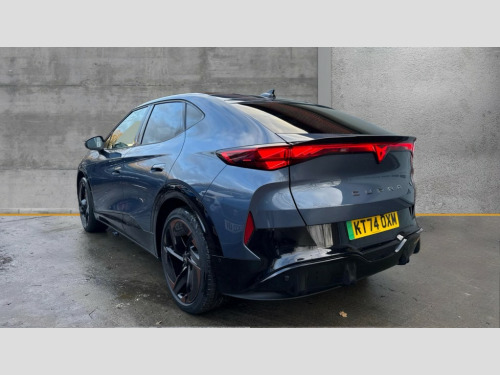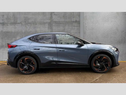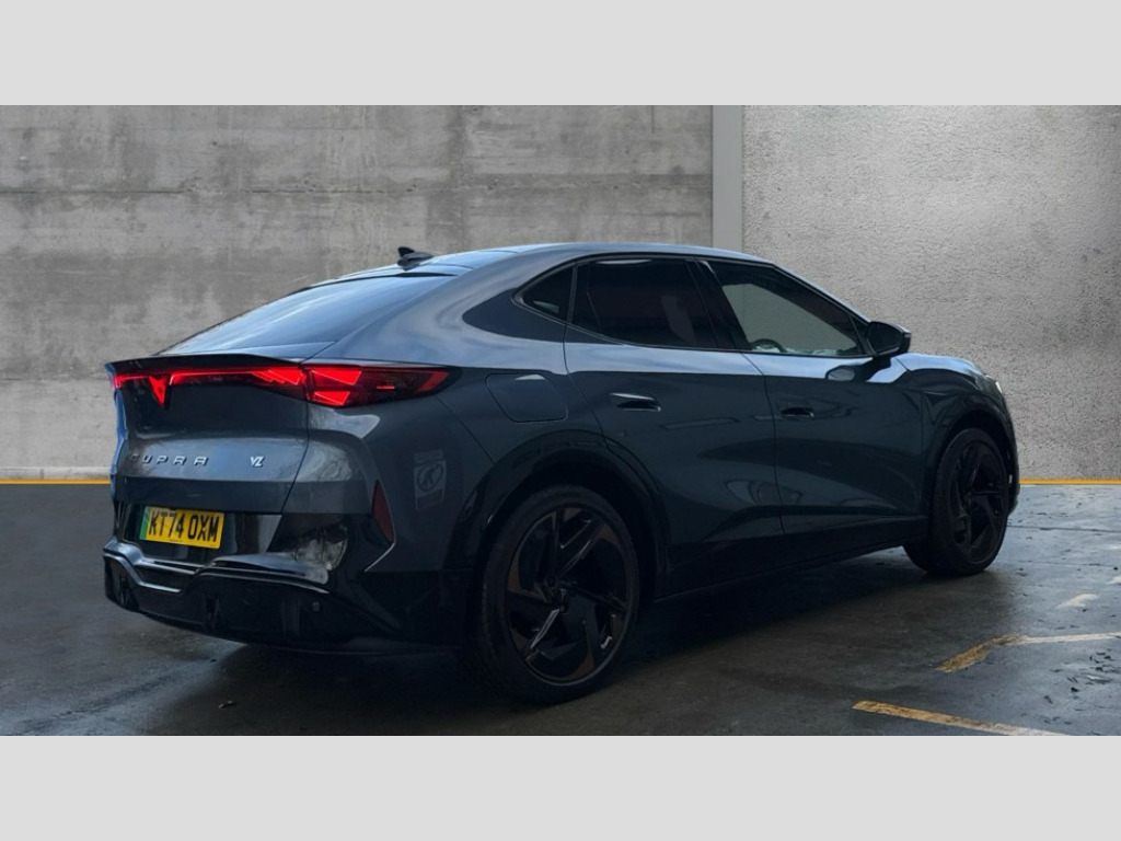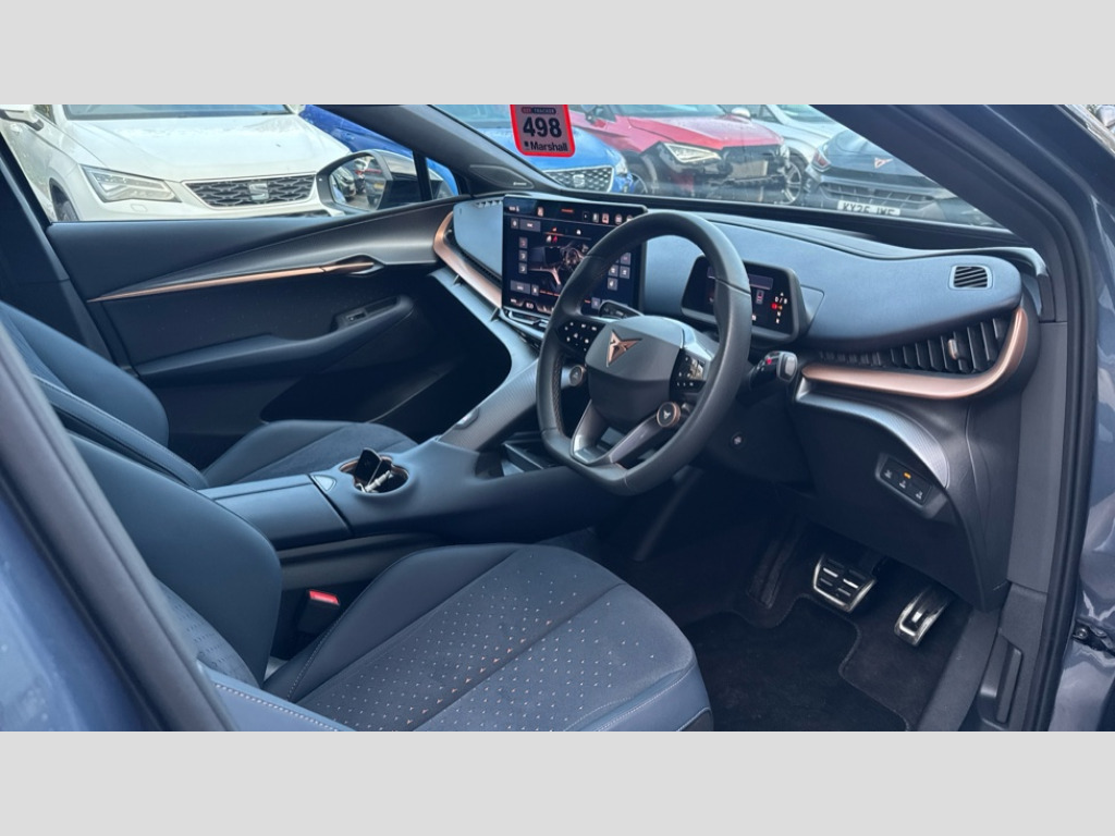 Cupra Tavascan 250kW VZ1 77kWh AWD 5dr Auto 5.3" Digital Cockpit with 15" central display infotainment system, Augmented reality head up display, Bluetooth, Car 2X function, Drive Profile Selection (Range, Comfort, Performance, CUPRA, Individual), Dynamic road sign display, Dynamic steering, Electric tailgate with virtual pedal, Emergency assist, Emergency call service, Emergency steering support with turn assist, Exit warning and assist, Forward collision warning, Intelligent park assist, Intelligent voice control, Lane assist, Level 2 autonomous driving, Level 2 autonomous parking, Navigation system with media and CUPRA Connect with online services, PAS, Predictive adaptive cruise control with speed limiter, Rear traffic alert, Rear view camera, Remote park assist, Side assist, Top view camera, Traffic jam assist, Traffic sign recognition, Trained park assist, Travel assist, Wireless charger, Wireless full link smartphone integration, 11 kW AC onboard charger, 135kW DC charging capacity, 6m Type 2 Mode 3 Charging Cable - 32 Amp/22kW, Dynamic chassis control Sport, Gear ratio 11,347 and 7,915, Shock absorption in front, Sports rear shock absorption, AM/FM and DAB radio, Sennheiser premium audio (12 speakers), Two front and two rear USB sockets, Auto dimming interior rear view mirror, Dark tinted windows, Electric adjustable/heated/folding door mirrors, Front and rear electric windows, Front and rear illuminated CUPRA logos, Front light assist, Heated rear window, Illuminated door handles, LED daytime running lights, LED third brake light, Matrix LED headlights with Matrix Beam and signature, Panoramic sunroof, Rain and light sensors, Rear 3D lights with ceremony, Rear side wing doors, Rear wiper, Tow hook preparation, Transport protection film, Welcome light with logo projector in door mirrors, 12 way electrical adjustment and memory function for driver and front passenger, 3 seat bench in 2nd row, 3 zone Climatronic air conditioning, Aluminium pedals, Ambient lighting "Immersive", Centre console with armrest, Double floor in boot, Front + rear carpet mats, Front and rear head restraints, Front bucket seats, Heated front seats, Heated leather wrapped multi function steering wheel with satellite buttons, Illuminated door mouldings, ISOFIX points in outer rear seats with top tether anchorage points, Microfiber upholstery, Rear armrest, Single front passenger seat, Sun visors with illuminated vanity mirrors, 3 point seatbelts in front with pretensioner/lap belt pretensioner and height adjustment, ABS, Active bonnet, Attention and drowsiness assist, Child locks on rear doors, Driver and front passenger airbags with front passenger airbag deactivation, side airbag in front with curtain airbag and front interaction airbag, ESC (Electronic Stability Control), Extended safety system (proactive passenger protection system, basic, front and rear), Pre crash system, Rollover assist, Tyre pressure monitoring system, Visual and acoustic seat belt reminder, Anti theft alarm system with interior monitoring, backup horn and towing protection, Keyless entry and go, 21" Katla machined alloy wheels with copper inserts and 255/40 R21 performance tyres, Anti-theft wheel bolts protection, Self sealing tyres, Tool kit
