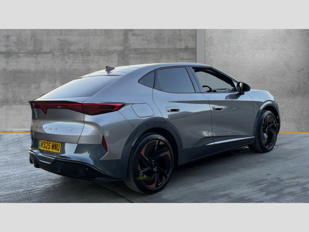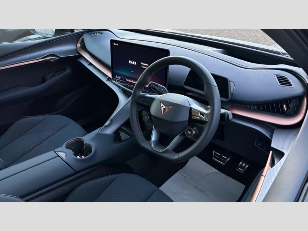 Cupra Tavascan 250kW VZ1 77kWh AWD 5dr Auto 5.3" Digital Cockpit with 15" central display infotainment system, Augmented reality head up display, Bluetooth, Car 2X function, Drive Profile Selection (Range, Comfort, Performance, CUPRA, Individual), Dynamic road sign display, Dynamic steering, Electric tailgate with virtual pedal + switch in driver door, Emergency assist, Emergency call service, Emergency steering support with turn assist, Exit warning and assist, Forward collision warning, Intelligent park assist, Intelligent voice control powered by ChatGPT, Lane assist, Level 2 autonomous driving, Level 2 autonomous parking, Navigation system with media and CUPRA Connect with online services, PAS, Predictive adaptive cruise control with speed limiter, Rear traffic alert, Rear view camera, Remote park assist, Side assist, Top view camera, Traffic jam assist, Traffic sign recognition, Trained park assist, Travel assist, Wireless charger, Wireless full link smartphone integration, 11 kW AC onboard charger, 135kW DC charging capacity, 6m Type 2 Mode 3 Charging Cable - 32 Amp/22kW, Dynamic chassis control Sport, Gear ratio 11,347 and 7,915, Shock absorption in front, Sports rear shock absorption, AM/FM and DAB radio, CUPRA interior sound, Sennheiser premium audio (12 speakers), Two front and two rear USB sockets, Auto dimming interior rear view mirror, Dark tinted windows, Electric adjustable/heated/folding door mirrors, Front and rear electric windows, Front and rear illuminated CUPRA logos, Front light assist, Heated rear window, Illuminated door handles, LED daytime running lights, LED third brake light, Matrix LED headlights with Matrix Beam and signature, Panoramic sunroof, Rain and light sensors, Rear 3D lights with ceremony, Rear side wing doors, Rear wiper, Tow hook preparation, Transport protection film, Welcome light with logo projector in door mirrors, 12 way electrical adjustment and memory function for driver and front passenger, 3 seat bench in 2nd row, 3 zone Climatronic air conditioning, Aluminium pedals, Ambient lighting "Immersive", Centre console with armrest, Double floor in boot, Front + rear carpet mats, Front and rear head restraints, Front bucket seats, Heated front seats, Heated leather wrapped multi function steering wheel with satellite buttons, Illuminated door mouldings, ISOFIX points in outer rear seats with top tether anchorage points, Microfiber upholstery, Rear armrest, Single front passenger seat, Sun visors with illuminated vanity mirrors, 3 point seatbelts in front with pretensioner/lap belt pretensioner and height adjustment, ABS, Active bonnet, Attention and drowsiness assist, Child locks on rear doors, Driver and front passenger airbags with front passenger airbag deactivation, side airbag in front with curtain airbag and front interaction airbag, ESC (Electronic Stability Control), Extended safety system (proactive passenger protection system, basic, front and rear), Pre crash system, Rollover assist, Tyre pressure monitoring system, Visual and acoustic seat belt reminder, Anti theft alarm system with interior monitoring, backup horn and towing protection, Keyless entry and go, 21" Katla machined alloy wheels with copper inserts and 255/40 R21 performance tyres, Anti-theft wheel bolts protection, Self sealing tyres, Tool kit