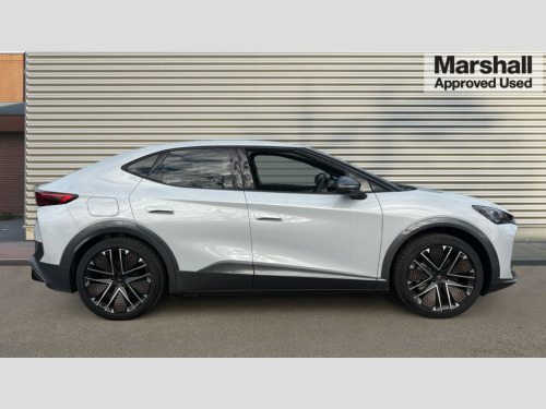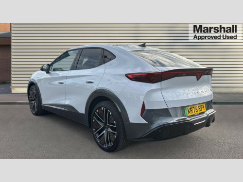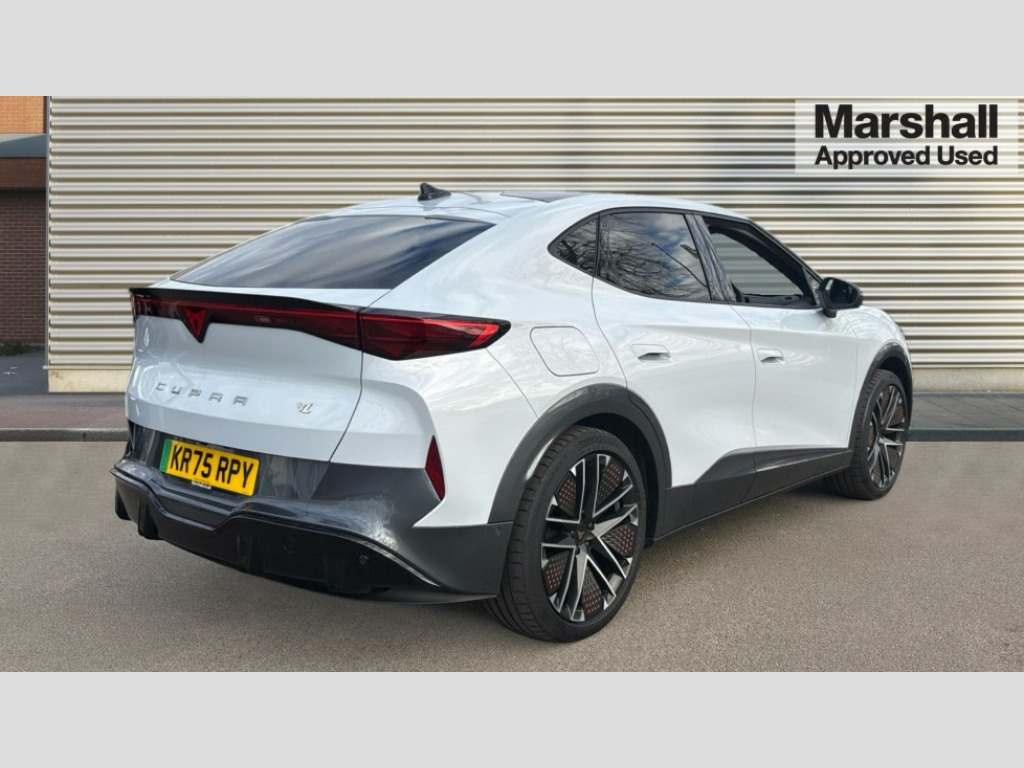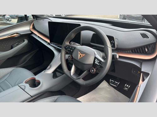 Cupra Tavascan 250kW VZ2 77kWh AWD 5dr Auto 5.3" Digital Cockpit with 15" central display infotainment system, Augmented reality head up display, Bluetooth, Car 2X function, Drive Profile Selection (Range, Comfort, Performance, CUPRA, Individual), Dynamic road sign display, Dynamic steering, Electric tailgate with virtual pedal + switch in driver door, Emergency assist, Emergency call service, Emergency steering support with turn assist, Exit warning and assist, Forward collision warning, Intelligent park assist, Intelligent voice control powered by ChatGPT, Lane assist, Level 2 autonomous driving, Level 2 autonomous parking, Navigation system with media and CUPRA Connect with online services, PAS, Predictive adaptive cruise control with speed limiter, Rear traffic alert, Rear view camera, Remote park assist, Side assist, Top view camera, Traffic jam assist, Traffic sign recognition, Trained park assist, Travel assist, Wireless charger, Wireless full link smartphone integration, 11 kW AC onboard charger, 135kW DC charging capacity, 6m Type 2 Mode 3 Charging Cable - 32 Amp/22kW, Dynamic chassis control Sport, Gear ratio 11,347 and 7,915, Shock absorption in front, Sports rear shock absorption, AM/FM and DAB radio, CUPRA interior sound, Sennheiser premium audio (12 speakers), Two front and two rear USB sockets, Auto dimming interior rear view mirror, Dark tinted windows, Electric adjustable/heated/folding door mirrors, Front and rear electric windows, Front and rear illuminated CUPRA logos, Front light assist, Heated rear window, Illuminated door handles, LED daytime running lights, LED third brake light, Matrix LED headlights with Matrix Beam and signature, Panoramic sunroof, Rain and light sensors, Rear 3D lights with ceremony, Rear side wing doors, Rear wiper, Tow hook preparation, Transport protection film, Welcome light with logo projector in door mirrors, 3 seat bench in 2nd row, 3 zone Climatronic air conditioning, Aluminium pedals, Ambient lighting "Immersive", Centre console with armrest, CUP Bucket seats, Double floor in boot, Front + rear carpet mats, Front and rear head restraints, Heated front seats, Heated leather wrapped multi function steering wheel with satellite buttons, Illuminated door mouldings, Leather upholstery, Power seat adjustment, lumbar support and memory function for drive and front passenger, Rear armrest, Single front passenger seat, Sun visors with illuminated vanity mirrors, Ventilated front seats, 3 point seatbelts in front with pretensioner/lap belt pretensioner and height adjustment, ABS, Active bonnet, Attention and drowsiness assist, Child locks on rear doors, Driver and front passenger airbags with front passenger airbag deactivation, side airbag in front with curtain airbag and front interaction airbag, ESC (Electronic Stability Control), Extended safety system (proactive passenger protection system, basic, front and rear), Pre crash system, Rollover assist, Tyre pressure monitoring system, Visual and acoustic seat belt reminder, Anti theft alarm system with interior monitoring, backup horn and towing protection, Keyless entry and go, 21" Etna forged alloy wheels with copper inserts and 255/40 R21 performance tyres, Anti-theft wheel bolts protection, Self sealing tyres, Tool kit