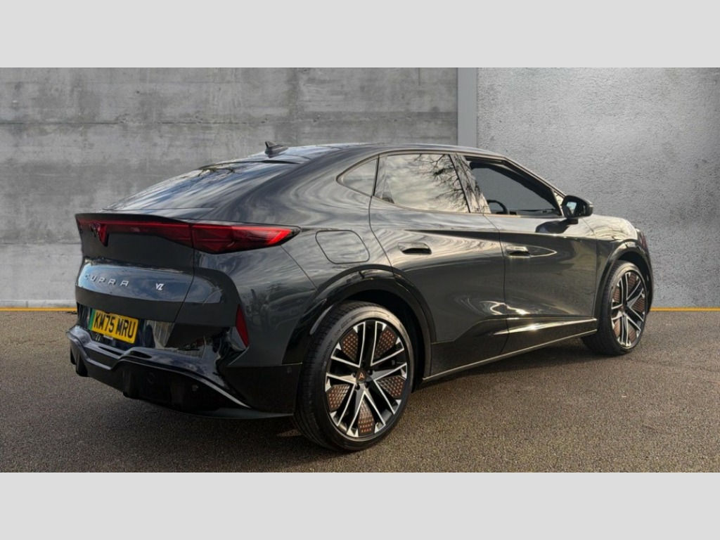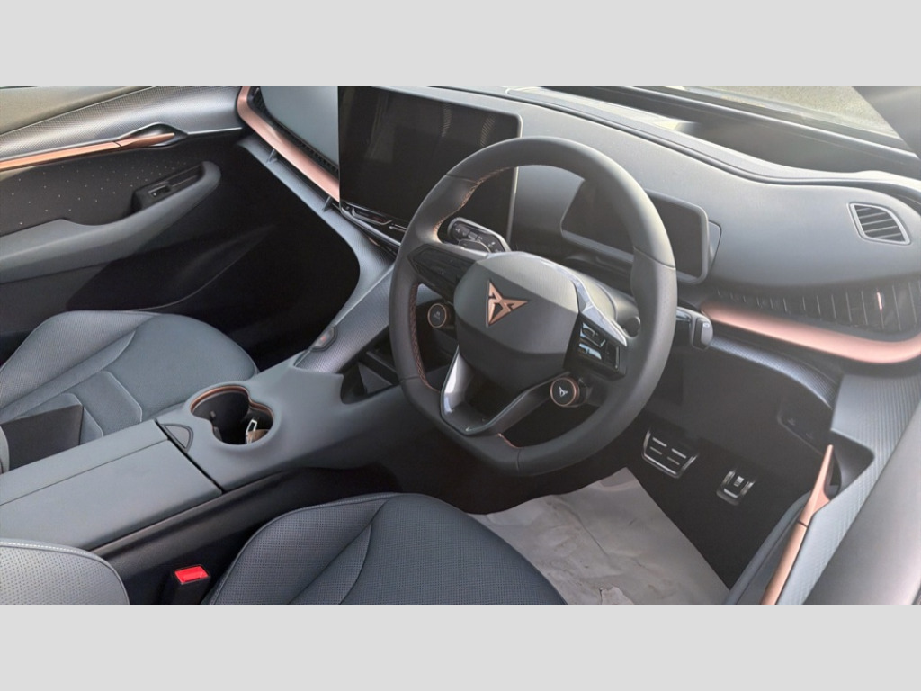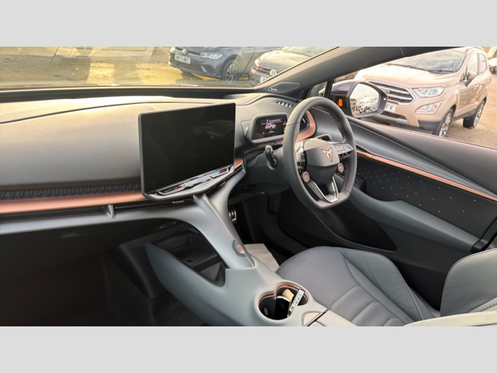 Cupra Tavascan 250kW VZ2 77kWh AWD 5dr Auto 5.3" Digital Cockpit with 15" central display infotainment system, Augmented reality head up display, Bluetooth, Car 2X function, Drive Profile Selection (Range, Comfort, Performance, CUPRA, Individual), Dynamic road sign display, Dynamic steering, Electric tailgate with virtual pedal + switch in driver door, Emergency assist, Emergency call service, Emergency steering support with turn assist, Exit warning and assist, Forward collision warning, Intelligent park assist, Intelligent voice control powered by ChatGPT, Lane assist, Level 2 autonomous driving, Level 2 autonomous parking, Navigation system with media and CUPRA Connect with online services, PAS, Predictive adaptive cruise control with speed limiter, Rear traffic alert, Rear view camera, Remote park assist, Side assist, Top view camera, Traffic jam assist, Traffic sign recognition, Trained park assist, Travel assist, Wireless charger, Wireless full link smartphone integration, 11 kW AC onboard charger, 135kW DC charging capacity, 6m Type 2 Mode 3 Charging Cable - 32 Amp/22kW, Dynamic chassis control Sport, Gear ratio 11,347 and 7,915, Shock absorption in front, Sports rear shock absorption, AM/FM and DAB radio, CUPRA interior sound, Sennheiser premium audio (12 speakers), Two front and two rear USB sockets, Auto dimming interior rear view mirror, Dark tinted windows, Electric adjustable/heated/folding door mirrors, Front and rear electric windows, Front and rear illuminated CUPRA logos, Front light assist, Heated rear window, Illuminated door handles, LED daytime running lights, LED third brake light, Matrix LED headlights with Matrix Beam and signature, Panoramic sunroof, Rain and light sensors, Rear 3D lights with ceremony, Rear side wing doors, Rear wiper, Tow hook preparation, Transport protection film, Welcome light with logo projector in door mirrors, 3 seat bench in 2nd row, 3 zone Climatronic air conditioning, Aluminium pedals, Ambient lighting "Immersive", Centre console with armrest, CUP Bucket seats, Double floor in boot, Front + rear carpet mats, Front and rear head restraints, Heated front seats, Heated leather wrapped multi function steering wheel with satellite buttons, Illuminated door mouldings, Leather upholstery, Power seat adjustment, lumbar support and memory function for drive and front passenger, Rear armrest, Single front passenger seat, Sun visors with illuminated vanity mirrors, Ventilated front seats, 3 point seatbelts in front with pretensioner/lap belt pretensioner and height adjustment, ABS, Active bonnet, Attention and drowsiness assist, Child locks on rear doors, Driver and front passenger airbags with front passenger airbag deactivation, side airbag in front with curtain airbag and front interaction airbag, ESC (Electronic Stability Control), Extended safety system (proactive passenger protection system, basic, front and rear), Pre crash system, Rollover assist, Tyre pressure monitoring system, Visual and acoustic seat belt reminder, Anti theft alarm system with interior monitoring, backup horn and towing protection, Keyless entry and go, 21" Etna forged alloy wheels with copper inserts and 255/40 R21 performance tyres, Anti-theft wheel bolts protection, Self sealing tyres, Tool kit
