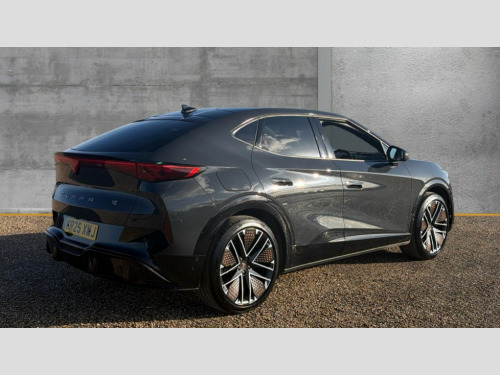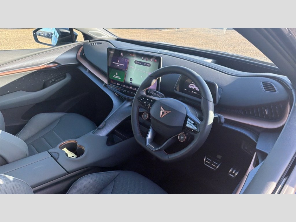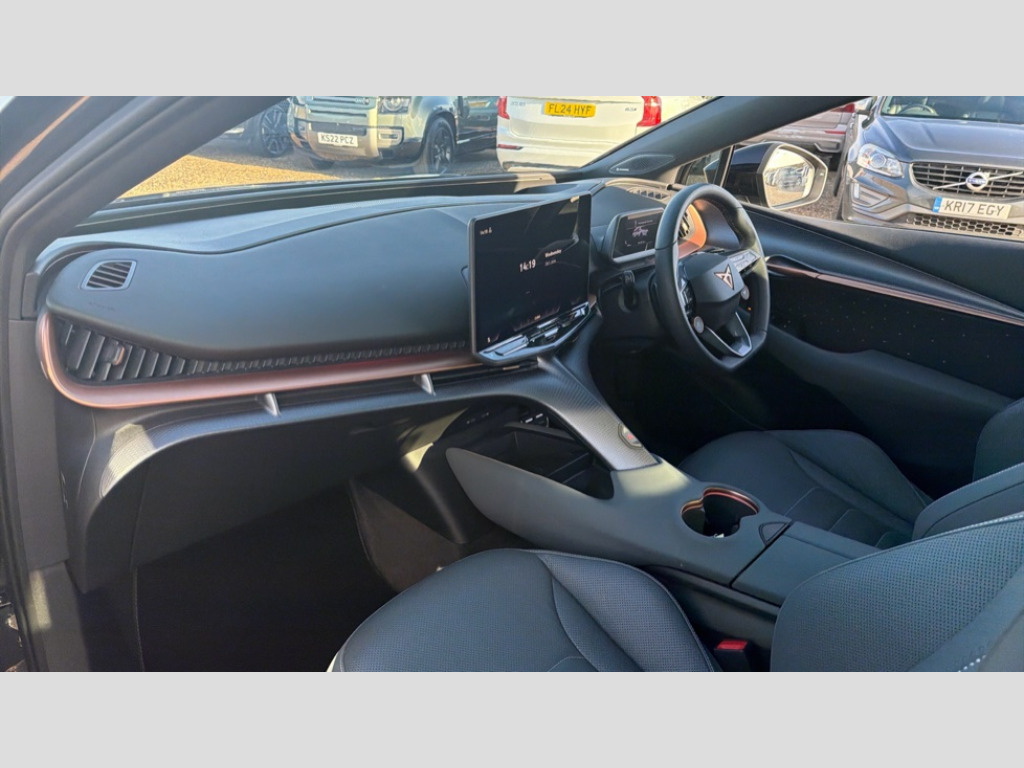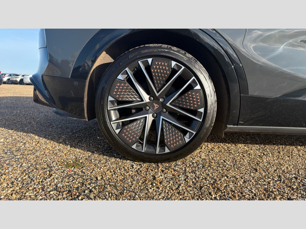 Cupra Tavascan 250kW VZ2 77kWh AWD 5dr Auto 5.3" Digital Cockpit with 15" central display infotainment system, Augmented reality head up display, Bluetooth, Car 2X function, Drive Profile Selection (Range, Comfort, Performance, CUPRA, Individual), Dynamic road sign display, Dynamic steering, Electric tailgate with virtual pedal + switch in driver door, Emergency assist, Emergency call service, Emergency steering support with turn assist, Exit warning and assist, Forward collision warning, Intelligent park assist, Intelligent voice control powered by ChatGPT, Lane assist, Level 2 autonomous driving, Level 2 autonomous parking, Navigation system with media and CUPRA Connect with online services, PAS, Predictive adaptive cruise control with speed limiter, Rear traffic alert, Rear view camera, Remote park assist, Side assist, Top view camera, Traffic jam assist, Traffic sign recognition, Trained park assist, Travel assist, Wireless charger, Wireless full link smartphone integration, 11 kW AC onboard charger, 135kW DC charging capacity, 6m Type 2 Mode 3 Charging Cable - 32 Amp/22kW, Dynamic chassis control Sport, Gear ratio 11,347 and 7,915, Shock absorption in front, Sports rear shock absorption, AM/FM and DAB radio, CUPRA interior sound, Sennheiser premium audio (12 speakers), Two front and two rear USB sockets, Auto dimming interior rear view mirror, Dark tinted windows, Electric adjustable/heated/folding door mirrors, Front and rear electric windows, Front and rear illuminated CUPRA logos, Front light assist, Heated rear window, Illuminated door handles, LED daytime running lights, LED third brake light, Matrix LED headlights with Matrix Beam and signature, Panoramic sunroof, Rain and light sensors, Rear 3D lights with ceremony, Rear side wing doors, Rear wiper, Tow hook preparation, Transport protection film, Welcome light with logo projector in door mirrors, 3 seat bench in 2nd row, 3 zone Climatronic air conditioning, Aluminium pedals, Ambient lighting "Immersive", Centre console with armrest, CUP Bucket seats, Double floor in boot, Front + rear carpet mats, Front and rear head restraints, Heated front seats, Heated leather wrapped multi function steering wheel with satellite buttons, Illuminated door mouldings, Leather upholstery, Power seat adjustment, lumbar support and memory function for drive and front passenger, Rear armrest, Single front passenger seat, Sun visors with illuminated vanity mirrors, Ventilated front seats, 3 point seatbelts in front with pretensioner/lap belt pretensioner and height adjustment, ABS, Active bonnet, Attention and drowsiness assist, Child locks on rear doors, Driver and front passenger airbags with front passenger airbag deactivation, side airbag in front with curtain airbag and front interaction airbag, ESC (Electronic Stability Control), Extended safety system (proactive passenger protection system, basic, front and rear), Pre crash system, Rollover assist, Tyre pressure monitoring system, Visual and acoustic seat belt reminder, Anti theft alarm system with interior monitoring, backup horn and towing protection, Keyless entry and go, 21" Etna forged alloy wheels with copper inserts and 255/40 R21 performance tyres, Anti-theft wheel bolts protection, Self sealing tyres, Tool kit
