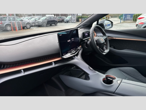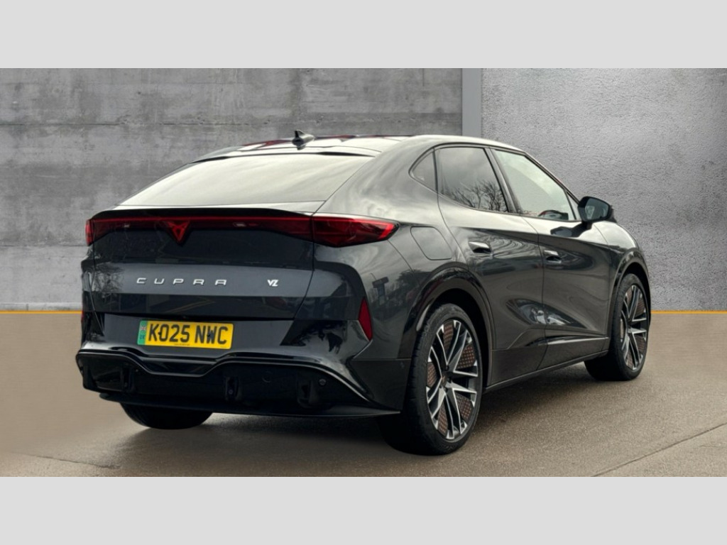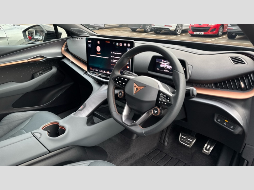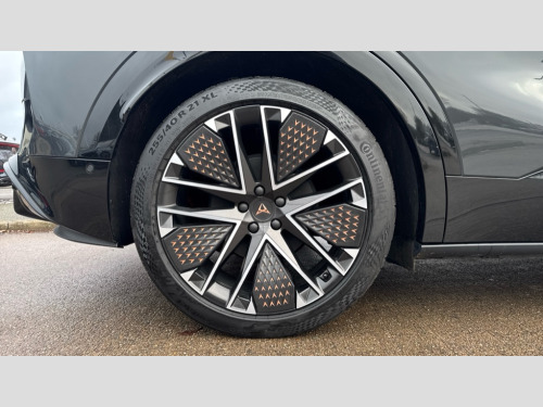 Cupra Tavascan 250kW VZ2 77kWh AWD 5dr Auto 5.3" Digital Cockpit with 15" central display infotainment system, Augmented reality head up display, Bluetooth, Car 2X function, Drive Profile Selection (Range, Comfort, Performance, CUPRA, Individual), Dynamic road sign display, Dynamic steering, Electric tailgate with virtual pedal + switch in driver door, Emergency assist, Emergency call service, Emergency steering support with turn assist, Exit warning and assist, Forward collision warning, Intelligent park assist, Intelligent voice control powered by ChatGPT, Lane assist, Level 2 autonomous driving, Level 2 autonomous parking, Navigation system with media and CUPRA Connect with online services, PAS, Predictive adaptive cruise control with speed limiter, Rear traffic alert, Rear view camera, Remote park assist, Side assist, Top view camera, Traffic jam assist, Traffic sign recognition, Trained park assist, Travel assist, Wireless charger, Wireless full link smartphone integration, 11 kW AC onboard charger, 135kW DC charging capacity, 6m Type 2 Mode 3 Charging Cable - 32 Amp/22kW, Dynamic chassis control Sport, Gear ratio 11,347 and 7,915, Shock absorption in front, Sports rear shock absorption, AM/FM and DAB radio, CUPRA interior sound, Sennheiser premium audio (12 speakers), Two front and two rear USB sockets, Auto dimming interior rear view mirror, Dark tinted windows, Electric adjustable/heated/folding door mirrors, Front and rear electric windows, Front and rear illuminated CUPRA logos, Front light assist, Heated rear window, Illuminated door handles, LED daytime running lights, LED third brake light, Matrix LED headlights with Matrix Beam and signature, Panoramic sunroof, Rain and light sensors, Rear 3D lights with ceremony, Rear side wing doors, Rear wiper, Tow hook preparation, Transport protection film, Welcome light with logo projector in door mirrors, 3 seat bench in 2nd row, 3 zone Climatronic air conditioning, Aluminium pedals, Ambient lighting "Immersive", Centre console with armrest, CUP Bucket seats, Double floor in boot, Front + rear carpet mats, Front and rear head restraints, Heated front seats, Heated leather wrapped multi function steering wheel with satellite buttons, Illuminated door mouldings, Leather upholstery, Power seat adjustment, lumbar support and memory function for drive and front passenger, Rear armrest, Single front passenger seat, Sun visors with illuminated vanity mirrors, Ventilated front seats, 3 point seatbelts in front with pretensioner/lap belt pretensioner and height adjustment, ABS, Active bonnet, Attention and drowsiness assist, Child locks on rear doors, Driver and front passenger airbags with front passenger airbag deactivation, side airbag in front with curtain airbag and front interaction airbag, ESC (Electronic Stability Control), Extended safety system (proactive passenger protection system, basic, front and rear), Pre crash system, Rollover assist, Tyre pressure monitoring system, Visual and acoustic seat belt reminder, Anti theft alarm system with interior monitoring, backup horn and towing protection, Keyless entry and go, 21" Etna forged alloy wheels with copper inserts and 255/40 R21 performance tyres, Anti-theft wheel bolts protection, Self sealing tyres, Tool kit