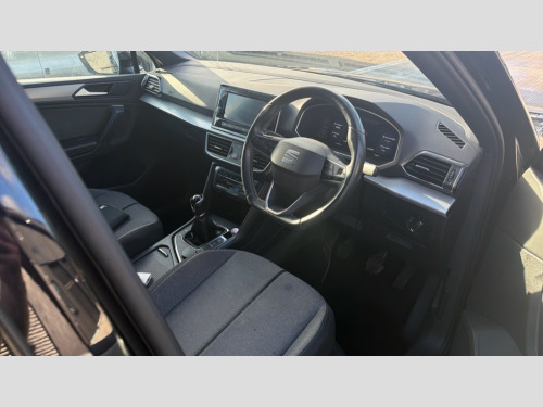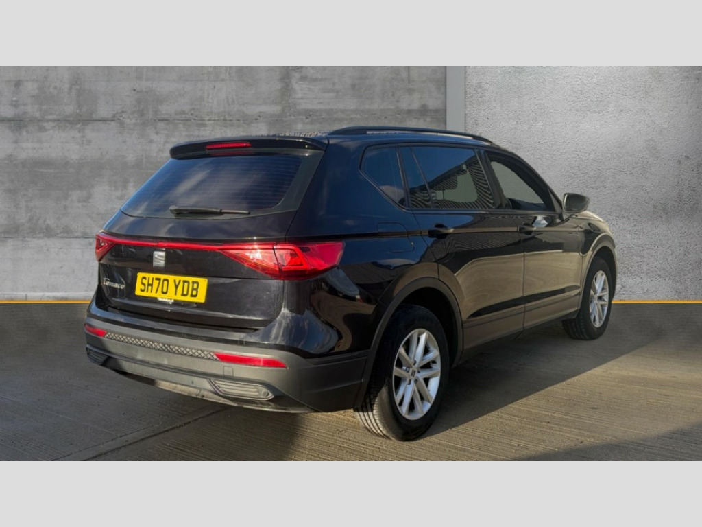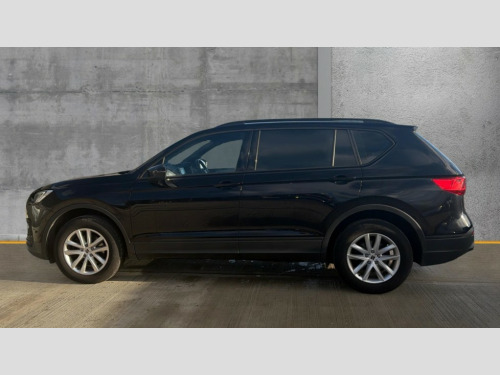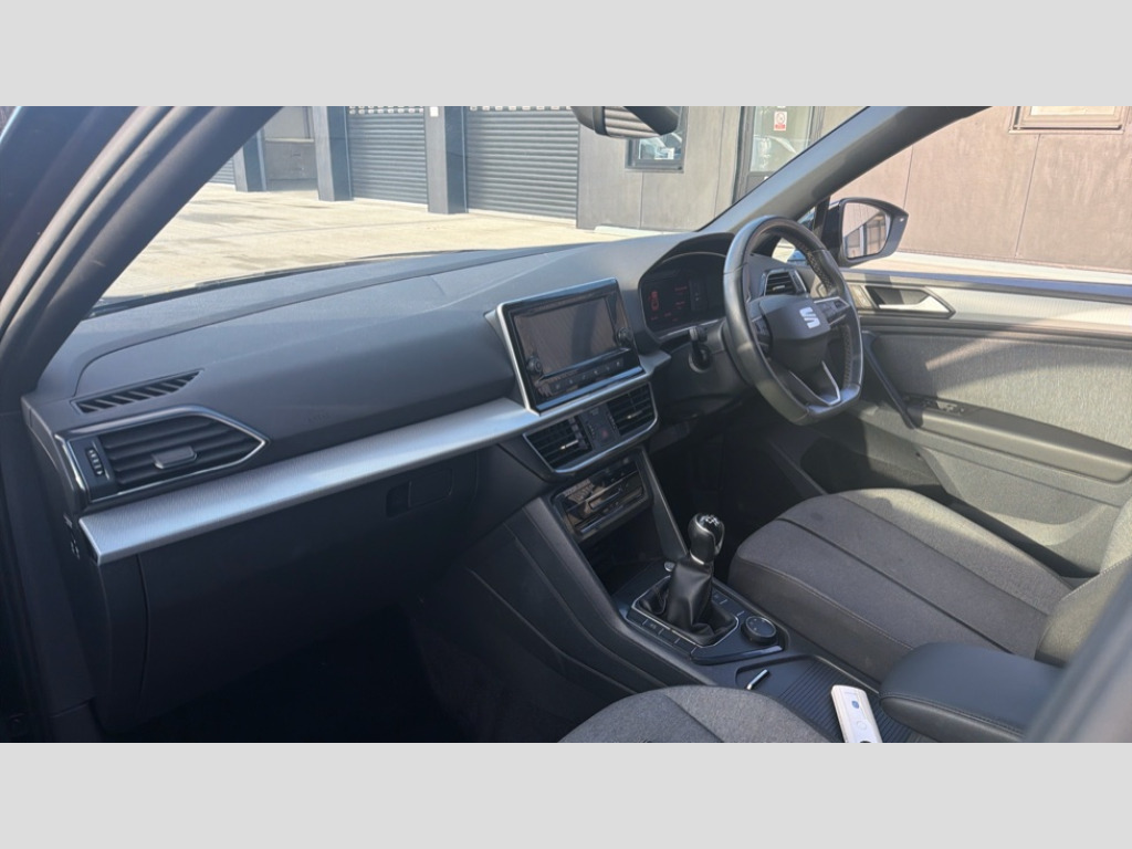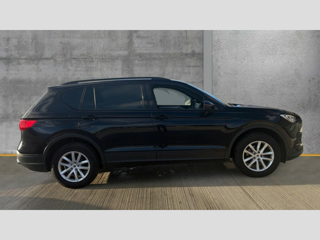 Seat Tarraco 1.5 EcoTSI SE 5dr 'Lights On' Reminder warning buzzer, 10.25" digital cockpit, Bluetooth audio streaming with handsfree system, Cruise control with speed limiter, Digital clock, Digital cockpit, e-Call (emergency call), Front assist city emergency braking and pedestrian protection, Full Link Smartphone Integration with Mirror Link, Apple Car Play, Google Android Auto, Lane assist, Low fuel warning light, Outside temperature gauge, Power assist steering, Rear parking sensor, RPM counter, SEAT Drive profile - 4 different modes, progressive steering, 4Drive versions with off-road/snow, steering response, throttle response, Trip computer, Wash water level indicator, Comfort suspension, XDS electronic differential lock, Media system with 8.25" colour touchscreen with proximity sensor, DAB, AM/FM Radio, 3 USB (type C), Aux-in, 8 speakers, SD card, Steering wheel mounted audio/telephone controls, USB (type C) cable for Apple and Android compatibility, Auto dimming rear view mirror, Auto headlights with automatic coming and leaving home function, Automatic headlight adjustment, Black bumpers, Black roof rails, Black window trims, Body colour door mirrors and handles, Chrome front grille frame, Coast to coast lighting, Electric front/rear windows, Electrically adjustable and folding door mirrors, Exterior black mouldings, Front halogen fog lights with cornering function, Fuel door linked to central locking, Full LED headlights with LED rear lights, Heated door mirrors, Hidden exhaust pipe, LED daytime running lights, LED licence plate lighting, Rain sensing wipers, Rear fog lights, Rear wash/wipe, Welcome lighting, 3 zone climate control, Ambient spot lighting and front footwell illumination, Black interior roof, Centre armrest in front with air outlet in rear, Comfort front seats, Driver and passenger sunvisor with covered and illuminated mirror, Driver/passenger lumbar adjustment, Easy fold rear seat system - second and third row, Folding table on front seat backrests, Forward and backward adjustable seats 2nd row, Four cargo rings in the boot, Front cupholders, Front seat back storage pockets, Gear shift indicator, Height adjustable driver's seat, Height adjustable front headrests, Height adjustable passenger seat, Illuminated boot, Illuminated glovebox, Instrument lighting with brightness control, ISOFIX points in outer 2nd row seats and front passenger seat with top tether anchorage points, Leather gear knob, Leather wrapped multifunction steering wheel, Luggage compartment floor with split function, Olot cloth upholstery, Rear armrest and easy back seat release mechanism from boot, Rear head restraints, Sliding boot cover, Storage compartment in roof console for sunglasses, Storage draw under front passenger seat, Three 12V sockets, 3x3 point rear seatbelts, ABS, Active front head restraints, Driver/front passenger airbag, Drivers knee airbag, Electronic parking brake with auto hold, Electronic stability control, Front passenger airbag deactivation, Front side airbags, Hill hold control, Seatbelt reminders for all seats, Tiredness recognition system, Traction control, Two curtain airbags, Tyre pressure monitoring system, Alarm, Central locking, Keyless entry and go, Locking wheel bolts, Power locking and remote control with two foldable keys and opening boot selector, Chrome interior detailing - door and dashboard decorative inserts, 17" Dynamic alloy wheels v37/1, Tool kit