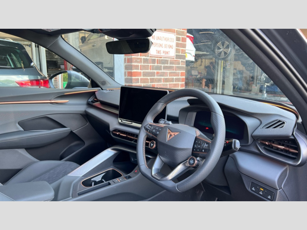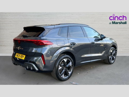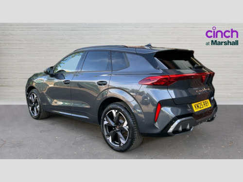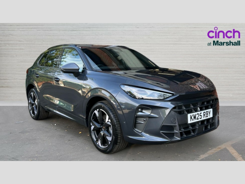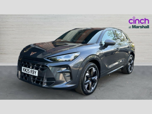 Cupra Terramar 1.5 eHybrid 204 V2 5dr DSG 10.25" digital cockpit and configurable dashboard, Adaptive cruise control with follow-to-stop and speed limiter, Advanced driver alert system, Advanced lane assist with semi-automatic vehicle control in a medical emergency and traffic jam assist, Driving profile selection and conventional shock absorber, Dynamic road sign display, E-call, Electric tailgate with virtual pedal, Emergency steering support with turn assist, Front and rear parking sensors, Front assist (Forward collision warning with automatic braking) with multifunction camera and front cross traffic assist, Head up Display, Intelligent park assist, Media system with Nav - 12.9" touch display, voice control, full link phone (wired/wireless), DAB and Steering wheel mounted controls, Rear traffic assist, Side and exit assist, Speed sensitive power steering, Start/stop system with regenerative braking, Top view camera (front camera, rear camera, 2 side cameras), Wireless phone charger, 10 amp mode 2 charging cable, 16 amp mode 3 charging cable, Auto dimming rear view mirror, Black roof rails, CUPRA 3D rear lights with ceremony & swiping indicator and illuminated logo, Dark tinted rear windows, Daytime running lights with automatic headlight control and Coming and Leaving home function, Door mirrors with memory function and lowing function on passenger mirror, Dynamic headlight range control, Electric front/rear windows, Electrically adjustable, heated and folding door mirrors, Front fog lamps with cornering function, Heat reflecting windscreen, High beam assist, LED headlamps with signature "CUPRA LED", Rain sensing wipers, Rear fog light on one side, back up light on both sides, Rear side wing doors, Rear wash/wipe, Third brake light, Welcome lights (within exterior mirror housing), 3 seat bench in 2nd row, Black roof lining, Cupra sports pedals, Dinamica cloth upholstery, Driver seat memory function, Electrically adjustable front seats including lumbar support, Four x USB Type C ports (2 in front and 2 in rear), Front and rear head restraints, Front and rear reading lights X 4, Front centre armrest, Heated front seats, Heated leather wrapped multi function sports steering wheel with tiptronic, Illuminated interior front door sills, Isofix, Operating voltage 12V, Single front passenger seat, Smart wraparound interior lighting, Sunvisors with illuminated mirror, Three zone climate control with control panel in rear, Unsplit rear seat bench, split folding backrest, with centre armrest, Variable luggage/load compartment floor, 3 point seatbelts in front with pretensioner and electric height adjustment, 3 point seatbelts on all rear seats, Brake control system - ESC and brake booster, Child proof door locks, Driver and front passenger airbags, Electronic parking brake, Front and rear disc brakes, Front interaction airbag, Front passenger airbag deactivation switch, Front side airbags with curtain airbags, Pre-crash front and rear seat belt tensioner, window closure and hazard lights, Tyre pressure monitoring system, Visual and acoustic seat belt reminder, electric contact in front and rear, Anti theft alarm, Keyless locking and starting system with keyless access, Locking wheel bolts, Black decorative trims, Chrome interior detailing, 19" Spectrum exclusive machine alloy wheels, Breakdown kit, Tool kit