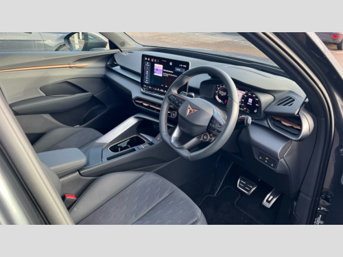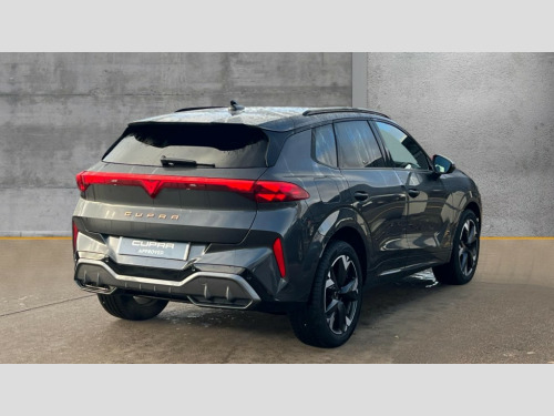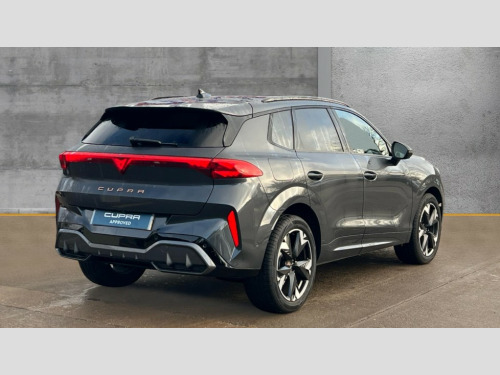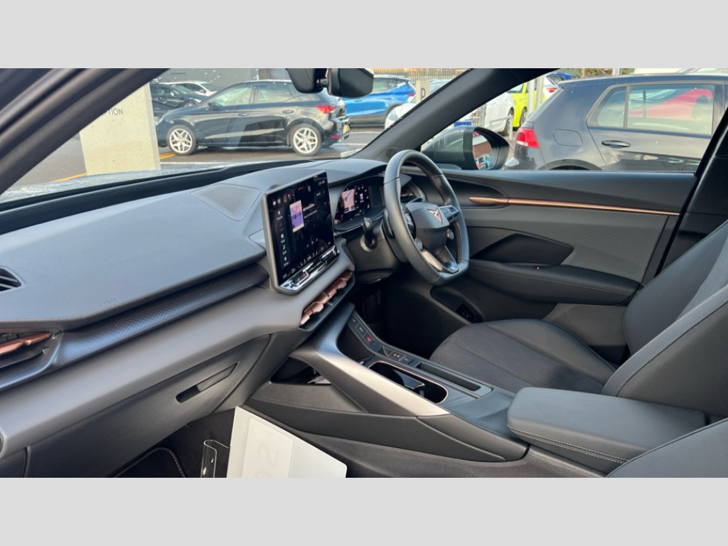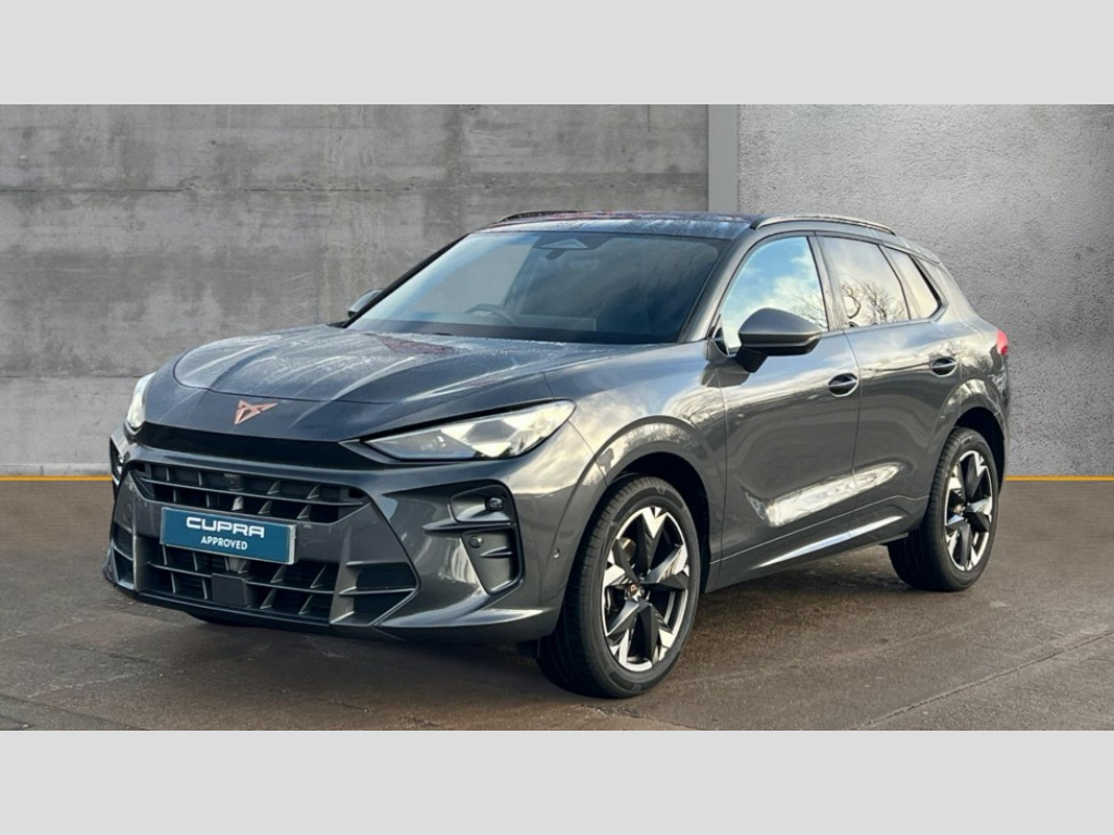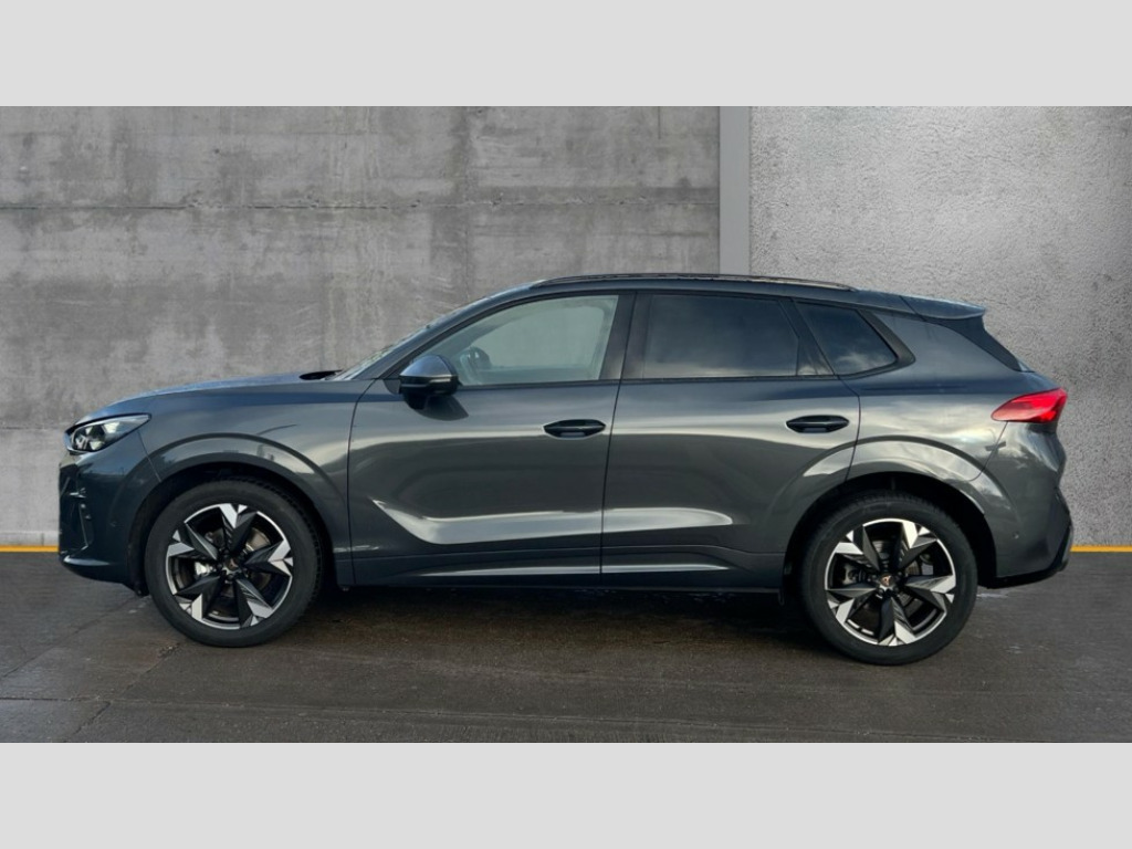Cupra Terramar 1.5 eHybrid 204 V1 5dr DSG 10.25" digital cockpit, Adaptive cruise control with follow-to-stop and speed limiter, Advanced driver alert system, Driving profile selection and conventional shock absorber, Dynamic road sign display, E-call, Electric tailgate with virtual pedal, Emergency steering support with turn assist, Front and rear parking sensors, Front assist (Forward collision warning with automatic braking) with multifunction camera and front cross traffic assist, Lane assist, Media system with Nav - 12.9" touch display, voice control, full link phone (wired/wireless), DAB and Steering wheel mounted controls, Rear view camera, Speed sensitive power steering, Start/stop system with regenerative braking, Wireless phone charger, 10 amp mode 2 charging cable, 16 amp mode 3 charging cable, 8+1 Speakers, Auto dimming rear view mirror, Black roof rails, CUPRA 3D rear lights with ceremony & swiping indicator and illuminated logo, Dark tinted rear windows, Daytime running lights with automatic headlight control and Coming and Leaving home function, Dynamic headlight range control, Electric front/rear windows, Electrically adjustable, heated and folding door mirrors, Front fog lamps with cornering function, Heat reflecting windscreen, LED headlamps with signature "CUPRA LED", Rain sensing wipers, Rear fog light on one side, back up light on both sides, Rear side wing doors, Rear wash/wipe, Third brake light, Welcome lights (within exterior mirror housing), 3 seat bench in 2nd row, Black roof lining, Cloth upholstery, Cupra sports pedals, Driver and passenger seat with manual height and lumbar adjustment, Four x USB Type C ports (2 in front and 2 in rear), Front and rear head restraints, Front and rear reading lights X 4, Front centre armrest, Heated leather wrapped multi function sports steering wheel with tiptronic, Illuminated interior front door sills, Interior ambient lighting, Isofix, Operating voltage 12V, Single front passenger seat, Sunvisors with illuminated mirror, Three zone climate control with control panel in rear, Unsplit rear seat bench, split folding backrest, with centre armrest, Variable luggage/load compartment floor, 3 point seatbelts on all rear seats, Brake control system - ESC and brake booster, Child proof door locks, Driver and front passenger airbags, Electronic parking brake, Front and rear disc brakes, Front interaction airbag, Front passenger airbag deactivation switch, Front side airbags with curtain airbags, Tyre pressure monitoring system, Visual and acoustic seat belt reminder, electric contact in front and rear, Anti theft alarm, Keyless locking and starting system with keyless access, Locking wheel bolts, Black decorative trims, Chrome interior detailing, 18" Atomic alloy wheels, Breakdown kit, Tool kit
