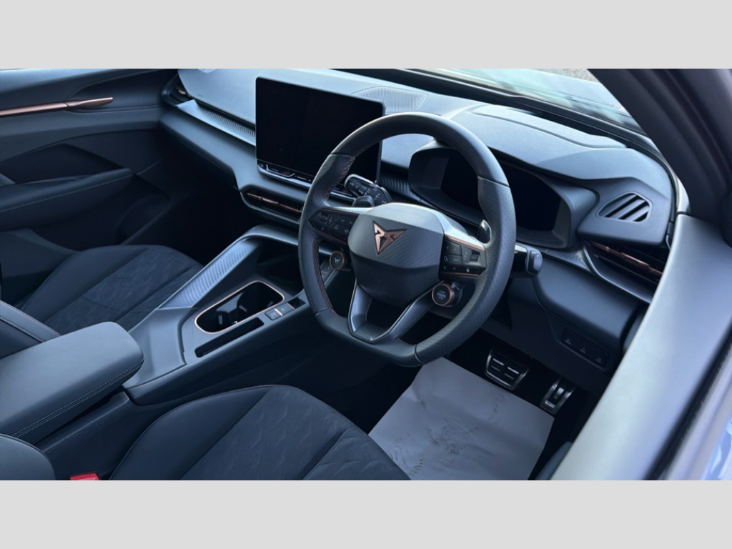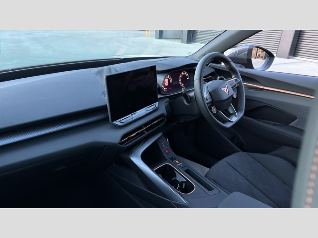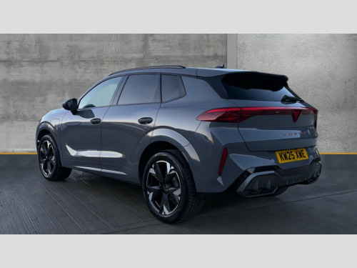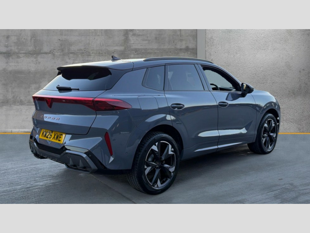 Cupra Terramar 1.5 eHybrid 204 V2 5dr DSG 10.25" digital cockpit and configurable dashboard, Adaptive cruise control with follow-to-stop and speed limiter, Advanced driver alert system, Advanced lane assist with semi-automatic vehicle control in a medical emergency and traffic jam assist, Driving profile selection and conventional shock absorber, Dynamic road sign display, E-call, Electric tailgate with virtual pedal, Emergency steering support with turn assist, Four x USB Type C ports (2 in front and 2 in rear), Front and rear parking sensors, Front assist (Forward collision warning with automatic braking) with multifunction camera and front cross traffic assist, Head up Display, Intelligent park assist, Media system with Nav - 12.9" touch display, voice control, full link phone (wired/wireless), DAB and Steering wheel mounted controls, Rear traffic assist, Side and exit assist, Speed sensitive power steering, Start/stop system with regenerative braking, Top view camera (front camera, rear camera, 2 side cameras), Wireless phone charger, 10 amp mode 2 charging cable, 16 amp mode 3 charging cable, Auto dimming rear view mirror, Black roof rails, CUPRA 3D rear lights with ceremony & swiping indicator and illuminated logo, Dark tinted rear windows, Daytime running lights with automatic headlight control and Coming and Leaving home function, Door mirrors with memory function and lowing function on passenger mirror, Dynamic headlight range control, Electric front/rear windows, Electrically adjustable, heated and folding door mirrors, Front fog lamps with cornering function, Heat reflecting windscreen, High beam assist, LED headlamps with signature "CUPRA LED", Rain sensing wipers, Rear fog light on one side, back up light on both sides, Rear side wing doors, Rear wash/wipe, Third brake light, Welcome lights (within exterior mirror housing), 3 seat bench in 2nd row, Black roof lining, Cupra sports pedals, Dinamica cloth upholstery, Driver seat memory function, Electrically adjustable front seats including lumbar support, Front and rear head restraints, Front and rear reading lights X 4, Front centre armrest, Heated front seats, Heated leather wrapped multi function sports steering wheel with tiptronic, Illuminated interior front door sills, Isofix, Operating voltage 12V, Single front passenger seat, Smart wraparound interior lighting, Sunvisors with illuminated mirror, Three zone climate control with control panel in rear, Unsplit rear seat bench, split folding backrest, with centre armrest, Variable luggage/load compartment floor, 3 point seatbelts in front with pretensioner and electric height adjustment, 3 point seatbelts on all rear seats, Brake control system - ESC and brake booster, Child proof door locks, Driver and front passenger airbags, Electronic parking brake, Front and rear disc brakes, Front interaction airbag, Front passenger airbag deactivation switch, Front side airbags with curtain airbags, Pre-crash front and rear seat belt tensioner, window closure and hazard lights, Tyre pressure monitoring system, Visual and acoustic seat belt reminder, electric contact in front and rear, Anti theft alarm, Keyless locking and starting system with keyless access, Locking wheel bolts, Black decorative trims, Chrome interior detailing, 19" Spectrum exclusive machine alloy wheels, Breakdown kit, Tool kit