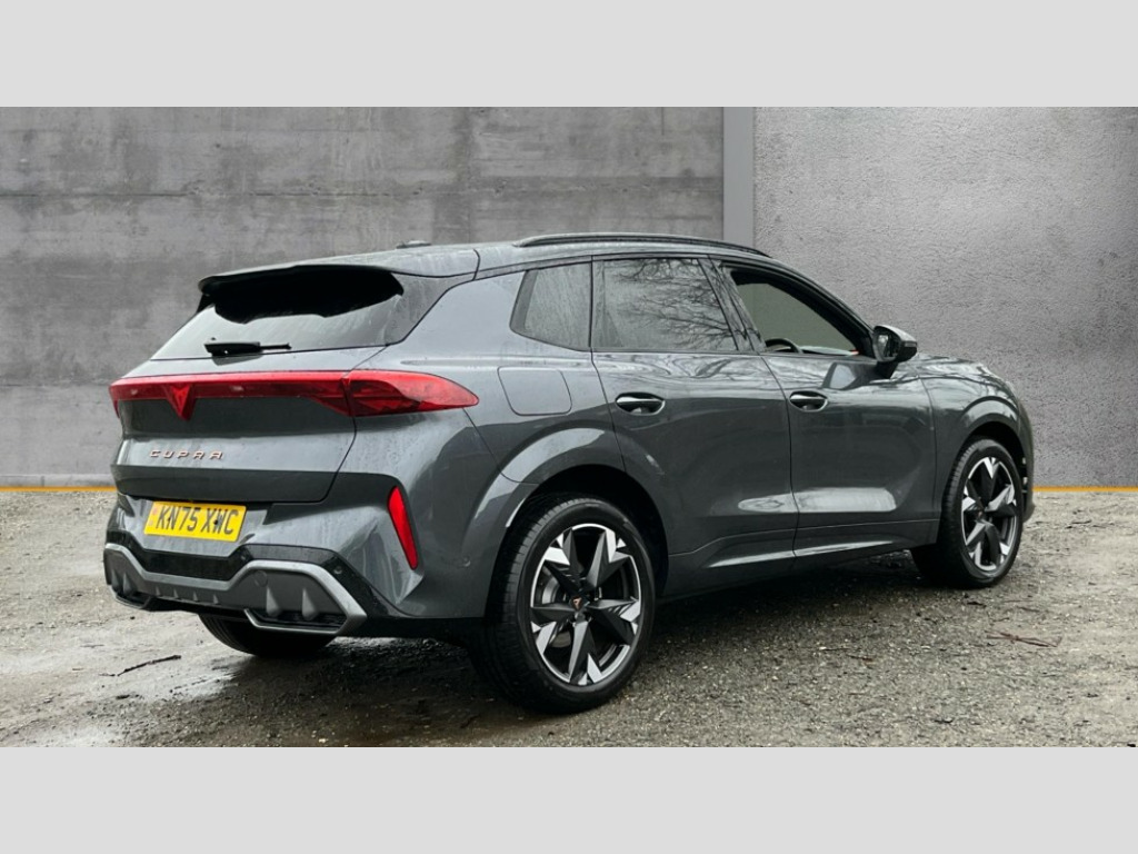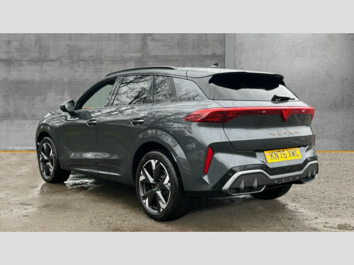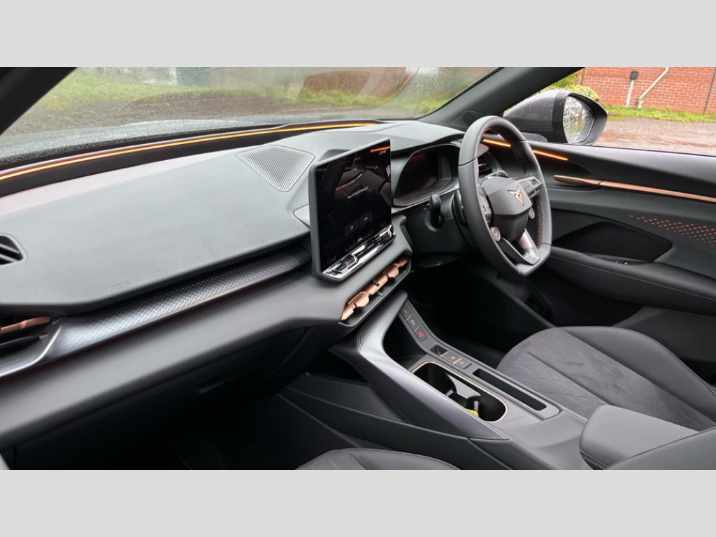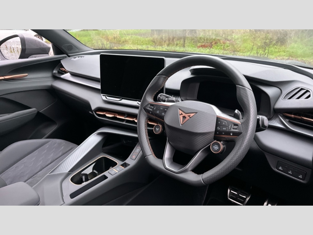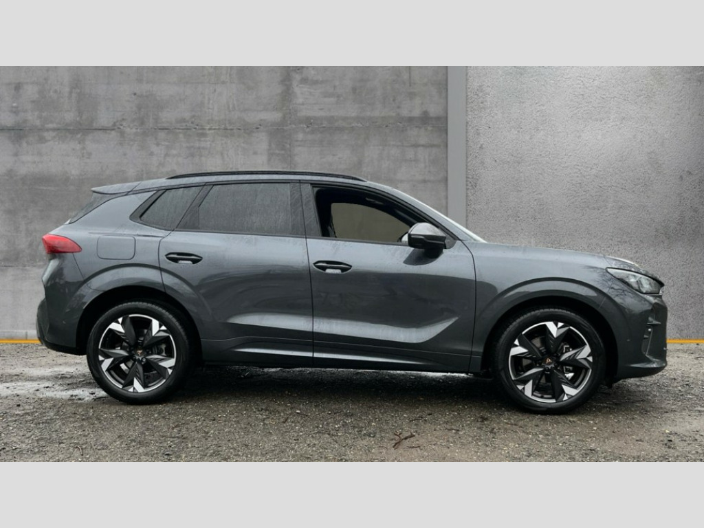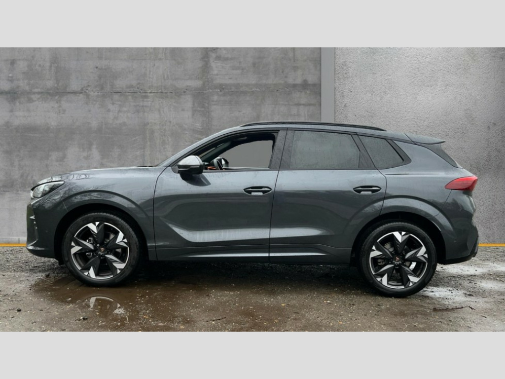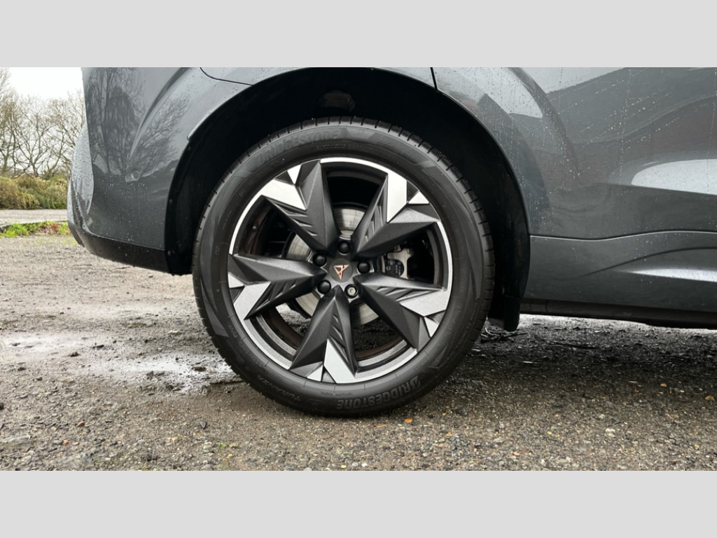 Cupra Terramar 1.5 eTSI 150 V2 5dr DSG 10.25" digital cockpit and configurable dashboard, Adaptive cruise control with follow-to-stop and speed limiter, Advanced driver alert system, Advanced lane assist with semi-automatic vehicle control in a medical emergency and traffic jam assist, Driving profile selection and conventional shock absorber, Dynamic road sign display, E-call, Electric tailgate with virtual pedal, Emergency steering support with turn assist, Front and rear parking sensors, Front assist (Forward collision warning with automatic braking) with multifunction camera and front cross traffic assist, Head up Display, Intelligent park assist, Media system with Nav - 12.9" touch display, voice control, full link phone (wired/wireless), DAB and Steering wheel mounted controls, Rear traffic assist, Side and exit assist, Speed sensitive power steering, Start/stop system with regenerative braking, Top view camera (front camera, rear camera, 2 side cameras), Wireless phone charger, Auto dimming rear view mirror, Black roof rails, CUPRA 3D rear lights with ceremony & swiping indicator and illuminated logo, Dark tinted rear windows, Daytime running lights with automatic headlight control and Coming and Leaving home function, Door mirrors with memory function and lowing function on passenger mirror, Dynamic headlight range control, Electric front/rear windows, Electrically adjustable, heated and folding door mirrors, Front fog lamps with cornering function, Heat reflecting windscreen, High beam assist, LED headlamps with signature "CUPRA LED", Rain sensing wipers, Rear fog light on one side, back up light on both sides, Rear side wing doors, Rear wash/wipe, Third brake light, Welcome lights (within exterior mirror housing), 3 seat bench in 2nd row, Black roof lining, Cupra sports pedals, Dinamica cloth upholstery, Driver seat memory function, Electrically adjustable front seats including lumbar support, Four x USB Type C ports (2 in front and 2 in rear), Front and rear head restraints, Front and rear reading lights X 4, Front centre armrest, Heated front seats, Heated leather wrapped multi function sports steering wheel with tiptronic, Illuminated interior front door sills, Isofix, Operating voltage 12V, Single front passenger seat, Smart wraparound interior lighting, Sunvisors with illuminated mirror, Three zone climate control with control panel in rear, Unsplit rear seat bench, split folding backrest, with centre armrest, Variable luggage/load compartment floor, 3 point seatbelts in front with pretensioner and electric height adjustment, 3 point seatbelts on all rear seats, Brake control system - ESC and brake booster, Child proof door locks, Driver and front passenger airbags, Electronic parking brake, Front and rear disc brakes, Front interaction airbag, Front passenger airbag deactivation switch, Front side airbags with curtain airbags, Pre-crash front and rear seat belt tensioner, window closure and hazard lights, Tyre pressure monitoring system, Visual and acoustic seat belt reminder, electric contact in front and rear, Anti theft alarm, Keyless locking and starting system with keyless access, Locking wheel bolts, Black decorative trims, Chrome interior detailing, 19" Spectrum exclusive machine alloy wheels, Tool kit