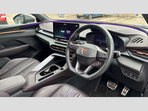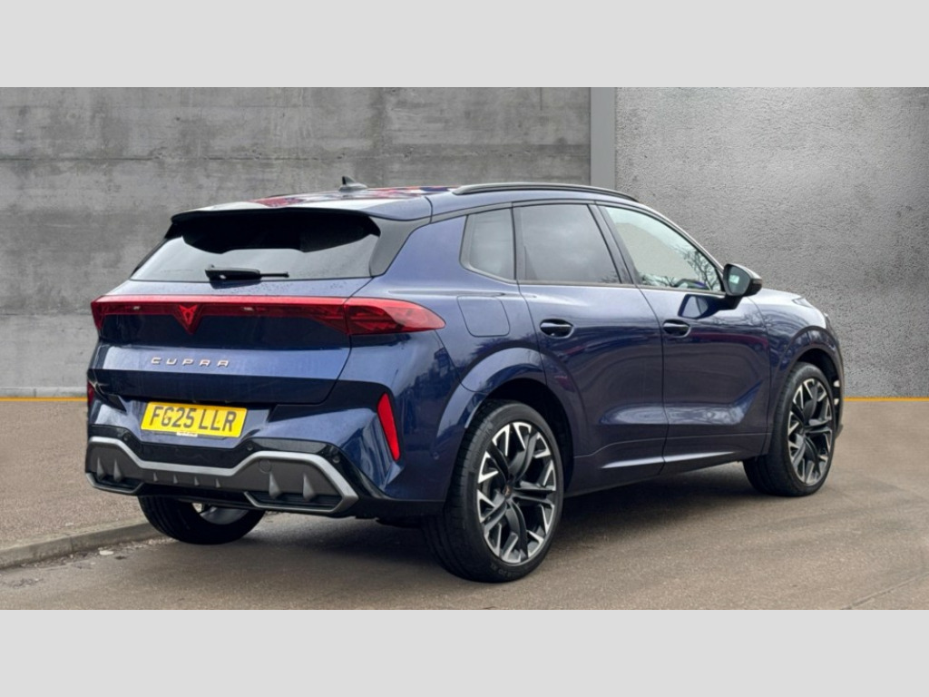 Cupra Terramar 2.0 TSI 265 VZ2 5dr DSG 4Drive 10.25" digital cockpit and configurable dashboard, Adaptive cruise control with follow-to-stop and speed limiter, Advanced driver alert system, Advanced lane assist with semi-automatic vehicle control in a medical emergency and traffic jam assist, Driving profile selection (DCC- Comfort, performance, CUPRA, Individual, Dynamic road sign display, E-call, Electric tailgate with virtual pedal, Emergency steering support with turn assist, Front and rear parking sensors, Front assist (Forward collision warning with automatic braking) with multifunction camera and front cross traffic assist, Head up Display, Intelligent park assist, Media system with Nav - 12.9" touch display, voice control, full link phone (wired/wireless), DAB and Steering wheel mounted controls, Rear traffic assist, Side and exit assist, Speed sensitive power steering, Start/stop system with regenerative braking, Top view camera (front camera, rear camera, 2 side cameras), Wireless phone charger, Adaptive chassis control with a 2-valve shock absorber, Auto dimming rear view mirror, Black roof rails, CUPRA 3D rear lights with ceremony & swiping indicator and illuminated logo, Dark tinted rear windows, Daytime running lights with automatic headlight control and Coming and Leaving home function, Door mirrors with memory function and lowing function on passenger mirror, Electric front/rear windows, Electrically adjustable, heated and folding door mirrors, Front fog lamps with cornering function, Heat reflecting windscreen, High beam assist, Rain sensing wipers, Rear fog light on one side, back up light on both sides, Rear side wing doors, Rear wash/wipe, Third brake light, Welcome lights (within exterior mirror housing), 3 seat bench in 2nd row, Black roof lining, Cupra sports pedals, Driver seat memory function, Electrically adjustable front seats including lumbar support, Four x USB Type C ports (2 in front and 2 in rear), Front and rear head restraints, Front and rear reading lights X 4, Front centre armrest, Heated front seats, Heated leather wrapped multi function sports steering wheel with tiptronic, Illuminated interior front door sills, Isofix, Leather upholstery, Operating voltage 12V, Single front passenger seat, Smart wraparound interior lighting, Sunvisors with illuminated mirror, Three zone climate control with control panel in rear, Unsplit rear seat bench, split folding backrest, with centre armrest, Variable luggage/load compartment floor, Pure performance pack - Terramar, 3 point seatbelts in front with pretensioner and electric height adjustment, 3 point seatbelts on all rear seats, Brake control system - ESC and brake booster, Child proof door locks, Driver and front passenger airbags, Electronic parking brake, Front and rear disc brakes, Front interaction airbag, Front passenger airbag deactivation switch, Front side airbags with curtain airbags, Pre-crash front and rear seat belt tensioner, window closure and hazard lights, Tyre pressure monitoring system, Visual and acoustic seat belt reminder, electric contact in front and rear, Anti theft alarm, Keyless locking and starting system with keyless access, Locking wheel bolts, Black decorative trims, Chrome interior detailing, 20" Hadron exclusive machine alloy wheels, Performance tyres in polmer coating, Tool kit