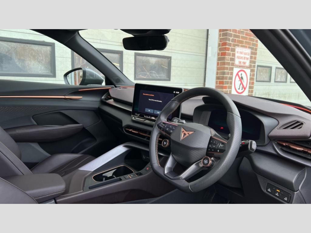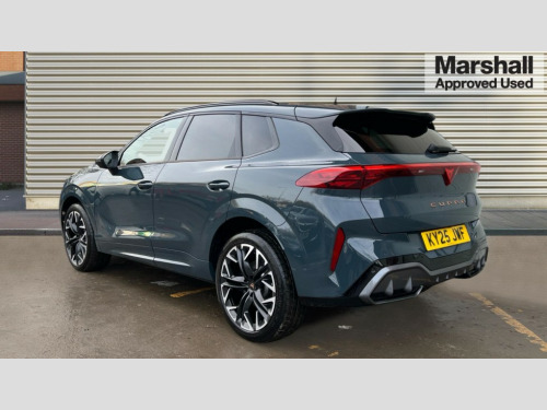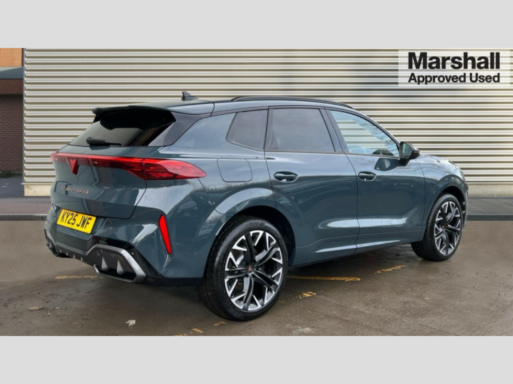 Cupra Terramar 2.0 TSI 265 VZ2 5dr DSG 4Drive 10.25" digital cockpit and configurable dashboard, Adaptive cruise control with follow-to-stop and speed limiter, Advanced driver alert system, Advanced lane assist with semi-automatic vehicle control in a medical emergency and traffic jam assist, Driving profile selection (DCC- Comfort, performance, CUPRA, Individual, Dynamic road sign display, E-call, Electric tailgate with virtual pedal, Emergency steering support with turn assist, Four x USB Type C ports (2 in front and 2 in rear), Front and rear parking sensors, Front assist (Forward collision warning with automatic braking) with multifunction camera and front cross traffic assist, Head up Display, Intelligent park assist, Media system with Nav - 12.9" touch display, voice control, full link phone (wired/wireless), DAB and Steering wheel mounted controls, Rear traffic assist, Side and exit assist, Speed sensitive power steering, Start/stop system with regenerative braking, Top view camera (front camera, rear camera, 2 side cameras), Wireless phone charger, Adaptive chassis control with a 2-valve shock absorber, Auto dimming rear view mirror, Black roof rails, CUPRA 3D rear lights with ceremony & swiping indicator and illuminated logo, Dark tinted rear windows, Daytime running lights with automatic headlight control and Coming and Leaving home function, Door mirrors with memory function and lowing function on passenger mirror, Electric front/rear windows, Electrically adjustable, heated and folding door mirrors, Front fog lamps with cornering function, Heat reflecting windscreen, High beam assist, Rain sensing wipers, Rear fog light on one side, back up light on both sides, Rear side wing doors, Rear wash/wipe, Third brake light, Welcome lights (within exterior mirror housing), 3 seat bench in 2nd row, Black roof lining, Cupra sports pedals, Driver seat memory function, Electrically adjustable front seats including lumbar support, Front and rear head restraints, Front and rear reading lights X 4, Front centre armrest, Heated front seats, Heated leather wrapped multi function sports steering wheel with tiptronic, Illuminated interior front door sills, Isofix, Leather upholstery, Operating voltage 12V, Single front passenger seat, Smart wraparound interior lighting, Sunvisors with illuminated mirror, Three zone climate control with control panel in rear, Unsplit rear seat bench, split folding backrest, with centre armrest, Variable luggage/load compartment floor, Pure performance pack - Terramar, 3 point seatbelts in front with pretensioner and electric height adjustment, 3 point seatbelts on all rear seats, Brake control system - ESC and brake booster, Child proof door locks, Driver and front passenger airbags, Electronic parking brake, Front and rear disc brakes, Front interaction airbag, Front passenger airbag deactivation switch, Front side airbags with curtain airbags, Pre-crash front and rear seat belt tensioner, window closure and hazard lights, Tyre pressure monitoring system, Visual and acoustic seat belt reminder, electric contact in front and rear, Anti theft alarm, Keyless locking and starting system with keyless access, Locking wheel bolts, Black decorative trims, Chrome interior detailing, 20" Hadron exclusive machine alloy wheels, Performance tyres in polmer coating, Tool kit