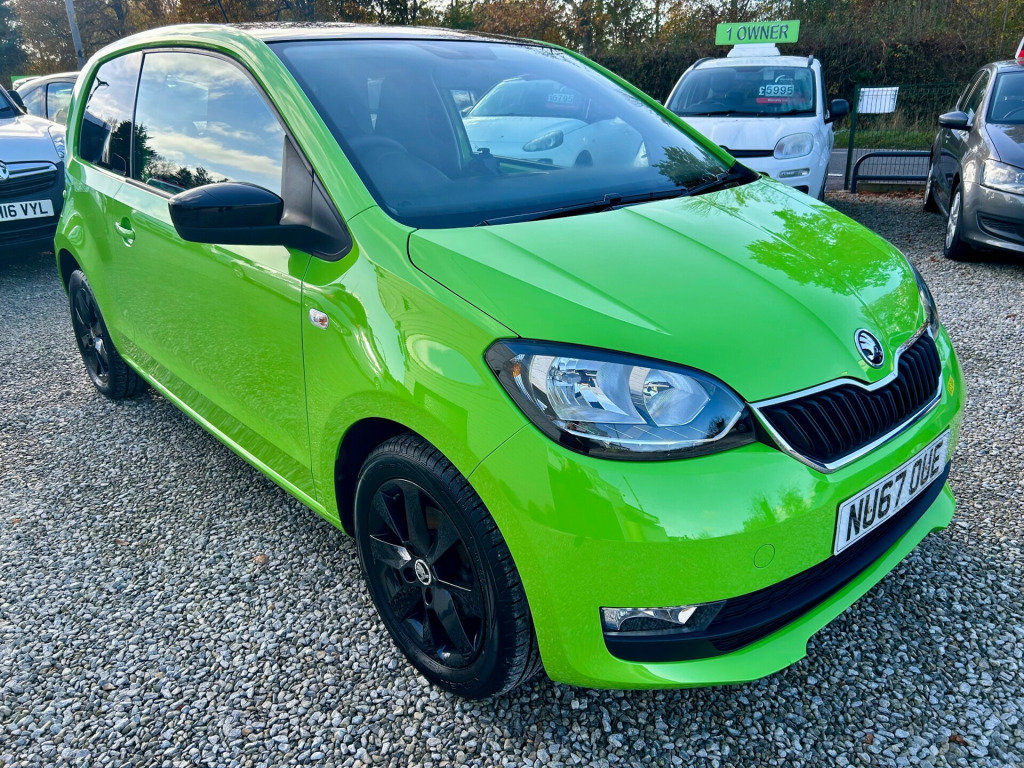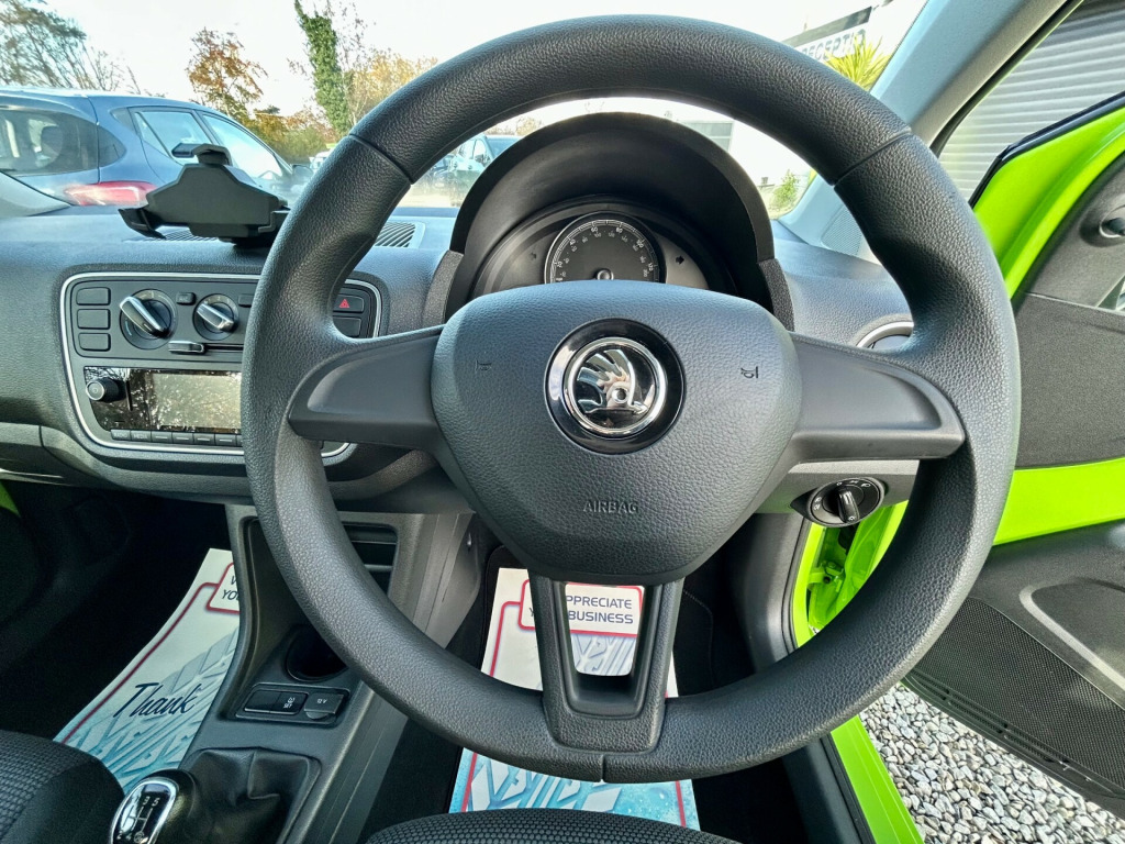 OFFERING THE BEST LOW MILEAGE LOW OWNERSHIP CARS AND CUSTOMER SERVICE IN THE AREA..A STUNNING COLOUR EDITION SKODA CITIGOJUST 28,000 MILES ON THIS BEAUTY WITH SERVICE HISTORY..A NEW SERVICE, NO ADVISORY MOT AND OUR OWN NO QUIBBLE WARRANTY INCLUDED..HPI CLEAR..JUST VALETED..PX WELCOME..ALL OUR CARS COME WITH 2 KEYS.., v power socket, radio swing, 15in alloy wheels - crux - black, body coloured door mirrors and door handles, bumpers - body coloured, darkened rear lights, electric windows - front, privacy glass, radiator grille - chrome, rear fog light, tyre repair kit, 3 spoke plastic steering wheel, air conditioning - manual, black surround on instrument panel - radio - air vents, door handles - interior in black, drivers sun visor with ticket holder - passengers sun visor with mirror, four speed heating and ventilation system with windscreen defroster, head restraints - height adjustable rear x2, head restraints - integrated front, lockable fuel tank cap, luggage compartment cover with boot lighting, plastic gearshift handle and handbrake lever, reading lights - front, rear view mirror - manually dimmed, seats - backrest release for front with easy entry, seats - drivers height adjustment, seats - front - small pockets on the side, seats - split folding rear - 60-40, smartphone holder, steering wheel - height adjustable, abs - anti-lock braking system, airbag for driver and front passenger, esc - electronic stability control, front and rear passenger seatbelt warning light, head - thorax side airbag for front seats, isofix child seat fittings on outer rear seats with top tether, immobiliser, remote central door locking, two tone horn, windscreen wiper front and rear, front fog lights, halogen twin headlights with separate led daytime running lights, headlight tilt control, high level 3rd rear brake light, power steering - speed related, tpms - tyre pressure monitoring system