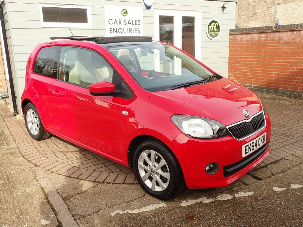 A cracking one owner Skoda Citigo, Low mileage, Panoramic glass electric sliding roof, Heated front seats, Sat nav, Cruise control and Bluetooth. Spare Wheel - Steel, Convenience Pack, 12V Socket, 14in Alloy Wheels - Apus, ABS - Anti-Lock Braking System, Air Conditioning - Manual, Airbags - Driver, Airbags - Front Passenger, Airbags - Head for Front, Airbags - Thorax for Front, Aux- In, Bumpers - Body Coloured, Central Locking - Remote, Daytime Running Lights, Door Handles - Body Coloured, Door Handles - Interior in Chrome, Door Mirrors - Body Coloured, Drivers Sun Visor with Ticket Holder - P, ESP - Electronic Stability Programme, Electric Windows - Front, Electrically Adjustable and Heated Door , Electronic Engine Immobiliser, Front Fog Lights, Gearknob - Leather, Handbrake - Leather, Head Restraints - Height Adjustable Rear, Head R