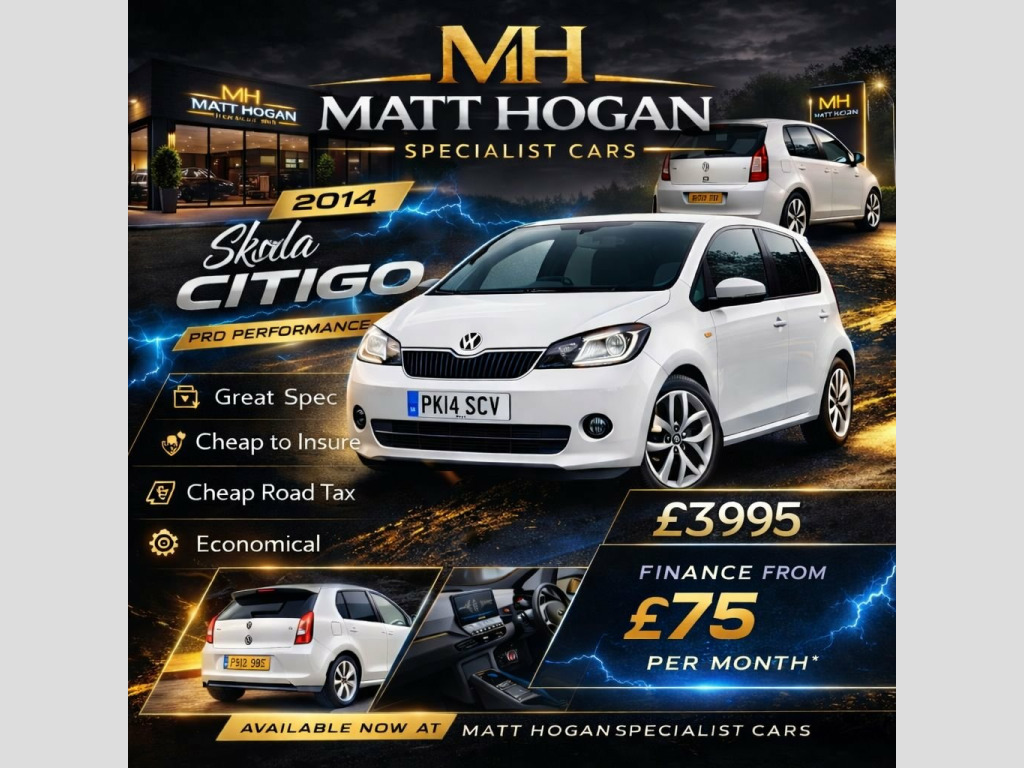 A lovely example of this epic little Skoda Citigo Elegance. Finished in Candy Whit with Anthracite Nano Cloth Upholstery and Sparkling Silver Alloy Wheels, this really looks the business! This is the superb 1.0 VW engine which provides great performance for such a little engine, returns fabulous fuel economy, costs just £20 for Annual road tax, is cheap to insure and is ULEZ compliant. What's not to like? Being the Elegance model, the car comes with a great level of specification as well as this one having some really smart tech, optional extras to set it apart form the rest out there. The spec highlights are: Sate Nav, Bluetooth, Heated Seats, Air Conditioning, Remote Central Locking, The List Goes on......... This is a great little car and is ideal for a multitude of purposes. She comes with both original keys, all the original book pack and a full service history. We will also service prior to a sale being concluded. Just arrived in stock, awaiting further preparation. Nano Cloth - Black, Candy White, 12V Socket, 14in Alloy Wheels - Apus, ABS - Anti-Lock Braking System, Air Conditioning - Manual, Airbags - Driver, Airbags - Front Passenger, Airbags - Head for Front, Airbags - Thorax for Front, Aux- In, Bumpers - Body Coloured, Central Locking - Remote, Daytime Running Lights, Door Handles - Body Coloured, Door Handles - Interior in Chrome, Door Mirrors - Body Coloured, Drivers Sun Visor with Ticket Holder - P, ESP - Electronic Stability Programme, Electric Windows - Front, Electrically Adjustable and Heated Door , Electronic Engine Immobiliser, Front Fog Lights, Gearknob - Leather, Handbrake - Leather, Head Restraints - Height Adjustable Rear, Head Restrai