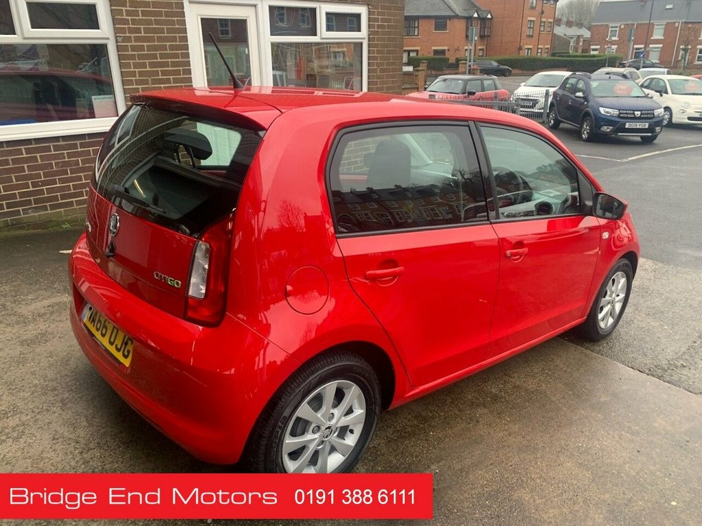 Bridge End Motors is delighted to offer for sale this immaculate, high specification, exceptionally low mileage (11342 miles), 1 owner from new, low CO2 emissions, only £20 a year road tax, cheap to run and insure Skoda Citigo 1.0 MPI Greentech SE L 5 door, with heated seats, a satellite navigation unit, a steel spare wheel, air con, Aux input, and a staggering fuel economy of up to 78 MPG and excellent road handling with Volkswagen's traction control. The Skoda Citigo also has a quality interior trim, a good build quality (5 star Ncap safety rating) and is highly rated for its suspension, ride comfort, sprightly handling and excellent all round visibility. 12V Power Socket, 15in Alloy Wheels - Auriga - Silver, 3 Spoke Leather Steering Wheel, ABS - Anti-Lock Braking System, Acoustic Parking Sensors - Rear, Air Conditioning - Manual, Airbag for Driver and Front Passenger, Breakdown Set, Bumpers - Body Coloured, Chrome Frame Around Instruments, Chrome Frame Around Radio and Air Outlet, Daytime Running Lights, Decorative Insert - Dashboard - Black wi, Door Handles - Interior in Chrome, Drivers Seat Belt Warning Buzzer and Lig, Drivers Sun Visor with Ticket Holder - P, ESC - Electronic Stability Control, Electric Windows - Front, Electrically Adjustable and Heated Door , Front Fog Lights, Gear Knob-Handle - Plastic with Badge, Glovebox, Handbrake -
