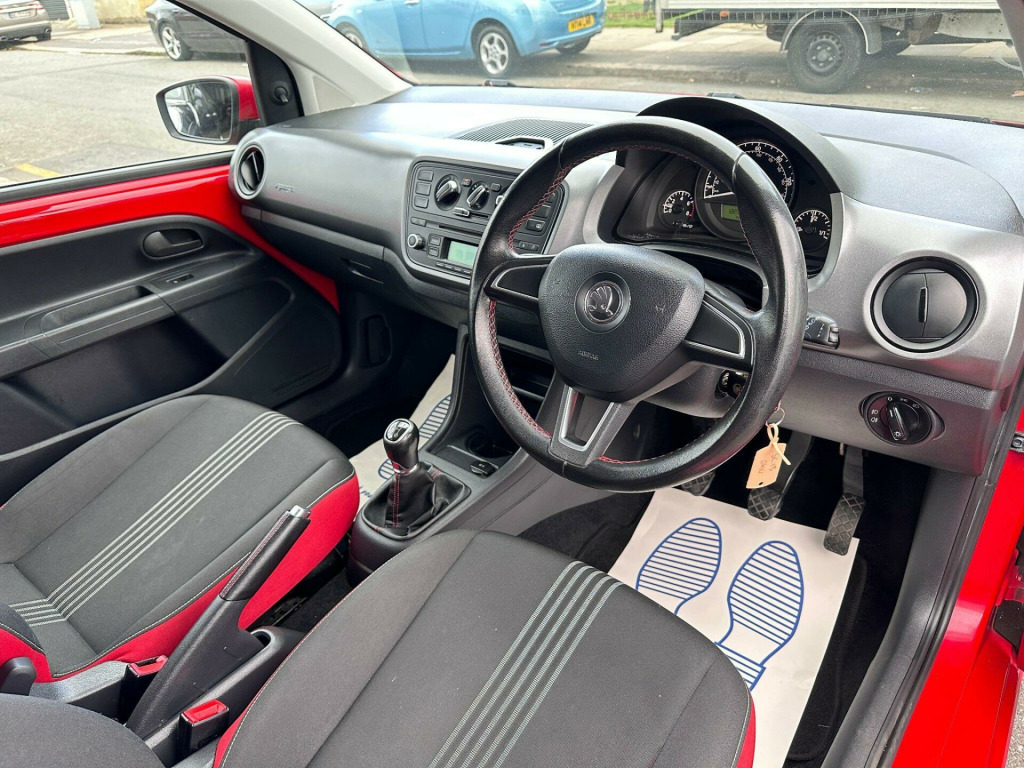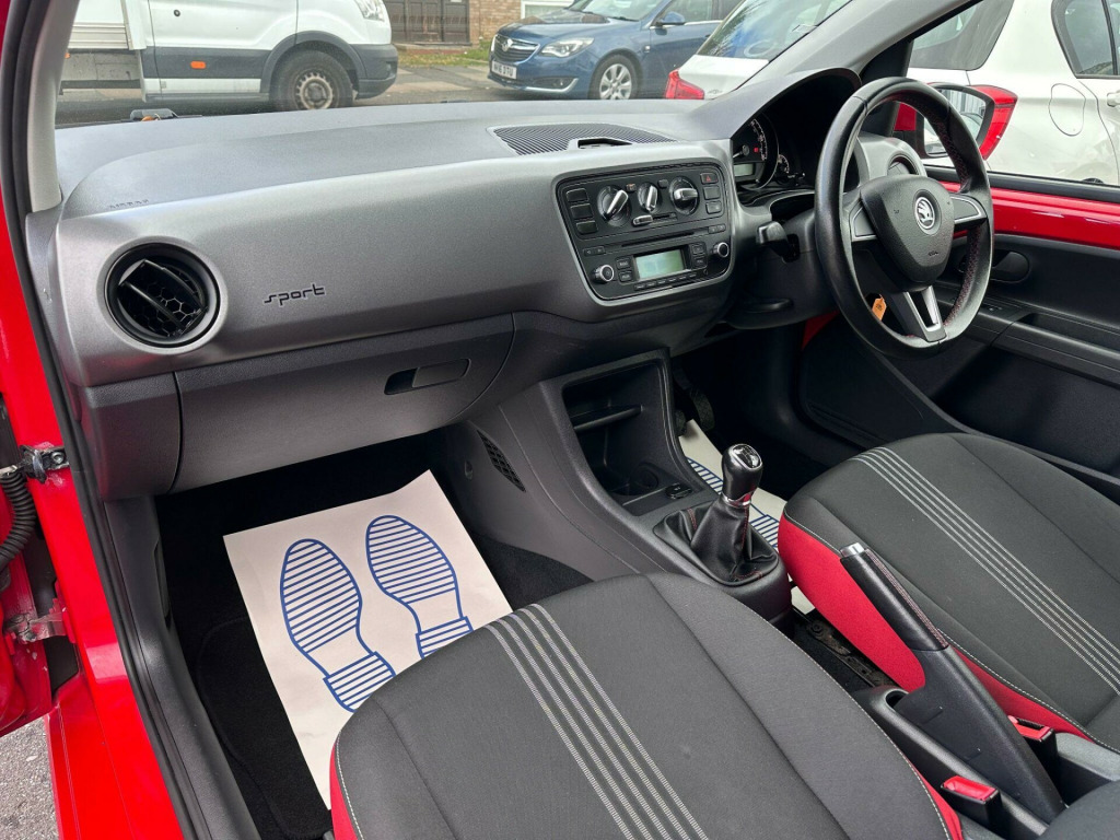 FULL SERVICE HISTORY - LONG MOT TILL AUGUST 2026, 2 ORGINAL KEYS, 12 MONTHS AA BREAKDOWN COVER, EXTENDED WARRANTY AVAIABLE FOR UP TO 36 MONTHS.This 2013 Skoda Citigo MPI Sport is a great find with a clear vehicle history check, offering peace of mind for its next owner. Powered by an efficient 1.0 litre petrol engine, this Sport trim model is designed for everyday practicality. It comes equipped with manual air conditioning to keep you comfortable, telephone preparation with Bluetooth for handsfree calls, and a handy luggage compartment cover for added convenience.The Skoda Citigo MPI Sport stands out with its impressive fuel economy, achieving up to 63 miles per gallon, which is excellent for keeping running costs down. Furthermore, its low insurance group rating means more savings on your policy, and its low CO2 emissions contribute to a more environmentally friendly drive. These factors combined indicate that this Citigo offers a more economical and affordable ownership experience compared to many other vehicles in its class. v socket, 15in alloy wheels - auriga, abs - anti-lock braking system, air conditioning - manual, airbags - driver, airbags - front passenger, airbags - front side, bumpers - body coloured, central locking - remote, door handles - body coloured, door mirrors - body coloured, drivers sun visor with ticket holder - passengers sun visor with mirror, esp - electronic stability programme, electric windows - front, front fog lights, head restraints - height adjustable rear x2, head restraints - integrated front, headlights - internally adjustable beam level, high level 3rd rear brake light, isofix child seat preparation - outer rear, luggage compartment - cover, media player, multi-media holder, pid - portable infotainment device, power steering, radiator grille - chrome, radio with cd and mp3, rear window defroster, satellite navigation system, seatbelt warning - drivers, seats - backrest release for front with easy entry, seats - drivers height adjustment, seats - front - small pockets on the side, seats - split folding rear backrest, speakers x4 - additional, steering wheel - 3 spoke leather with handbrake and gearknob, steering wheel - height adjustable, sunset glass, telephone preparation with bluetooth, trip computer, sport cloth - black/red