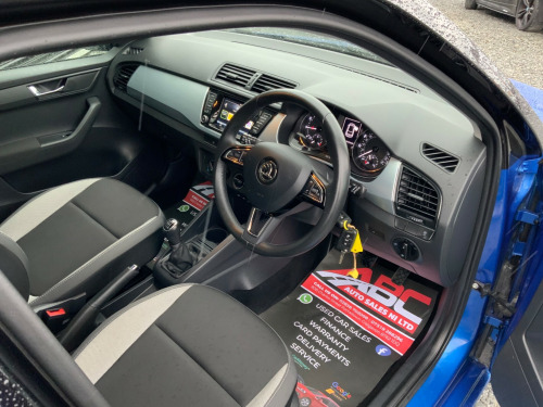This 2018 Skoda Fabia 1.0 Colour Edition Hatchback has only 38000 miles on the clock and is powered by a petrol engine. With a MOT that expires on 27/07/2026, this 5-door hatchback is ULEZ compliant, making it an environmentally-friendly choice for city driving. With 5 seats, there is plenty of room for passengers, and the 16in Alloy Wheels and Body Coloured Door Handles give it a stylish exterior. Inside, the Electric Windows and Electrically Adjustable and Heated Door Mirrors add convenience, while the Rear Fog Light provides added safety. This Euro 6 (s/s) 75 ps manual car is a reliable and economical choice for anyone in the market for a practical and efficient vehicle. in alloy wheels - vigo black, door handles - body coloured, electric windows - front, electrically adjustable and heated door mirrors, rear fog light, acoustic parking sensors - rear, cruise control with speed limiter, electro-mechanical power steering, multifunction trip computer, tpms - tyre pressure monitoring system, air conditioning - manual, front and rear interior lights, height and reach adjustable steering wheel, leather handbrake and gear lever, leather multifunction steering wheel, luggage hooks in the boot, seats - drivers height adjustment, seats - front passenger height adjustment, umbrella under front passenger seat, vanity mirrors in sun visors, alarm with interior monitoring, curtain and side airbags, driver and front passenger airbags with front passenger airbag deactivation, esc - electronic stability control, front assistant, front and rear passenger seatbelt warning light, isofix child seat fittings on outer rear seats, remote central door locking, dab radio, smartlink plus, swing radio with 6.5in touchscreen display, daytime running lights - led, front fog lights