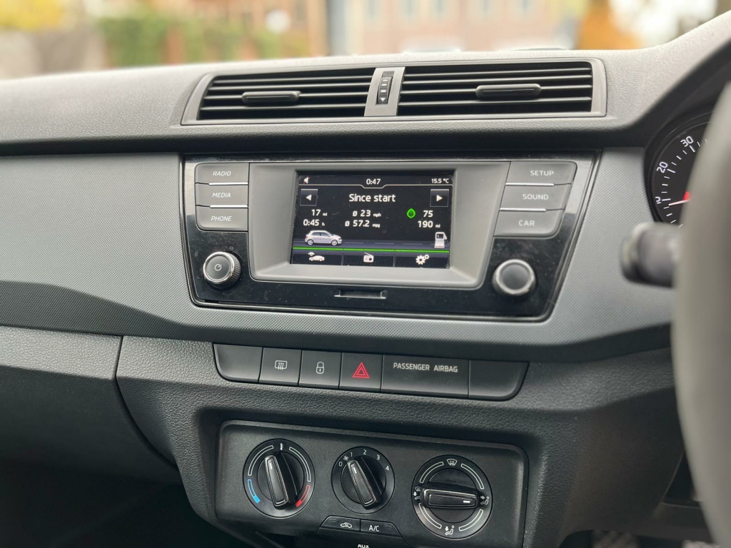This Skoda Fabia S from 2015 presents a superb ownership proposition with only two previous owners and a clear vehicle history check. Powered by an efficient 1.0 litre petrol engine, this Euro 6 compliant model boasts a remarkably low mileage of just 64,000 miles for its age. It also comes equipped with Bluetooth connectivity, adding modern convenience to your driving experience.The benefits of choosing this particular Fabia are clear. Its impressive fuel economy of 60 miles per gallon means fewer trips to the petrol station, while its low CO2 emissions contribute to a more environmentally friendly drive. Furthermore, the generous boot space offers practicality for shopping trips or luggage, and its low insurance group rating makes it an economical choice for many drivers. in steel wheels - dentro, abs - anti-lock braking system, asr - anti slip regulation, airbags - driver, airbags - front passenger, airbags - front side, airbags - passenger deactivation switch, bluetooth, central locking - remote, centre console - wild grey, curtain airbags, dab radio, dashboard - satin black-wild grey, daytime running lights, door handles - body coloured, door mirrors - body coloured, door panels - satin black, eds - electronic differential system, esp - electronic stability programme, electric windows - front, electrically adjustable and heated door mirrors, grab handles - roof, hba - hydraulic brake assist, headlining - pearl grey, height and reach adjustable steering wheel, isofix child seat preparation - outer rear, luggage compartment - hooks, msr - motor slip regulation, manually controlled heating system, power steering, radio - swing with telephone control, reading lights - front, sd card reader, seatbelt warning - front, seats - drivers height adjustment, steering wheel - 3 spoke, storage - under drivers seat, storage - under passenger seat, tpms - tyre pressure monitoring system, usb connection, vanity mirrors - front