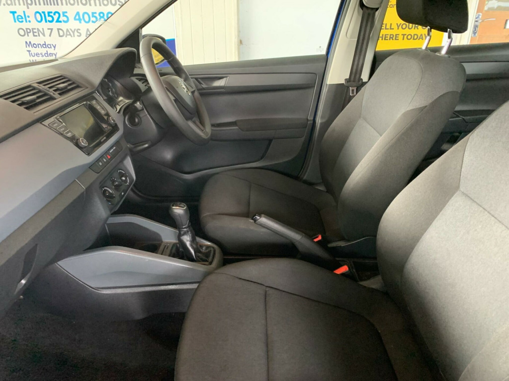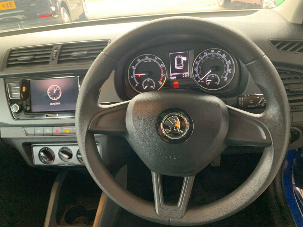 This 2019 Skoda Fabia S comes with the reassurance of a full service history and a clear vehicle history check. This popular hatchback is equipped with a 1.0 litre petrol engine and meets Euro 6 emissions standards. Inside, you'll find the Swing Radio featuring a 6.5 inch touchscreen display with Bluetooth connectivity, allowing for seamless integration of your devices.The Skoda Fabia S offers an attractive proposition for those seeking economical motoring. Its impressive fuel economy of 50 miles per gallon and low CO2 emissions mean it is more efficient than many other vehicles in its class. Furthermore, its low insurance group rating makes it an affordable choice to own and run, further enhancing its appeal as a practical and sensible option. A 12 month MOT will be provided upon purchase, adding to the peace of mind for the new owner. in steel wheels - costa, 3 spoke plastic steering wheel, body coloured door mirrors and door handles, curtain and side airbags, daytime running lights - led, driver and front passenger airbags with front passenger airbag deactivation, esc - electronic stability control, electric windows - front, electrically adjustable and heated door mirrors, electro-mechanical power steering, front assistant, front and rear interior lights, front and rear passenger seatbelt warning light, height and reach adjustable steering wheel, isofix child seat fittings on outer rear seats, luggage hooks in the boot, multifunction trip computer, rear fog light, remote central door locking, seats - drivers height adjustment, swing radio with 6.5in touchscreen display, tpms - tyre pressure monitoring system, vanity mirrors in sun visors