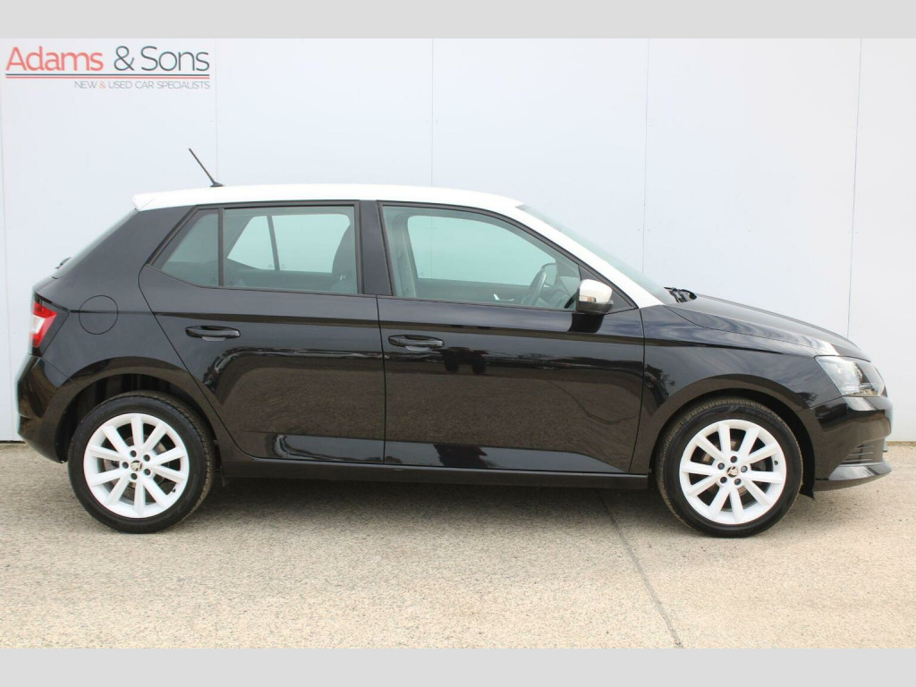 Fancy something a little different? Great condition throughout example of this low mileage Skoda Fabia 1.0 TSI Colour Edition hatchback finished in striking Black Magic Pearl over white contrast roof line. This particular car comes complete with both remote keys, original Skoda book packs and a full service history record as pictured. It really has been loved this car. Colour edition specification includes Apple Carplay with Andriod Auto, rear parking sensors, DAB radio, Bluetooth telephone, Air conditioning, metallic paint, media audio input, 16 white painted Antia alloy wheels and cruise control. These cars boast Skoda refinement and impressive low running costs. Low rate funding plans and extended warranties available upon request (subject to applicant). Here at Adams and sons we do not charge any dealer administration fees and pride ourselves on paramount customer service. All our cars are price checked daily to ensure you get the right car at the right price- Established business since 1932. Adams & Sons make every effort to ensure vehicle details on this listing are correct. However, the vehicle specifications can sometimes differ from that shown. Please satisfy yourself that a vehicle has a specific feature that is important to you before purchasing. Our staff will be happy to assist you.