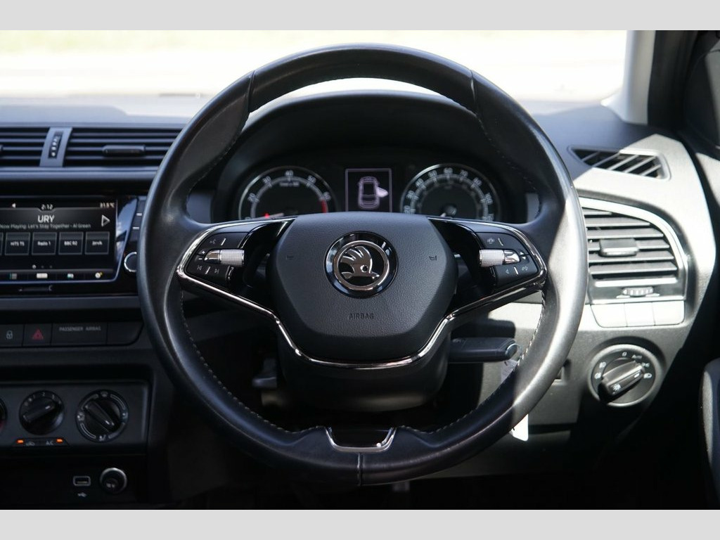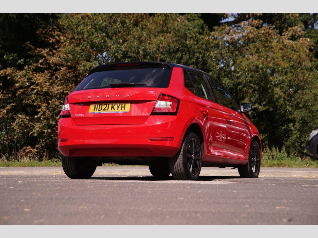 Prestige Car Supermarket in York presents this smart 2021 Skoda Fabia 1.0 TSI Colour Edition Hatchback. Finished in bold Corrida Red and featuring a Satin Black-Grey Onyx Cloth interior, this manual petrol hatchback is perfect for modern city life. It rides on 16-inch Vigo Black alloy wheels and features a Black Colour Concept, Body Coloured Door Handles, and a Rear Roof Spoiler. Illumination is provided by LED Daytime Running Lights and Front Fog Lights. Step inside the functional cabin to find a 2-Spoke Leather Multifunction Steering Wheel, a Leather Handbrake and Gearshift Lever, and Manual Air Conditioning. Technology is comprehensive with a Radio Swing Plus system, DAB Radio, SmartLink Plus, and a Multifunction Trip Computer. Convenience is a priority with Cruise Control, a Speed Limiter, Electrically Adjustable and Heated Door Mirrors, Remote Central Locking, and Acoustic Parking Sensors at the rear. The vehicle also includes a handy Umbrella Under the Front Passenger Seat. Safety and driver assistance systems are extensive, including Front Assist and Electronic Stability Control (ESC), ensuring a secure and confident drive. Onyx Cloth - Satin Black-Grey with Black, Corrida Red, 16in Alloy Wheels - Vigo Black, 2-Spoke Leather Multifunction Steering W, Acoustic Parking Sensors - Rear, Air Conditioning - Manual, Alarm with Interior Monitoring, Colour Concept - Black, Cruise Control, Curtain and Side Airbags, DAB Radio, Daytime Running Lights - LED, Door Handles - Body Coloured, Driver and Front Passenger Airbags with , ESC including ABS - MSR - ASR - EDS - HB, Electric Windows - Front, Electrically Adjustable and Heated Door , Electro-Mechanical Power Steering, Front Assist, Front Fog Lights, Front and Rear Interior Lights, Front and Rear Passenger Seatbelt Warnin, Height and Reach Adjustable Steering Whe, ISOFIX