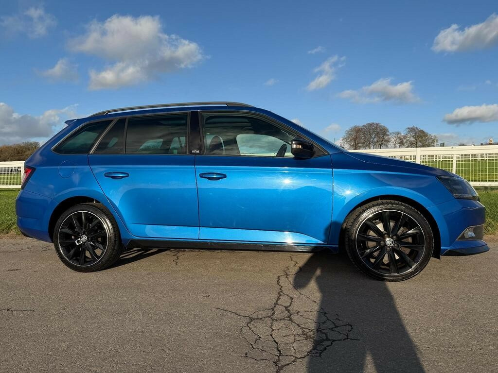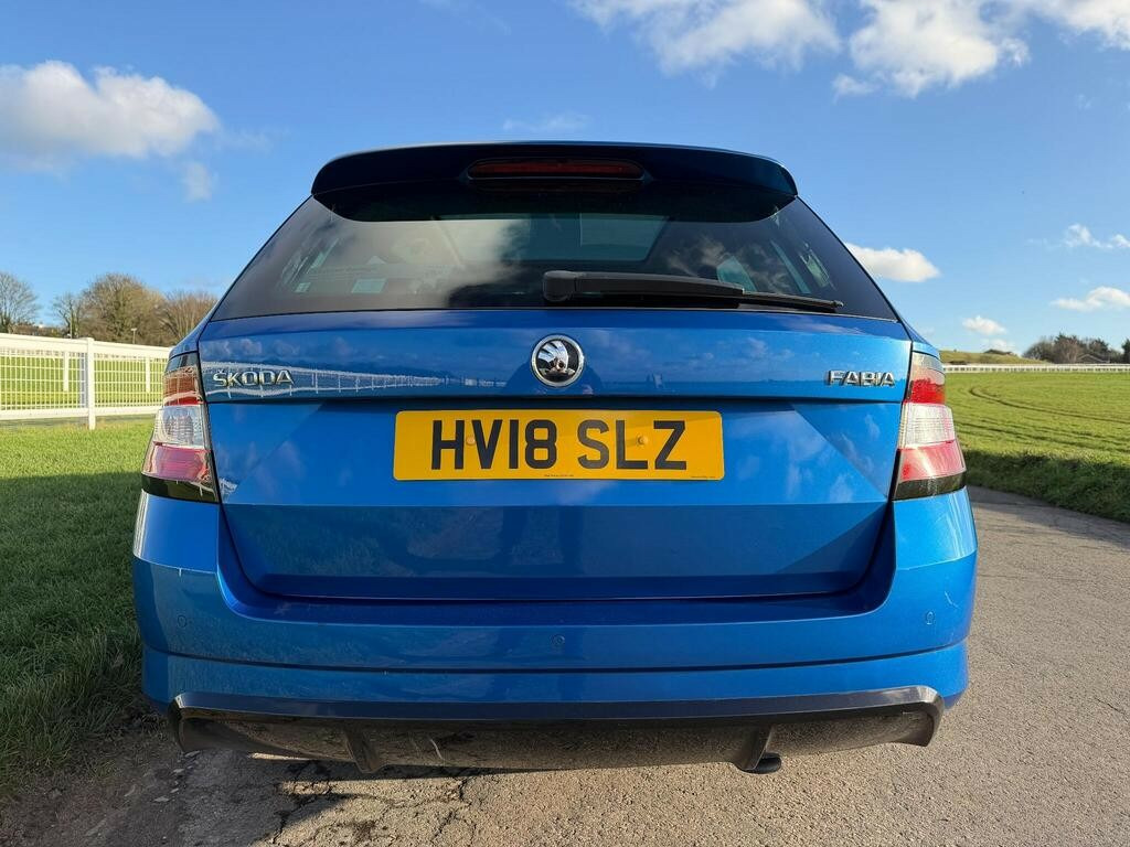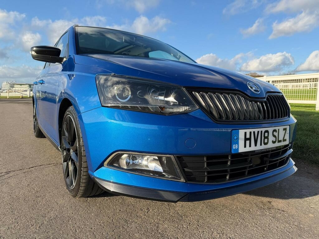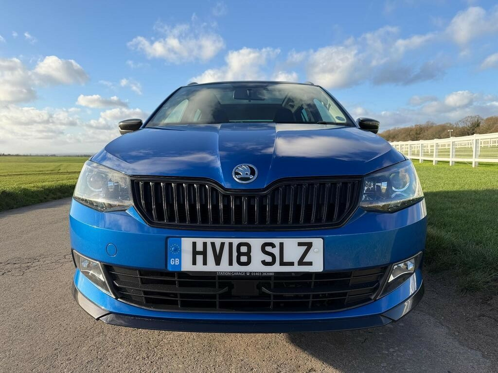 2018 Skoda Fabia 1.0 TSI Monte Carlo Estate Euro 6Introducing this stunning Skoda Fabia Monte Carlo Estate, finished in eye catching Race Blue Metallic and sitting on 17-inch black and diamond cut alloy wheels. The sporty Monte Carlo styling continues inside, featuring carbon effect interior trims, a sport leather steering wheel, and black, grey and red patterned sport comfort seats, all complemented by a desirable panoramic glass roof that adds light and space to the cabin.ULEZ compliant and Euro 6 rated, this Fabia is a fantastic choice for a first car, daily commuter, or practical all rounder, combining sporty looks with renowned Skoda reliability.The efficient 1.0-litre TSI petrol engine delivers smooth performance with excellent fuel economy. As part of the Volkswagen Group, the Fabia is built using proven Volkswagen components, offering long term reliability, low maintenance costs, and affordable parts. With its low insurance group and dependable engineering, it's an ideal car for new or cost conscious drivers.•1 owner from new•79,00 Miles with Full main dealer service history•2 keys•MOT until 24/02/2026 ( however a new MOT will be placed on the car prior to sale) A clearly well-maintained example, ready for its next owner. The cabin blends sportiness with everyday comfort and impressive practicality, with the added versatility of an estate body style offering a spacious boot. Features include:•Touchscreen multimedia system•Bluetooth, USB & AUX connectivity•Cruise control with speed limiter•Panoramic glass roof•Air conditioning•Electric windows•Remote central locking•Heated rear windscreen•ISOFIX child seat mounting pointsThis Skoda Fabia Monte Carlo combines sporty design, Volkswagen-backed reliability, and excellent practicality in one stylish package. With a full main dealer history, and only one owner from new, it's a standout example ready to drive away. r conditioning, bluetooth connection, climate control, comms pack, panoramic sunroof, usb/ipod interface, cruise control, esp, parking sensors, power steering, rear parking sensor, traction control, trip computer, abs, air bag, isofix child seat anchor points, alarm, anti-theft system, central locking, immobiliser, automatic electric windows, electric mirrors, rear electric windows, auxiliary input socket, mp3 player, radio, sports seats, folding rear seats, fixed panoramic glass roof, telephone, alloy wheels, body coloured bumpers, metallic paintwork, rear spoiler, roof rails