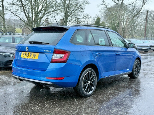 The 2019 Skoda Fabia 1.0 TSI Monte Carlo Estate is a practical and sporty small estate that combines efficient performance with excellent everyday usability. Powered by a 1.0-litre TSI petrol engine producing 110 ps, paired with a manual gearbox, it delivers lively acceleration, strong fuel economy and a smooth driving experience. Finished in the distinctive Monte Carlo specification, this Fabia benefits from sportier styling and a more dynamic look, while the interior offers a comfortable and well-designed cabin that's easy to live with day to day. The driving position is well set up, providing good visibility and a relaxed feel on longer journeys. The estate body style adds impressive practicality, offering a generous boot and flexible rear seating, making it ideal for family use, commuting or weekend trips. Compact dimensions keep it easy to manoeuvre, while the ride remains comfortable and composed. A versatile, economical and stylish estate that offers excellent space and value in a compact package. Voice Control, Cruise Control with Speed Limiter, Onyx Cloth - Satin Black-Red, Race Blue, 16in Alloy Wheels - Black Italia, Acoustic Parking Sensors - Rear, Alarm with Interior Monitoring, Black Roof Rails, Climate Control Air Conditioning, Curtain and Side Airbags, DAB Radio, Daytime Running Lights - LED, Door Handles - Body Coloured, Door Sill Inserts with Monte Carlo Logo , Driver and Front Passenger Airbags with , ESC - Electronic Stability Control, Electric Windows - Front, Electric Windows - Rear, Electrically Adjustable and Heated Door , Electro-Mechanical Power Steering, Front Assistant, Front Fog Lights, Front and Rear Interior Lights, Front and Rear Passenger Seatbelt Warnin, Heig