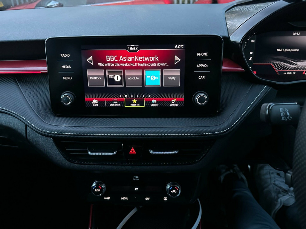 ON V CAR CAT S! in alloy wheels - procyon - black painted diamond cut, 2 usb-c ports in the front - for data transmission and charging, 3 spoke leather sports multi-function steering wheel, 3-point height adjustable front seats belts with pretensioner and force limiter, 4 speakers in front, acoustic parking sensors - rear, air conditioning - climate control dual zone, airbags - front side, airbags - head for front, aluminium pedals, ambient lighting package 2, anti-theft alarm system including immobiliser - interior monitoring - backup horn and towing protection, anti-theft locking wheel bolts, auto dimming rear view mirror, automatic warning lights in case of crash, badging - monte carlo, bluetooth, bolero radio with 8in colour display, bumpers - body coloured, central console with removable cup holder and storage box, central locking with radio remote control - interior controls - safe function and 2 foldable keys, chrome handbrake release button, colour edition air vents, dab radio, door mirrors - black, driver alert, driver and front passenger airbags with front passenger airbag deactivation, esc including abs - msr - asr - eds - hba - xds, electrically adjustable and heated door mirrors, electro-mechanical power steering, front assist, front centre armrest, front fog lights, front windscreen wipers with intermittent function, front and rear electric windows, front and rear passenger seatbelt warning light, gear knob-handle - leather, headlight range control - automatic, height adjustable driver and front passenger seat, height adjustable front headrests, isofix and toptether on the front passenger seat, isofix with top-tether on rear seats, ice scraper in fuel filler cap, illumination of luggage compartment, keyless start-stop, led daytime running lights with coming home and leaving home feature, led headlights - basic, led rear fog lights, lane assist including road edge detection, leather hand brake lever handle, monte carlo door sills, multifunction trip computer in black and white, one tone horn, pedestrian protection measures, privacy glass, radiator grille - black, reading lights - front and rear led, rear lights - basic, rear spoiler, rear window wiper with washing nozzles, skoda lettering on tailgate in black, smartlink, speed limiter, sports bumpers, sports seats - front, steering wheel - height adjustable, sun visors with mirror and airbag label on passenger side, tpms - tyre pressure monitoring system, textile floor mat set, three rear 3-points safety seat belts with pretensioner and force limiter including stop function for outer rear seat belts, three rear headrests, ticket holder, tyre repair kit, tyres 215/45 r17 91w xl, umbrella in driver side door, unsplit rear bench seat - split folding backrest, virtual cockpit with 10.25in display, ecall plus