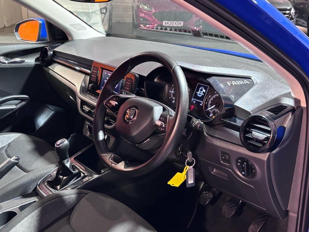 This 2022 Skoda Fabia TSI SE Comfort is a superb example, having had only one owner since new. This Euro 6 compliant 1.0 litre petrol model offers a blend of practicality and comfort, featuring manual air conditioning for those warmer days and Bluetooth connectivity for seamless phone integration. The SE Comfort trim ensures a pleasant driving experience, enhanced by the inclusion of LED headlights for improved visibility and Adaptive Cruise Control, which helps maintain a set speed and distance from the vehicle ahead. The Skoda Fabia TSI SE Comfort excels in several key areas, demonstrating its value. Its impressive fuel economy of 56 miles per gallon indicates it is more economical than many other vehicles in its class. Furthermore, its low CO2 emissions highlight its environmental consideration. The acceleration from 0 to 60 miles per hour in just 10.4 seconds shows it offers responsive performance for everyday driving. This Fabia also boasts a large boot space, providing ample room for shopping, luggage, or equipment, making it a versatile choice for various needs. Energy Blue, ACC - Adaptive Cruise Control, 15in Alloy Wheels - Rotare - Silver, 2 Reading Lights in Front and 2 Reading , 2 USB-C Ports in the Front - for Data Tr, 2-Spoke Leather Multifunction Steering W, 3-Point Height Adjustable Front Seats Be, 4 Speakers in Front, Air Conditioning - Manual, Airbags - Front Side, Airbags - Head for Front, Anti-Theft Alarm System including Immobi, Automatic Warning Lights in Case of Cras, Black Painted Air Vents, Bluetooth, Bumpers - Body Coloured, Central Console with Fixed Cup Holder an, Central Locking with Radio Remote Contro, DAB Radio, Dimming Rear View Mirror with Black Fram, Door Handles - Interior in Black, Door Mirrors in Body Colour with Integr