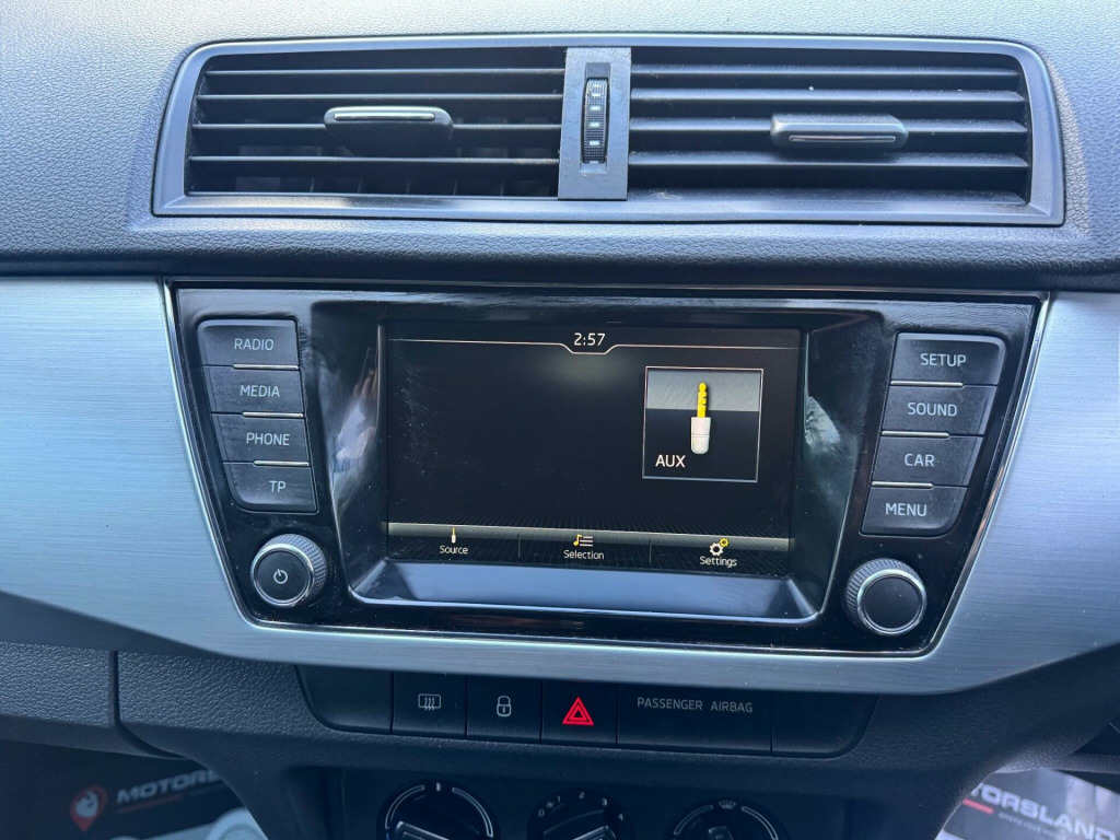This 2017 Skoda Fabia TSI SE is presented with a clear vehicle history check, offering you peace of mind. Powered by an efficient 1.0 litre Euro 6 compliant petrol engine, this model benefits from a manual air conditioning system to keep you comfortable, and a Bolero radio complete with Bluetooth connectivity for your entertainment and communication needs. For added convenience, it features acoustic rear parking sensors to assist you when manoeuvring.The Skoda Fabia TSI SE stands out with its impressive fuel economy, achieving up to 64 miles per gallon, which is excellent for its class. Furthermore, its low CO2 emissions and low insurance group rating mean that running costs are kept to a minimum, making it a sensible and economical choice compared to many other vehicles. in alloy wheels - mato, acoustic parking sensors - rear, air conditioning - manual, black roof rails, body coloured door mirrors and door handles, bolero radio, curtain and side airbags, dab radio, driver and front passenger airbags with front passenger airbag deactivation, esc - electronic stability control, electric windows - front, electrically adjustable and heated door mirrors, electro-mechanical power steering, front assistant, front and rear interior lights, front and rear passenger seatbelt warning light, height and reach adjustable steering wheel, isofix child seat fittings on outer rear seats, leather handbrake and gear lever, leather multifunction steering wheel, luggage hooks in the boot, multifunction trip computer, rear fog light, remote central locking with safe system and alarm with interior monitoring, seats - drivers height adjustment, seats - front passenger height adjustment, smartlink plus, speed limiter, tpms - tyre pressure monitoring system, umbrella under front passenger seat, vanity mirrors in sun visors