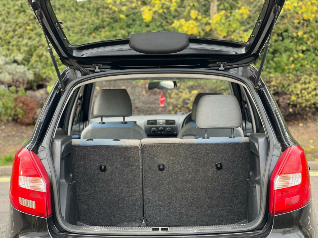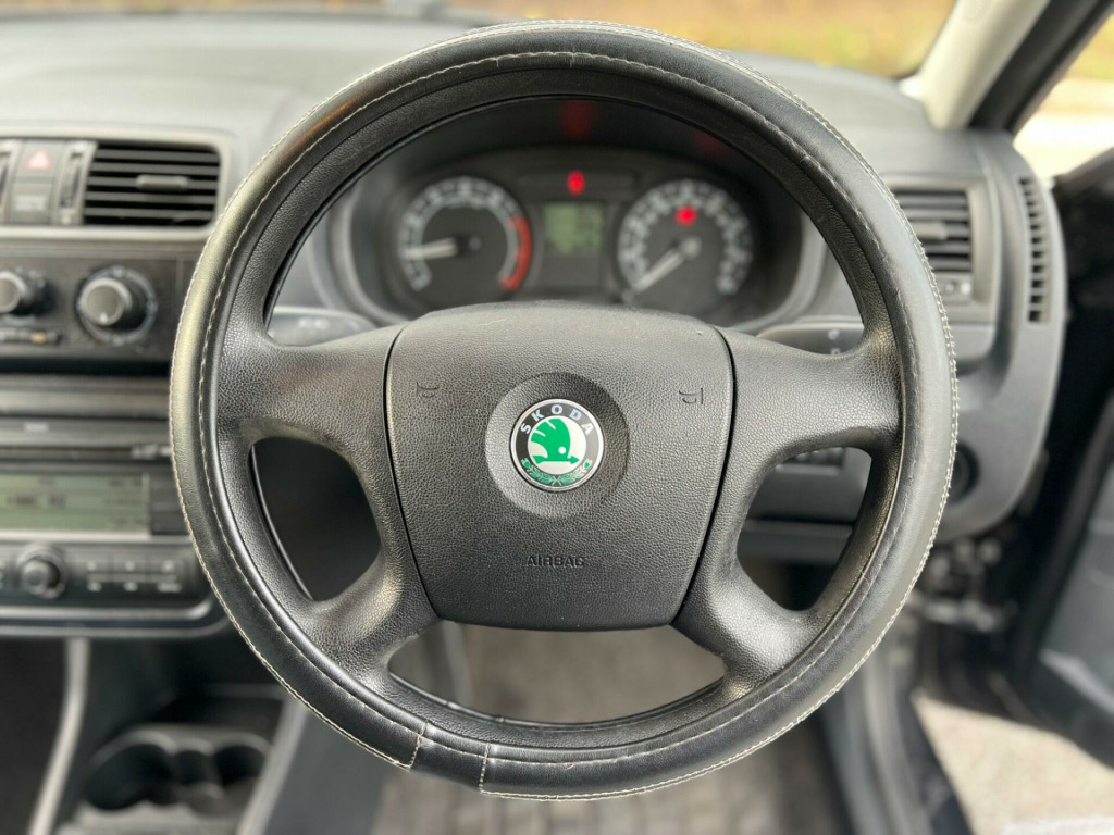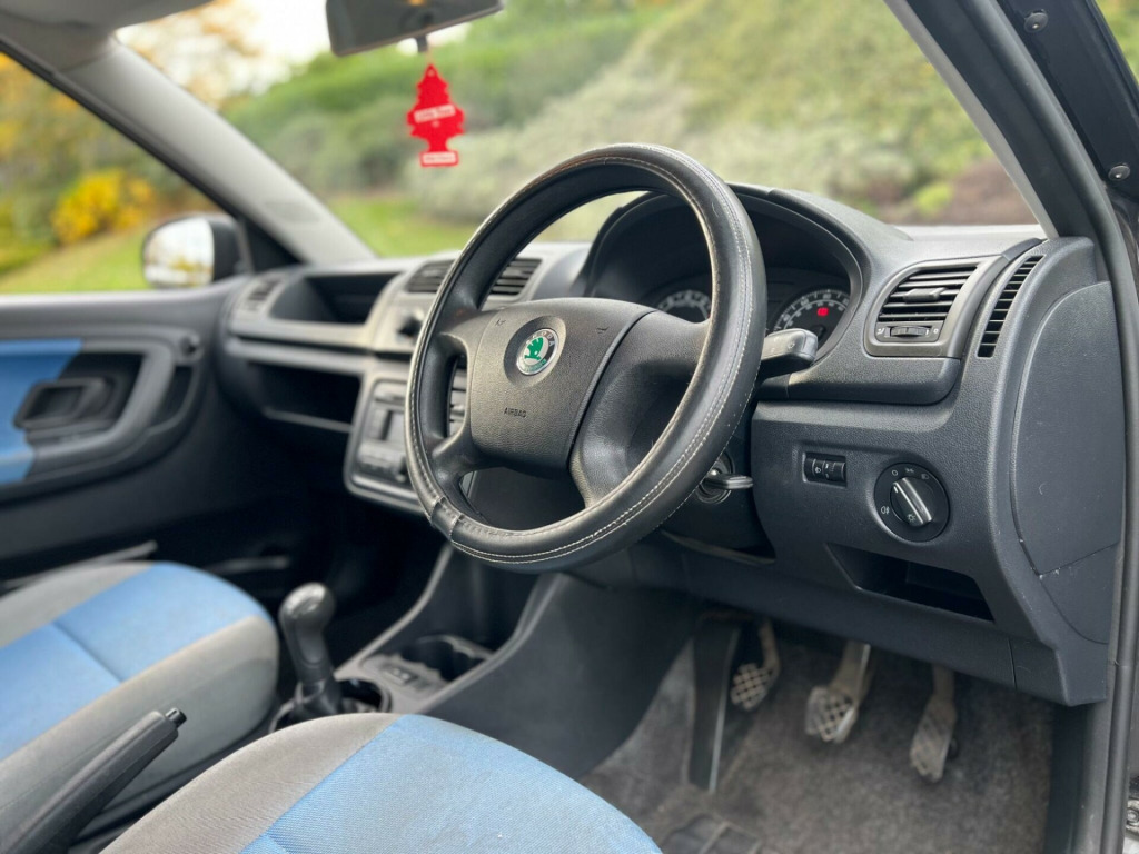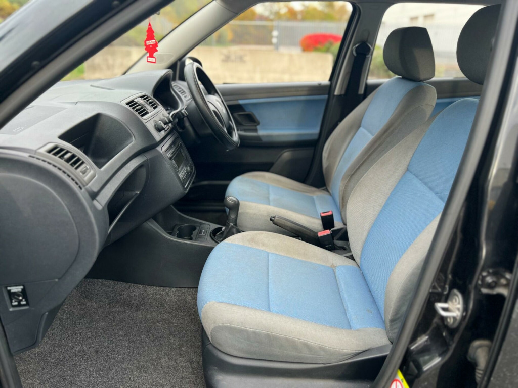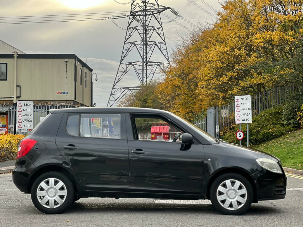 2008 Skoda Fabia 1.2 petrol finished in black. justable steering column/wheel, air bag driver, air bag passenger, air bag side, anti-lock brakes, central door locking, cup holder, electric windows (front), immobiliser, in car entertainment (radio/cd/mp3), mirrors external, power-assisted steering, seat height adjustment, seats split rear, spare wheel (full size steel), speakers, steel wheels, upholstery cloth, windscreen wiper