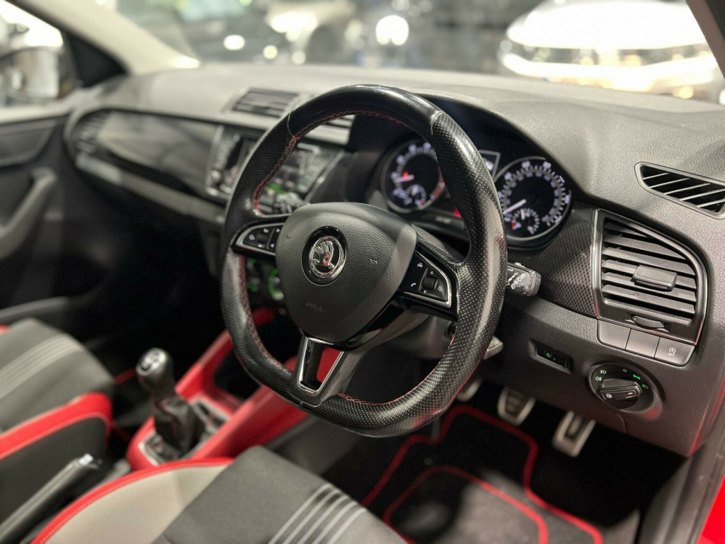 Here at BP Car Sales we have a stunning Skoda Fabia 1.2 TSI Monte Carlo Euro 6 (s/s) 5dr in a stunning  RED comes with 2 KEYS, PANORAMIC GLASS ROOF, DAY TIME RUNNING LIGHTS, LANE ASSIST, BLUETOOTH, AUX, DAB, PARKING SENSORS, BLACK AND CONTRAST INTERIOR, SERVICE HISTORY, Zero Deposit Finance Available  All Cars HPI Clear with Verified Mileage  DELIVERY Service Available  Back to base warranty,  Reserve Any Car with a £100 Refundable Holding FEE  Finance admin fee  £300 ,  Free Complimentary Collection from Local Airport and Train Stations Available  Card Payments Accepted  Open 7 Days  ,     LOCATED 1 MILE FROM THE M606 , APPOINTMENT BASED ONLY **PLEASE BOOK APPOINTMENT TO VIEW VEHICLE ** in alloy wheels - black italia, abs - anti-lock braking system, asr - anti slip regulation, air conditioning - manual, airbags - driver, airbags - front passenger, airbags - front side, airbags - passenger deactivation switch, alarm with interior monitoring, anti-theft locking wheel bolts, arkamys surround sound package, bluetooth, bolero radio with telephone control, central locking - remote, centre console - cherry red, chrome pack, courtesy light - rear, curtain airbags, dab radio, daytime running lights - led, decorative insert - black, door handles - body coloured, door mirrors - black, door sill trims - monte carlo, eds - electronic differential system, esp - electronic stability programme, electric windows - front, electrically adjustable and heated door mirrors, floor mats with red stitching, front assistant, front fog lights, gearknob - leather, grab handles - roof, hba - hydraulic brake assist, handbrake - leather, headlining - pearl grey, height and reach adjustable steering wheel, isofix child seat preparation - outer rear, luggage compartment - hooks, msr - motor slip regulation, mirror link, monte carlo - badge on b pillar, monte carlo pedals, panoramic glass roof, parking sensors - rear, pollen filter, power steering, radiator grille - black, reading lights - front, safe - prevents unlocking from inside, sd card reader, seatbelt warning - front, seatbelt warning - rear, seats - drivers height adjustment, seats - front passenger height adjustment, smartlink, speakers x6, speed limiter, spoiler - rear body coloured, sports seats, steering wheel - multifunction for radio and telephone, steering wheel - sports with red stitching, storage - under drivers seat, storage - under passenger seat, sunset glass, tpms - tyre pressure monitoring system, textile floor mat set, trip computer - maxi-dot, usb connection, vanity mirrors - front