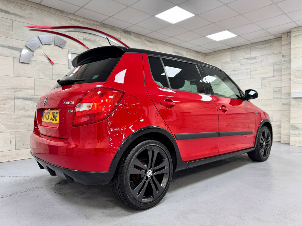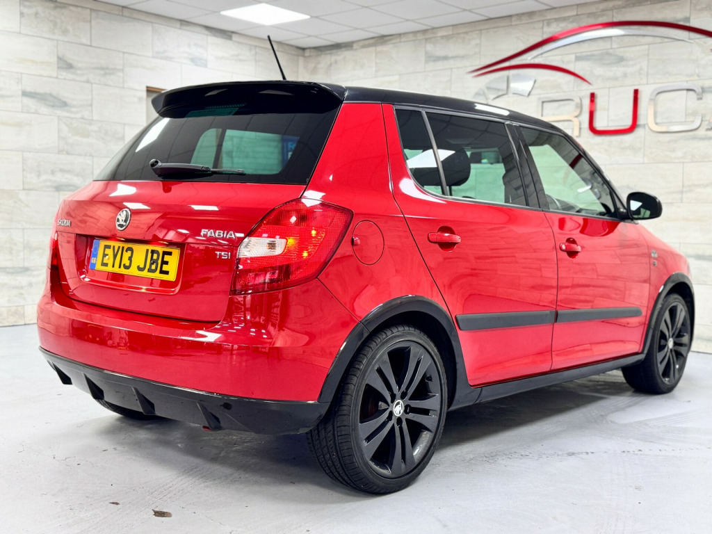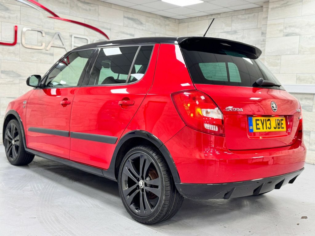 A fantastic opportunity to purchase a very clean & well maintained example!This 2013 '13' ULEZ Compliant SKODA FABIA 1.2 TSi Monte Carlo is finished in Corrida Red & Black with Onyx Red & Black interior.SPECIFICATION - Electric Mirrors Electric Mirrors Monte Carlo factory styling kit Privacy glass Remote central locking 17'' Wheels & much more! MAINTENANCE -The car will come with a new MOT & full health check all included within the price. It also has a great service history with 12 documented services (Serviced1k,2k,3k,14k,21k,33k,39k,46k,57k,66k,74k,80k)MORE ABOUT THE CAR - The car is absolutely beautiful. The spec is great, the overall condition is fantastic & of course it drives without fault.WHATS INCLUDED - The car will come with a new MOT, fully valeted & 3 Months Ultimate Warranty included. We have 3 keys, clear HPI report and all paperwork.VIDEO - https://youtu.be/zAdk3-_P-TQFINANCE AVAILABLE - We are fully regulated by the FCA & work with multiple brokers & lenders.R U Cars Loughborough is a family run business, selling quality used vehicles since 2013. Visit www.RUCARS.co.uk for more information 5 litre drinks holders in front door panels, air conditioning - manual, auto dimming rear view mirror, glovebox - cover, grab handles - roof, head restraints - height adjustable front and rear x2, leather gearknob and handbrake with red stitching, luggage compartment - load securing, pollen filter, seats - front height adjustment, seats - split folding rear - 60-40, sports seats, steel sports pedals and kick plates, steering wheel - height adjustable, steering wheel - perforated leather sports, storage - boot, ticket holder, vanity mirrors - front, 17in alloy wheels - trinity, black roof and tailgate spoiler, bumpers - body coloured, door handles - body coloured, door mirrors - black, door mirrors - driver aspherical, electric windows - front, electrically adjustable and heated door mirrors, headlights - range adjustment, radiator grille - darkened chrome on top, rear diffuser - black, sunset glass, tinted windows - side and rear, tinted windscreen, tyre repair kit, windscreen wiper with intermittent control - 4 speed, abs - anti-lock braking system, asr - anti slip regulation, airbags - driver, airbags - front passenger, airbags - front side, airbags - passenger deactivation switch, alarm with interior monitoring-back up horn and remote central locking, central locking - remote, ebc - electronic brake control, edl - electronic differential lock, esp - electronic stability programme, hba - hydraulic brake assist, isofix child seat preparation, seatbelt warning - drivers, exterior temperature gauge, power steering, suspension - sports, trip computer, front fog lights, headlights - halogen black smoked projector, mdi - multi device interface, radio swing with cd-mp3, speakers x8
