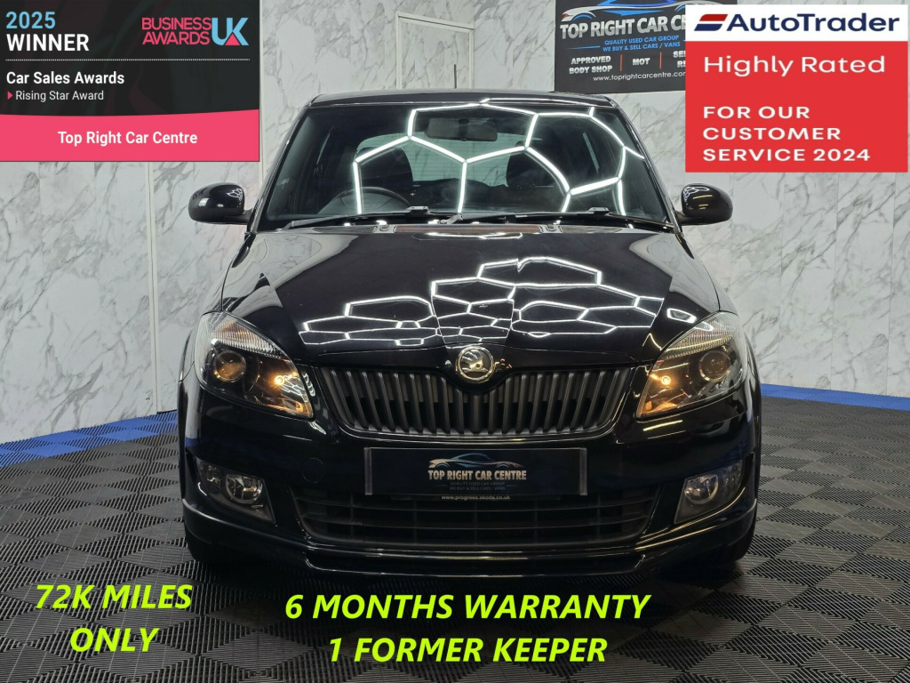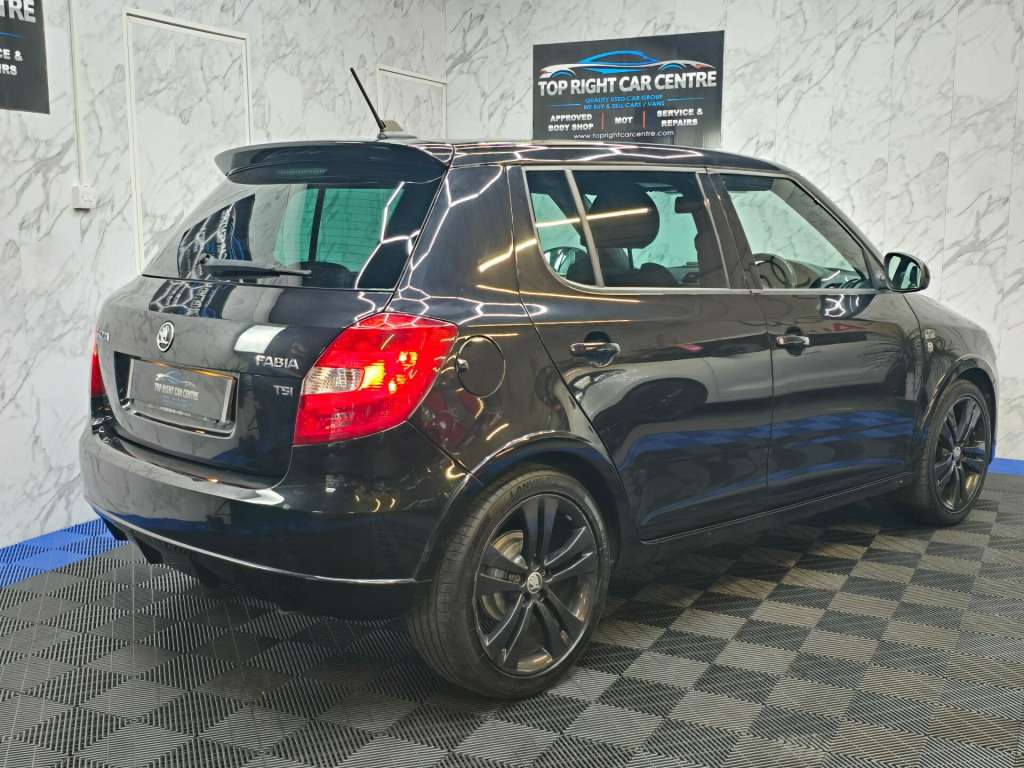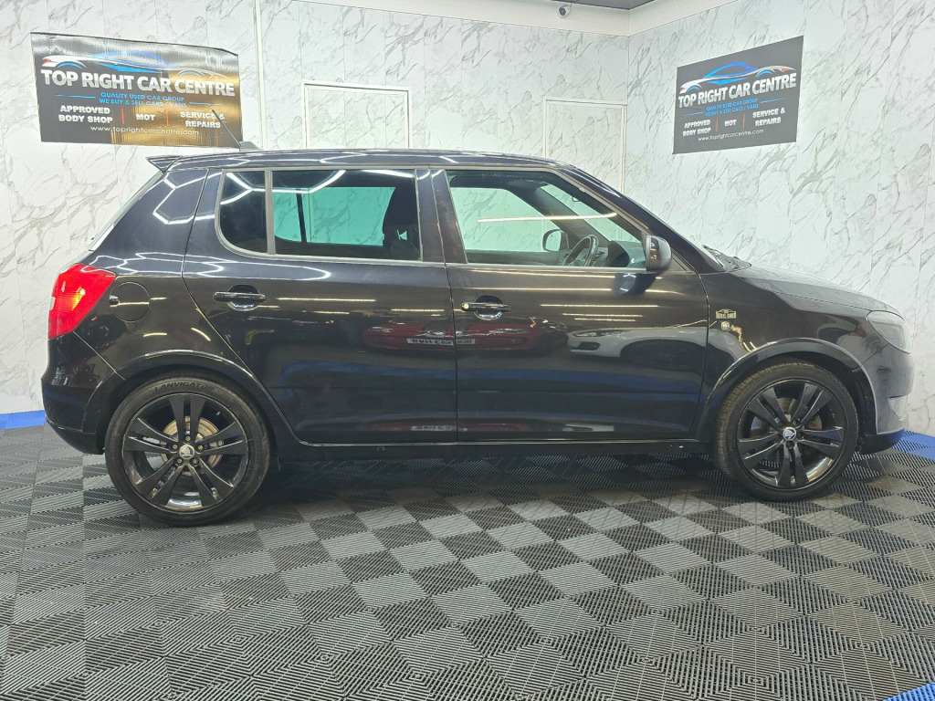 *** NIL DEPOSIT FINANCE AVAILABLE *** ***HPI CLEAR***6 MONTHS WARRANTY AND BREAKDOWN COVER WITH THIS CAR.Low mileage 72k miles. 1 former keeper only.FULL SERVICE HISTORY. MOT 30 JULY 2026 NO ADVISORIES. We just done the fresh service.This stunning Skoda Fabia has been sourced directly from its Previous Private Owner. Every now and again, a car comes into stock at Top Right Car Centre, that you cannot help but fall in love with.Top Spec Monte Carlo Tech massive centre touch screen satnav, electric windows, privacy glass.Clean Car in Black colour. Great comfortable family car. Well maintained body work and interior. Bullet fast response. Checked by our engineers. Professionally detailed. Good reliable runner. Price checked. We've just completed a full pre delivery inspection on the car to give you complete piece of mind. 2 central locking keys. Smooth gear box. Clean Alloy wheels. Excellent condition tyres. Multimedia has Bluetooth RADIO CD mp3 AUX. Run with no fault strong reliable engine. Good fuel economy. First to see will buy it this well looked after car. p/x welcome. We do price our cars/van as competitively as possible and because of this we sell cars/vans very quickly. BE QUICK! MISS IT - MISS OUT. With so much variety, quality and highly rated award winner 2024, it is no wonder we are super busy all the time. Why Buy From Top Right Car Centre?Thoroughly Inspected Cars. All our vehicles are quality-checked and HPi verified, giving you peace of mind with every purchase.Award-Winning Family Business. As a trusted family-run business, we have earned awards for our customer service and expertise.Hand-Picked, Quality Cars. We carefully select only the finest cars with full service histories, so you can drive away with confidence.Test Driven for Assurance. Each car is personally test-driven by our team, ensuring it meets our high standards.Delivery Service. Need it delivered? We have got you covered.Please visit our website www.toprightcarcentre.com 5 litre drinks holders in front door panels, air conditioning - manual, glovebox - cover, grab handles - roof, head restraints - height adjustable front and rear x2, height and reach adjustable steering wheel, leather gearknob and handbrake with red stitching, luggage compartment - load securing, pollen filter, seats - drivers height adjustment, seats - front passenger height adjustment, seats - split folding rear - 60-40, sports seats, steel sports pedals and kick plates, steering wheel - perforated leather sports, storage - boot, ticket holder, vanity mirrors - front, 17in alloy wheels - trinity, black roof and tailgate spoiler, bumpers - body coloured, door handles - body coloured, door mirrors - black, door mirrors - driver aspherical, electric windows - front, electrically adjustable and heated door mirrors, radiator grille - darkened chrome on top, rear diffuser - black, sunset glass, tinted windows - side and rear, tyre repair kit, abs - anti-lock braking system, airbags - driver, airbags - front passenger, airbags - front side, airbags - passenger deactivation switch, alarm with interior monitoring, central locking - remote, esp - electronic stability programme, isofix child seat preparation, seatbelt warning - drivers, dab radio, mdi - multi device interface, radio swing with cd-mp3, satellite navigation - amundsen with dab radio, speakers x8, telephone preparation - gsm ii with bluetooth, exterior temperature gauge, power steering, suspension - sports, trip computer, front fog lights, headlights - halogen black smoked projector
