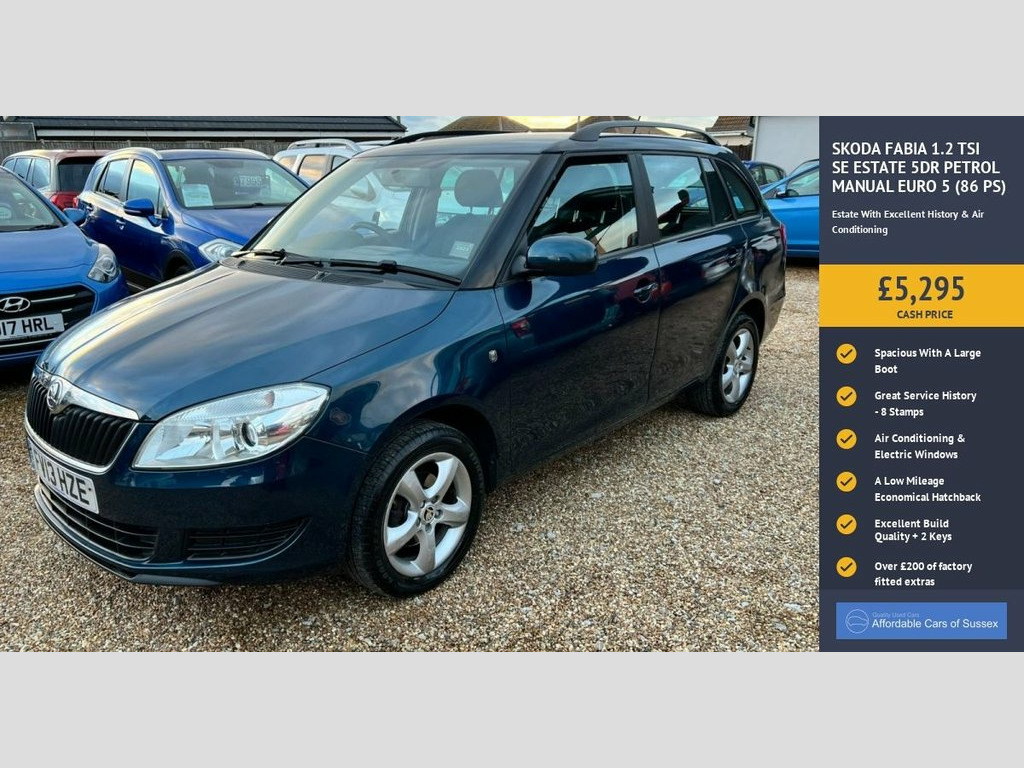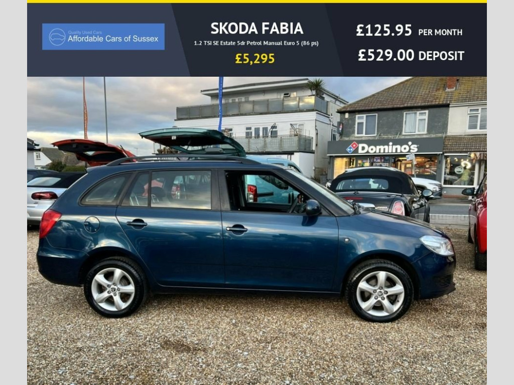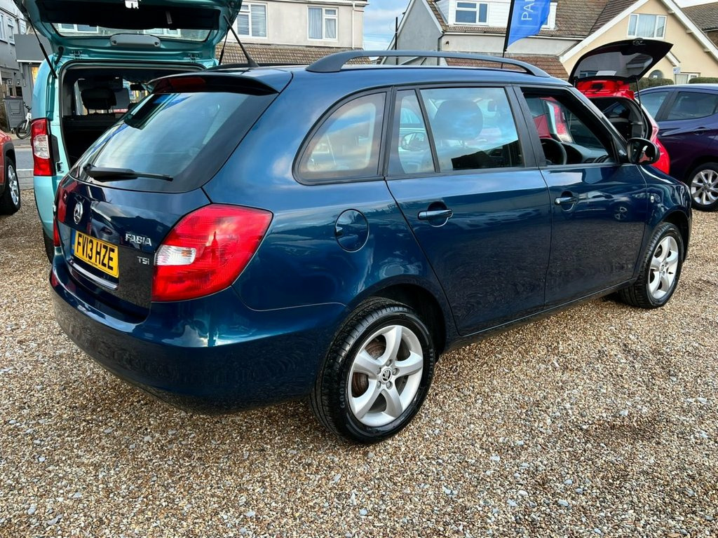 A good looking Skoda Fabia Estate SE finished in Pacific Blue metallic with alloy wheels. This useful sized estate car features air conditioning, electric windows and mirrors, remote central locking, spare wheel and more. A good practical estate car with excellent service history. Top 5 Reasons to buy this car; 1; Spacious With A Large Boot 2; Air Conditioning 3; Excellent Service History 4; Free Warranty included with no admin or hidden fee's - Fully transparent sales process 5; Bought from a local trusted family Dealer with over 60+ years experience Pacific Blue, Spare Wheel - Steel, Roof Rails, 1.5 Litre Drinks Holders in Front Door P, 12V Socket in Luggage Compartment, 15in Alloy Wheels - Antares, ABS - Anti-Lock Braking System, ASR - Anti Slip Regulation, Air Conditioning - Manual, Airbags - Driver, Airbags - Front Passenger, Airbags - Front Side, Airbags - Passenger Deactivation Switch, Alarm with Interior Monitoring-Back Up H, Anti-Theft Locking Wheel Bolts, Auto Dimming Rear View Mirror, Aux-In Socket - 3.5mm, Black Roof Rails, Bumpers - Body Coloured, Central Locking - Remote, Door Handles - Body Coloured, Door Mirrors - Body Coloured, Door Mirrors - Driver Aspherical, EBC - Electronic Brake Control, EDL - Electronic Differential