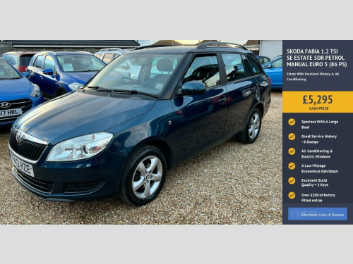 This 2013 Skoda Fabia 1.2 TSI SE Estate 5dr Petrol Manual Euro 5 (86 ps) Estate is currently available for £5,295 in Peacehaven East Sussex with Petrol engine and Manual gearbox. For more information or to arrange a viewing, click here to send us an email using form below.