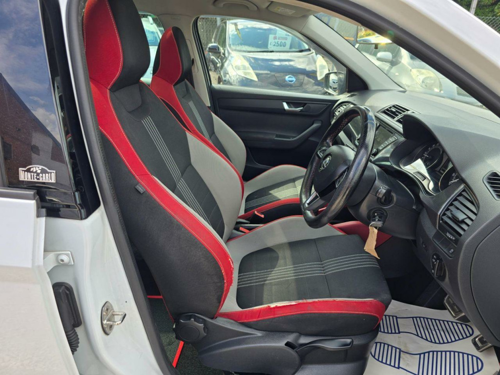 This Skoda Fabia TDI Monte Carlo from 2016 offers excellent peace of mind with its MOT valid until April 2026 and a clear vehicle history check. This stylish Monte Carlo variant is powered by an efficient 1.4 litre Euro 6 diesel engine, known for its impressive fuel economy. It also benefits from a partial service history, providing a good overview of its maintenance. Inside, you'll find a manual air conditioning system, a Bolero radio with Bluetooth connectivity, and an Arkamys Surround Sound Package for an enhanced audio experience. The fixed panoramic sunroof, complemented by black roof rails, adds a touch of sophistication and versatility.This particular Fabia stands out with its exceptional fuel economy, achieving an impressive 71 miles per gallon, which is a significant advantage for keeping running costs low. Furthermore, its low insurance group rating means more savings on your annual policy. The vehicle also boasts low CO2 emissions, making it an environmentally conscious choice. These highlights collectively demonstrate how this Skoda Fabia TDI Monte Carlo offers a more economical and cost effective ownership experience compared to many other vehicles in its class.. 16in Alloy Wheels - Black Italia, Acoustic Parking Sensors - Rear, Air Conditioning - Manual, Airbags - Front Side, Alarm with Interior Monitoring and SAFE Function, Anti-Theft Locking Wheel Bolts, Arkamys Surround Sound Package, Black Decorative Inserts on the Dash, Black Radiator Grille and Door Mirrors, Black Roof Rails, Bluetooth, Bolero Radio, Centre Console - Cherry Red, Chrome Pack, Courtesy Light - Rear, Curtain Airbags, DAB Radio, Daytime Running Lights - LED, Door Handles - Body Coloured, Door Sill Inserts with Monte Carlo Logo - Front, Driver and Front Passenger Seatbelt Warning Light, Drivers and Front Passenger Air Bag, ESC - Electronic Stability Control, Electric Windows - Front, Electrically Adjustable and Heated Door Mirrors, Front Assistant, Front Fog Lights, Grab Handles, HHC - Hill Hold Control, Height Adjustable Driver and Front Passenger Seat, Height and Reach Adjustable Steering Wheel, ISOFIX Child Seat Fittings on Outer Rear Seats, LED Light for Licence Plate, Leather Gearshift Handle, Leather Hand Brake Lever Handle, Luggage Compartment - Hooks, Mechanical Controlled Heating System, Monte Carlo - Badge on B Pillar, Monte Carlo Pedals, Panoramic Sunroof with Black Roof Rails, Pearl Grey Interior, Reading Lights - Front, Remote Central Locking with SAFE System and Alarm with Interior Monitoring, Seats - Front Passenger Height Adjustment, SmartLink, Speakers x6, Speed Limiter, Spoiler - Rear Body Coloured, Sports Leather Multi-Function Steering Wheel with Red Stitching, Sports Seats, Steering Direct Rack and Pinion Steering with Electro Hydraulic Power, Storage - Under Front Seats, Sunset Glass from B-Pillar Back, TPMS - Tyre Pressure Monitoring System, Textile Floor Mat Set, Trip Computer - Maxi-Dot, Umbrella Under Front Passenger Seat, Vanity Mirrors in Sun Visors. Part service history