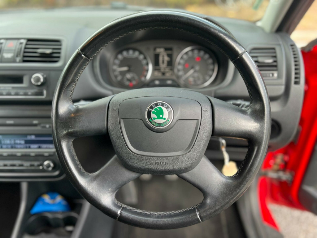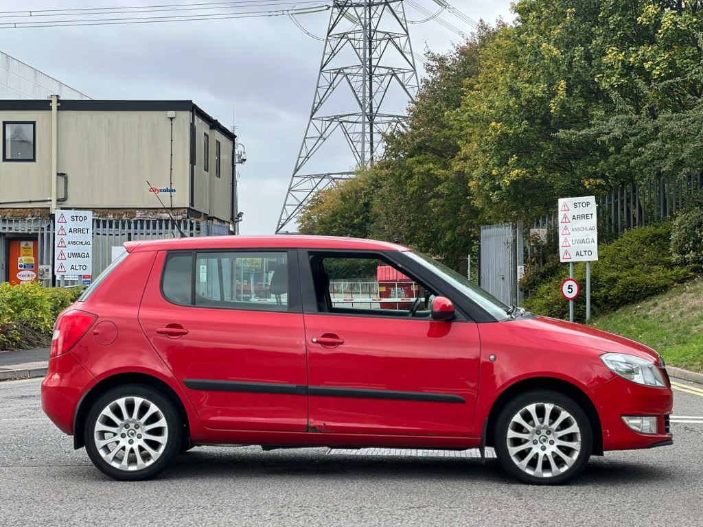 2010 Skoda Fabia 1.6 TDI Elegance Euro 5 5dr in Red. Only 49,000 warranted miles on the clock. MOT till 25th September 2026. Only 3 previous owners from new. £20 Road Tax for the year. Service History Available: 6 Services. Car drives well with no mechanical faults. Full V5 Available. Good spec including: Leather Steering Wheel, CD/Radio/AUX, AC/Climate Control, Electric Windows, Electric Mirrors, Parking Sensors, Alloy Wheels, Central Locking and many more. Nationwide Delivery Available. P/X Welcome. HPI Clear. 2 Keys. Any questions don't hesitate to contact us on 07443456706. Whatsapp available as well in comet alloy wheels, 16in elba alloy wheels, 4spoke leather steering wheel, front foglights, tinted rear windows, tyre repair kit
