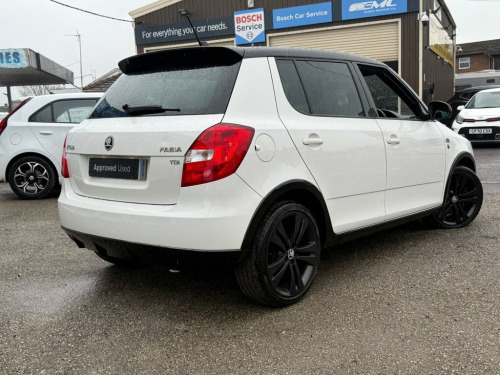 STUNNING, £25 ROAD TAX PER YEAR, SKODA FABIA 1.6 TDI SPECIAL EDITION MONTE CARLO TECH. Finished in CANDY WHITE with contrasting GREY SPORTS TRIM. This Skoda Fabia Monte Carlo is the most luxurious supermini Skoda offers. It is also good value, practical comfortable and low running costs. Features include Sat Nav, B/tooth, 17" Sports Alloys, Black Roof and Spoiler, Front Fogs, £25 Road Tax and much more. Dealer serviced at 7409 miles, 15006 miles, 23817 miles, 35908 miles, 58761 miles and then at 59487 miles, 82630 miles and at 94006 miles. EMC IS A FAMILY RUN BUSINESS, EST IN 1989. OUR AIM IS TO PROVIDE A SIMPLE, EASY AND CARING BUYING EXPERIENCE. Please call JEFF or BEN to reserve this wonderful example today. Roof - Black, Candy White, Air Conditioning - Manual, Front Fog Lights, DAB Radio, MDI - Multi Device Interface, Satellite Navigation - Amundsen with DAB