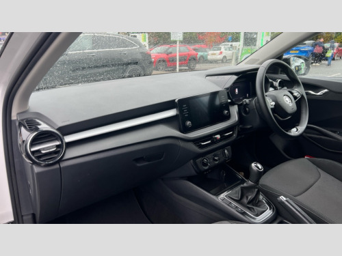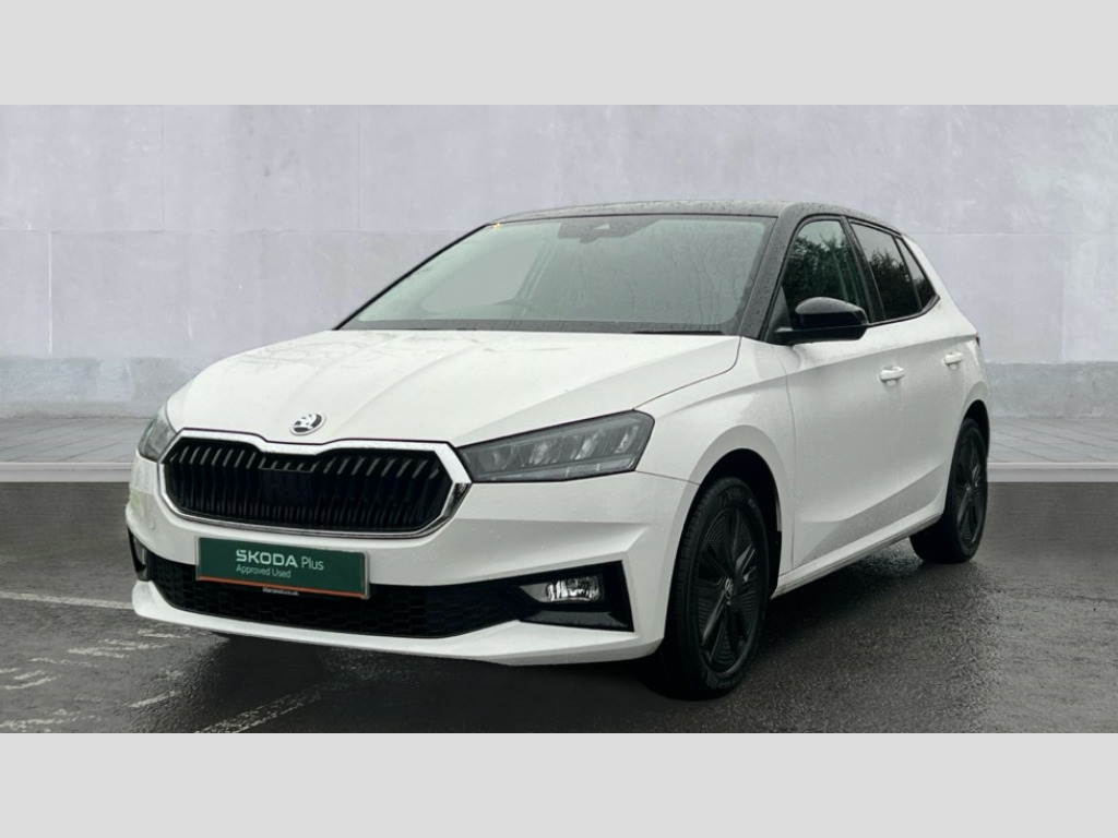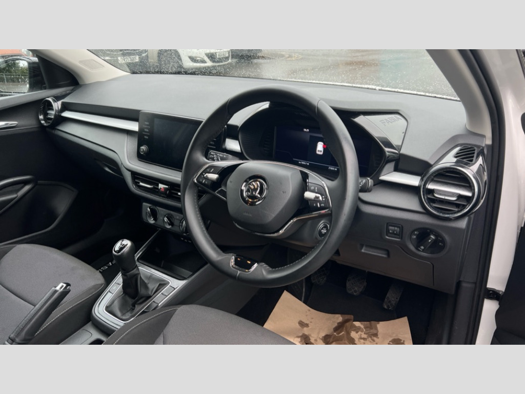 Skoda Fabia 1.0 MPI 80 Colour Edition 5dr Bluetooth connection, Driver alert system - DAS, Electromechanical power steering, Exterior temperature gauge, Lane assist including road edge detection, Service interval indicator, Virtual cockpit with 10.25" colour display, 2x USB-C in the front (for data transmission and charging), 6 Speakers (4 in front and 2 in rear), Auxiliary socket for external MP3 player, Bolero radio with 8" colour display, DAB digital radio reception, Basic rear lights, Body coloured bumpers, Dimming rear view mirror with black frame, Door mirror integrated indicators, Electrically adjustable and heated door mirrors, Electrically adjustable front windows with function auto up/down, Front window wiper intermittent control, Headlight range control - Automatic, Ice scraper in fuel cap, LED daytime running lights with coming and leaving home feature, Mechanical adjustable rear windows, Privacy glass, Rear LED fog light, Rear side wing doors, Rear window wiper with washing nozzles, Roof colour door mirrors, Roof mounted spoiler, SKODA tailgate lettering in chrome, Third brake light, 3 rear headrests, Backrest split and folding, Central console with fixed cup holder and storage box, Chrome handbrake release button, Fabric upholstery, Gearshift knob/handle in leather, Grain satin black interior door handles, Hand brake lever handle in leather, Height adjustable front headrests, Height adjustable steering wheel, ISOFIX and TopTether anchorage points to the outer rear seats, ISOFIX and TopTether on the front passenger seat, Luggage compartment lighting, Pollen filter, Rear seat bench unsplit, Single front passenger seat, Storm grey headlining, Sun visors with mirror and airbag label on passenger side, Ticket holder, Umbrella in drivers door, 3-point height adjustable front seats belts with pretensioner and force limiter, Automatic warning lights in case of crash, Driver and passengers airbag with switch off function, e-Call+, ESC including ABS, MSR, ASR, EDS, HBA and XDS, Front and rear seat belt warning, FRONT ASSIST (AEB City and AEB Inter Urban), Front side airbags, Head airbags, One tone horn, Pedestrian protection, Three rear 3-points safety seat belts with pretensioner and force limiter including stop function for outer rear seat belts, Tyre pressure monitoring system, Anti-theft alarm system including immobiliser, interior monitoring, backup horn, and towing protection, Anodized cross line upper decorative trim, Colour Edition air vents, Grain satin black central console cover, Grain satin black lower decorative trim, Satin black door and side trim panel in front, Anti-theft wheel bolts protection, Super-low rolling resistance tyres