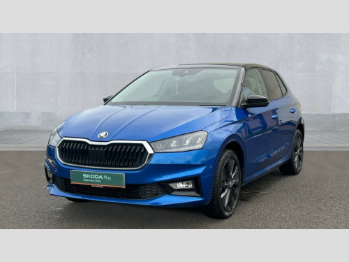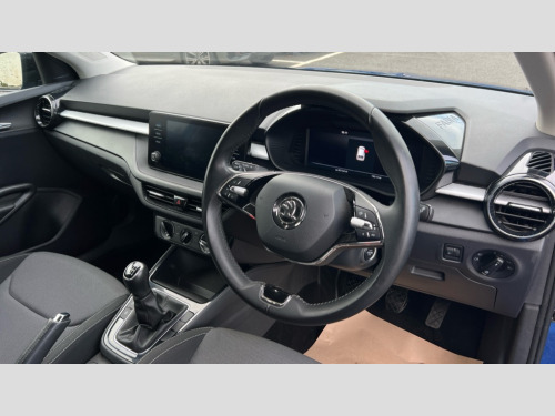 Skoda Fabia 1.0 TSI 110 Colour Edition 5dr Bluetooth connection, Driver alert system - DAS, Electromechanical power steering, Exterior temperature gauge, Lane assist including road edge detection, Service interval indicator, Virtual cockpit with 10.25" colour display, 2x USB-C in the front (for data transmission and charging), 6 Speakers (4 in front and 2 in rear), Auxiliary socket for external MP3 player, Bolero radio with 8" colour display, DAB digital radio reception, Basic rear lights, Body coloured bumpers, Dimming rear view mirror with black frame, Door mirror integrated indicators, Electrically adjustable and heated door mirrors, Electrically adjustable front windows with function auto up/down, Front window wiper intermittent control, Headlight range control - Automatic, Ice scraper in fuel cap, LED daytime running lights with coming and leaving home feature, Mechanical adjustable rear windows, Privacy glass, Rear LED fog light, Rear side wing doors, Rear window wiper with washing nozzles, Roof colour door mirrors, Roof mounted spoiler, SKODA tailgate lettering in chrome, Third brake light, 3 rear headrests, Backrest split and folding, Central console with fixed cup holder and storage box, Chrome handbrake release button, Fabric upholstery, Gearshift knob/handle in leather, Grain satin black interior door handles, Hand brake lever handle in leather, Height adjustable front headrests, Height adjustable steering wheel, ISOFIX and TopTether anchorage points to the outer rear seats, ISOFIX and TopTether on the front passenger seat, Luggage compartment lighting, Pollen filter, Rear seat bench unsplit, Single front passenger seat, Storm grey headlining, Sun visors with mirror and airbag label on passenger side, Ticket holder, Umbrella in drivers door, 3-point height adjustable front seats belts with pretensioner and force limiter, Automatic warning lights in case of crash, Driver and passengers airbag with switch off function, e-Call+, ESC including ABS, MSR, ASR, EDS, HBA and XDS, Front and rear seat belt warning, FRONT ASSIST (AEB City and AEB Inter Urban), Front side airbags, Head airbags, One tone horn, Pedestrian protection, Three rear 3-points safety seat belts with pretensioner and force limiter including stop function for outer rear seat belts, Tyre pressure monitoring system, Anti-theft alarm system including immobiliser, interior monitoring, backup horn, and towing protection, Anodized cross line upper decorative trim, Colour Edition air vents, Grain satin black central console cover, Grain satin black lower decorative trim, Satin black door and side trim panel in front, Anti-theft wheel bolts protection, Super-low rolling resistance tyres