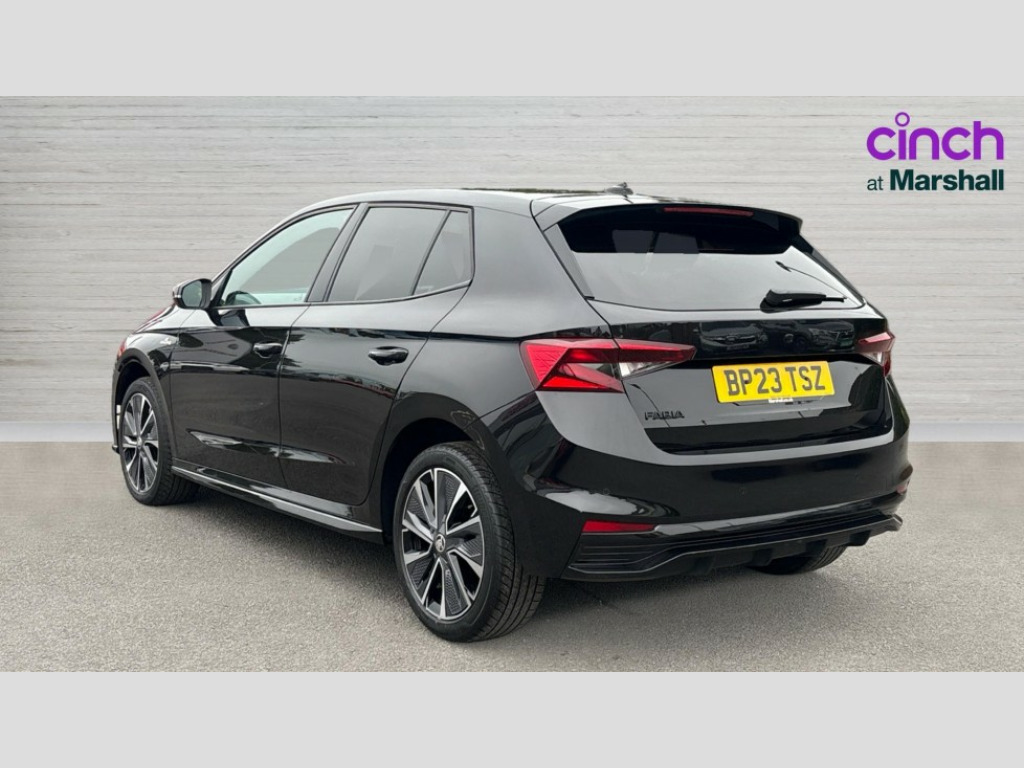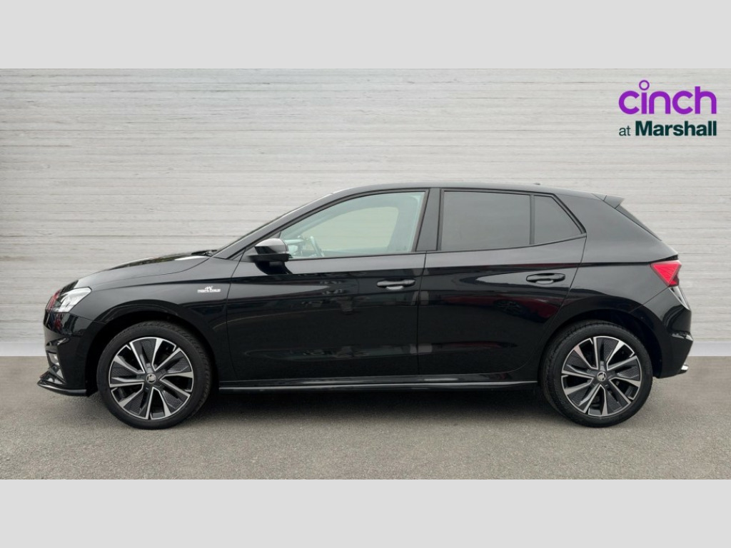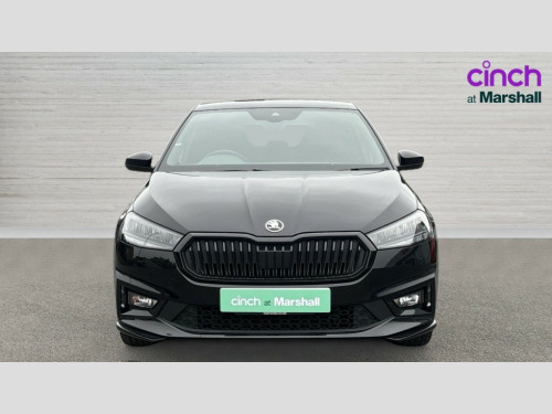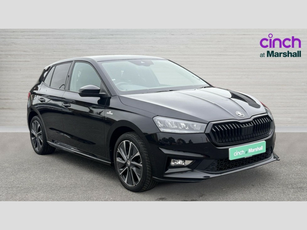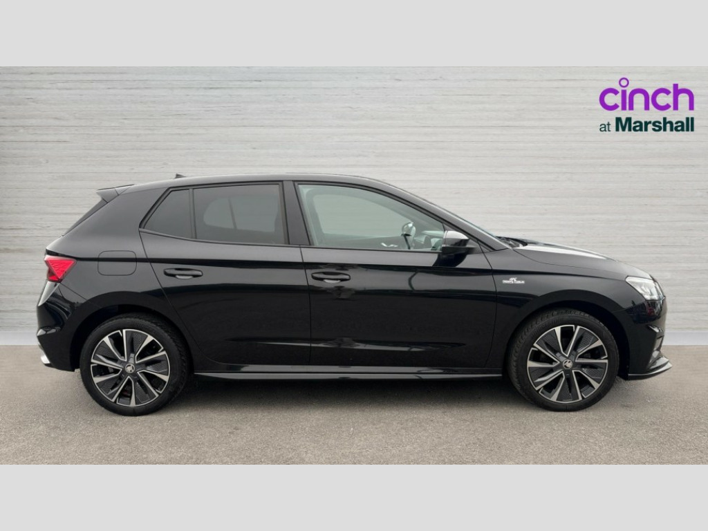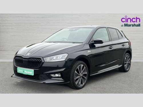 Skoda Fabia 1.0 TSI 110 Monte Carlo 5dr Bluetooth connection, Driver alert system - DAS, Electromechanical power steering, Exterior temperature gauge, Service interval indicator, 2x USB-C in the front (for data transmission and charging), 6 Speakers (4 in front and 2 in rear), Auxiliary socket for external MP3 player, Bolero radio with 8" colour display, DAB digital radio reception, Auto dimming rear view mirror, Basic rear lights, Black radiator grille, Body coloured bumpers, Door mirror integrated indicators, Electrically adjustable and heated door mirrors, Front and rear electric windows, Front window wiper intermittent control, Headlight range control - Automatic, Ice scraper in fuel cap, LED daytime running lights with coming and leaving home feature, Monte Carlo badging, Privacy glass, Rear LED fog light, Rear side wing doors, Rear window wiper with washing nozzles, Roof mounted spoiler, SKODA tailgate lettering in black, Sports bumpers, Third brake light, 3 rear headrests, Aluminium pedals, Backrest split and folding, Black headlining, Central console with removable cup holder and storage box, Chrome handbrake release button, Fabric/artificial leather upholstery, Front sports seats, Gearshift knob/handle in leather, Hand brake lever handle in leather, Height adjustable front headrests, Height adjustable steering wheel, ISOFIX and TopTether anchorage points to the outer rear seats, ISOFIX and TopTether on the front passenger seat, Luggage compartment lighting, Metallic painted red central console cover, Metallic red interior door handles, Monte Carlo door sills, Pollen filter, Rear seat bench unsplit, Single front passenger seat, Sun visors with mirror and airbag label on passenger side, Textile floor mats, Ticket holder, Umbrella in drivers door, Ambient lighting pack 2 - Fabia Hatchback, 3-point height adjustable front seats belts with pretensioner and force limiter, Automatic warning lights in case of crash, Driver and passengers airbag with switch off function, e-Call+, ESC including ABS, MSR, ASR, EDS, HBA and XDS, Front and rear seat belt warning, FRONT ASSIST (AEB City and AEB Inter Urban), Front side airbags, Head airbags, One tone horn, Pedestrian protection, Three rear 3-points safety seat belts with pretensioner and force limiter including stop function for outer rear seat belts, Tyre pressure monitoring system, Anti-theft alarm system including immobiliser, interior monitoring, backup horn, and towing protection, Carbon effect door and side trim panels, Carbon effect lower decorative trim with white stitching, Red metallic upper decorative trim, Anti-theft wheel bolts protection, Super-low rolling resistance tyres