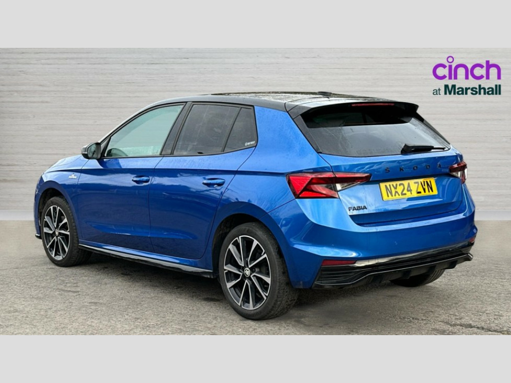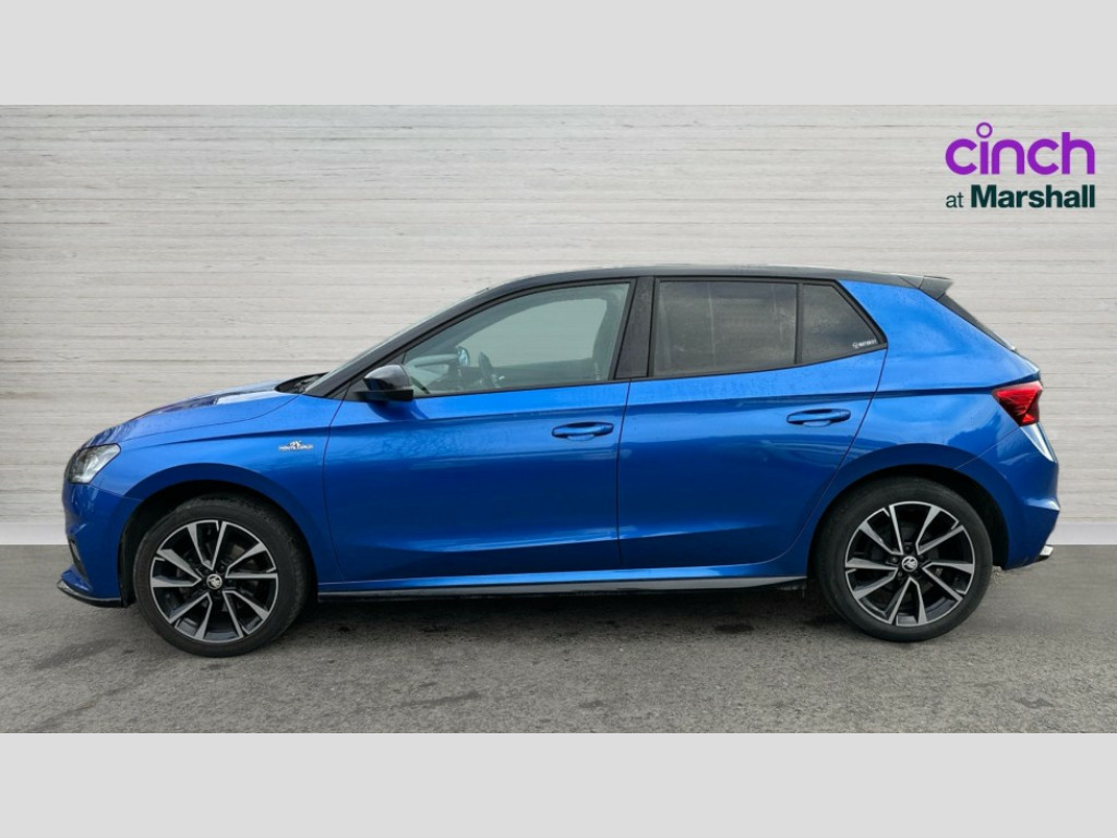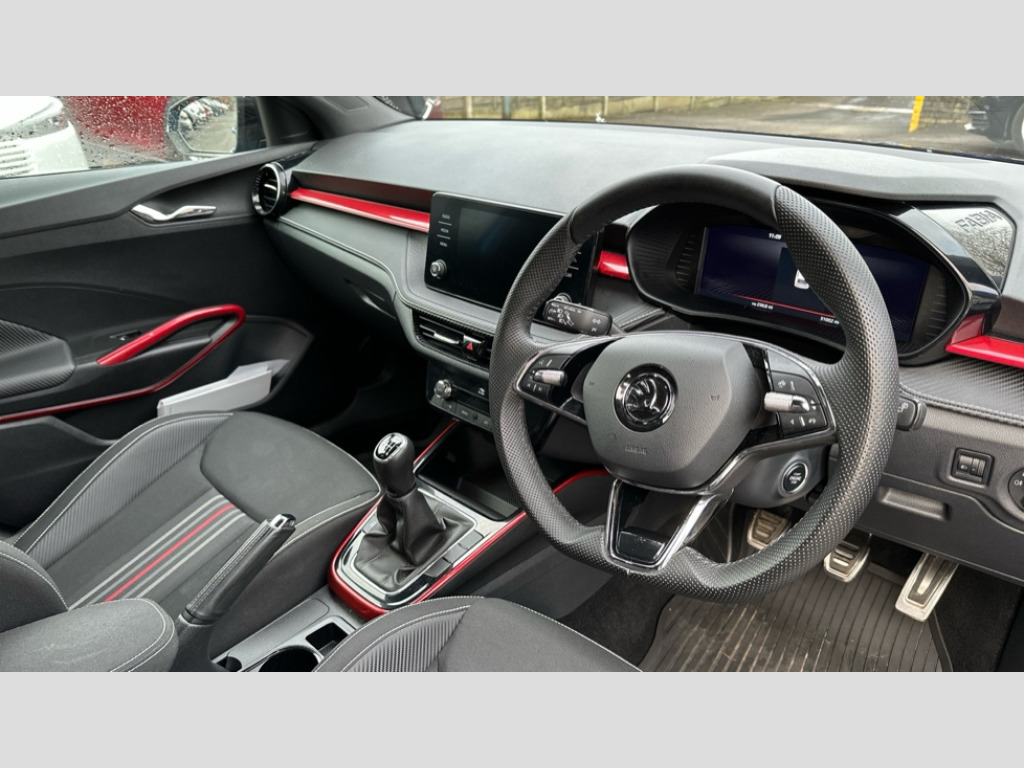 Skoda Fabia 1.0 TSI 110 Monte Carlo 5dr Bluetooth connection, Driver alert system - DAS, Electromechanical power steering, Exterior temperature gauge, Service interval indicator, 2x USB-C in the front (for data transmission and charging), 6 Speakers (4 in front and 2 in rear), Auxiliary socket for external MP3 player, Bolero radio with 8" colour display, DAB digital radio reception, Auto dimming rear view mirror, Basic LED Headlights, Black radiator grille, Body coloured bumpers, Door mirror integrated indicators, Electrically adjustable and heated door mirrors, Front and rear electric windows, Front fog lights, Front window wiper intermittent control, Headlight range control - Automatic, Ice scraper in fuel cap, LED daytime running lights with coming and leaving home feature, Monte Carlo badging, Privacy glass, Rain sensor, Rear LED fog light, Rear side wing doors, Rear window wiper with washing nozzles, Roof mounted spoiler, SKODA tailgate lettering in black, Sports bumpers, Third brake light, 3 rear headrests, Aluminium pedals, Backrest split and folding, Black headlining, Central console with removable cup holder and storage box, Chrome handbrake release button, Door sills with fabia badging, Fabric/artificial leather upholstery, Front centre armrest, Front sports seats, Gearshift knob/handle in leather, Hand brake lever handle in leather, Height adjustable front headrests, Height adjustable front seats, Height adjustable steering wheel, ISOFIX and TopTether anchorage points to the outer rear seats, ISOFIX and TopTether on the front passenger seat, Luggage compartment lighting, Metallic painted red central console cover, Metallic red interior door handles, Pollen filter, Rear seat bench unsplit, Single front passenger seat, Sun visors with mirror and airbag label on passenger side, Textile floor mats, Ticket holder, Umbrella in drivers door, 3-point height adjustable front seats belts with pretensioner and force limiter, Automatic warning lights in case of crash, Driver and passengers airbag with switch off function, e-Call+, ESC including ABS, MSR, ASR, EDS, HBA and XDS, Front and rear seat belt warning, FRONT ASSIST (AEB City and AEB Inter Urban), Front side airbags, Head airbags, One tone horn, Pedestrian protection, Three rear 3-points safety seat belts with pretensioner and force limiter including stop function for outer rear seat belts, Tyre pressure monitoring system, Anti-theft alarm system including immobiliser, interior monitoring, backup horn, and towing protection, Central locking with radio remote control, interior controls, SAFE function and 2 foldable keys, KESSY - Keyless engine start/stop, Carbon effect door and side trim panels, Carbon effect lower decorative trim with white stitching, Red metallic upper decorative trim, Anti-theft wheel bolts protection, Super-low rolling resistance tyres