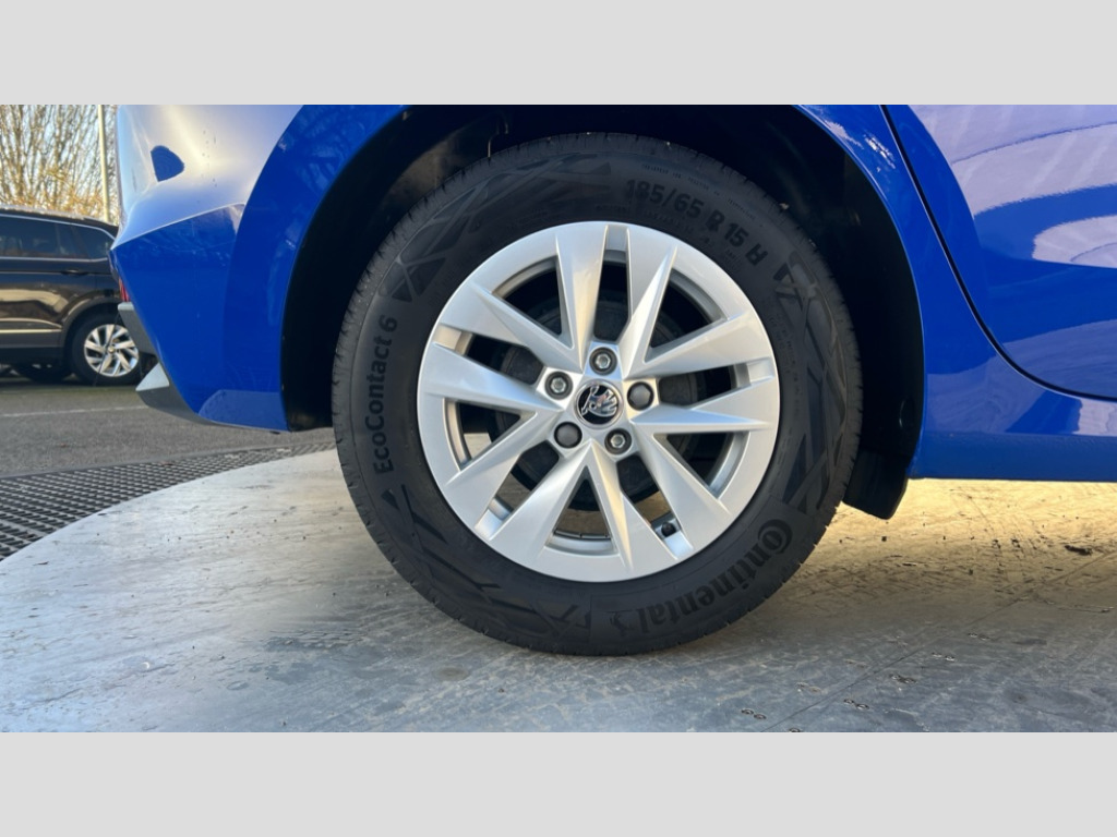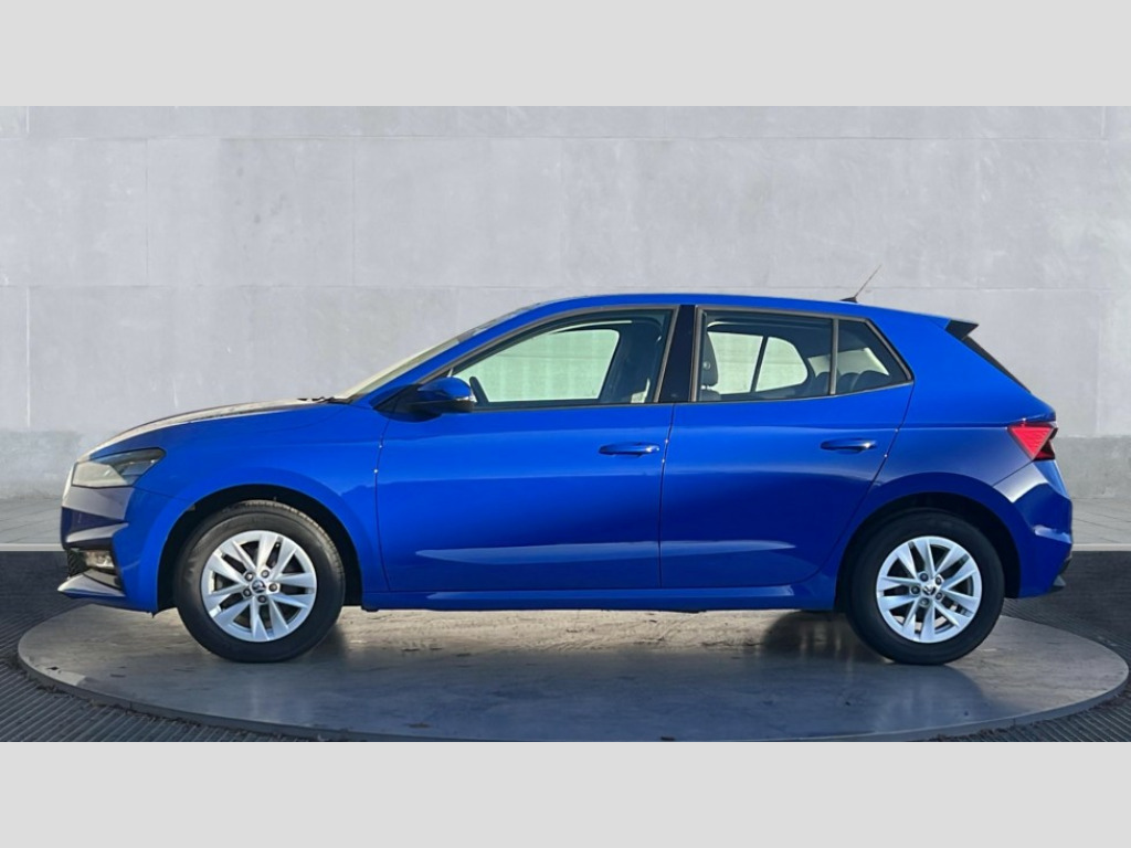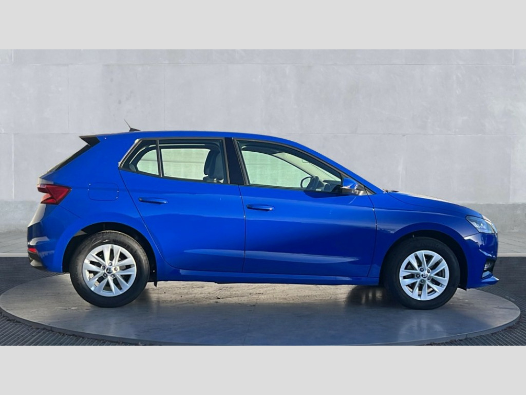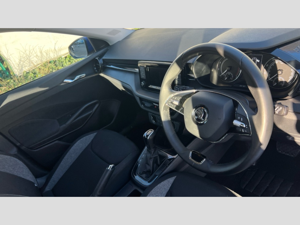 Skoda Fabia 1.0 TSI 110 SE Comfort 5dr DSG Bluetooth connection, Driver alert system - DAS, Electromechanical power steering, Exterior temperature gauge, Lane assist including road edge detection, Multifunction trip computer in black and white, Service interval indicator, Speed limiter, 2x USB-C in the front (for data transmission and charging), 4 speakers in front, Auxiliary socket for external MP3 player, DAB digital radio reception, Radio Swing with 6.5" colour display, Basic LED Headlights, Body colour door mirrors, Body coloured bumpers, Dimming rear view mirror with black frame, Door mirror integrated indicators, Electrically adjustable and heated door mirrors, Electrically adjustable front windows with function auto up/down, Front fog lights, Front window wiper intermittent control, Headlight range control - Automatic, Ice scraper in fuel cap, LED daytime running lights with coming and leaving home feature, Mechanical adjustable rear windows, Rain sensor, Rear LED fog light, Rear side wing doors, Rear window wiper with washing nozzles, Roof mounted spoiler, SKODA tailgate lettering in chrome, Third brake light, 2 reading lights in front and 2 reading lights in rear, 2 spoke leather multifunction steering wheel, 3 rear headrests, Backrest split and folding, Central console with fixed cup holder and storage box, Chrome handbrake release button, Fabric upholstery, Gearshift knob/handle in leather, Grain satin black interior door handles, Hand brake lever handle in leather, Height adjustable front headrests, Height adjustable front seats, Height adjustable steering wheel, ISOFIX and TopTether anchorage points to the outer rear seats, ISOFIX and TopTether on the front passenger seat, Luggage compartment lighting, Manual air conditioning, Manually adjustable lumbar support in front seats, Pollen filter, Rear seat bench unsplit, Single front passenger seat, Storm grey headlining, Sun visors with mirror and airbag label on passenger side, Ticket holder, 3-point height adjustable front seats belts with pretensioner and force limiter, Automatic warning lights in case of crash, Driver and passengers airbag with switch off function, e-Call+, ESC including ABS, MSR, ASR, EDS, HBA and XDS, Front and rear seat belt warning, FRONT ASSIST (AEB City and AEB Inter Urban), Front side airbags, Head airbags, Hill hold assist, One tone horn, Pedestrian protection, Three rear 3-points safety seat belts with pretensioner and force limiter including stop function for outer rear seat belts, Tyre pressure monitoring system, Anti-theft alarm system including immobiliser, interior monitoring, backup horn, and towing protection, Central locking with radio remote control, interior controls, SAFE function and 2 foldable keys, Black painted air vents, Glossy black decorative trim, Grain satin black central console cover, Grain satin black lower decorative trim, Satin black door and side trim panel in front, Anti-theft wheel bolts protection, Super-low rolling resistance tyres