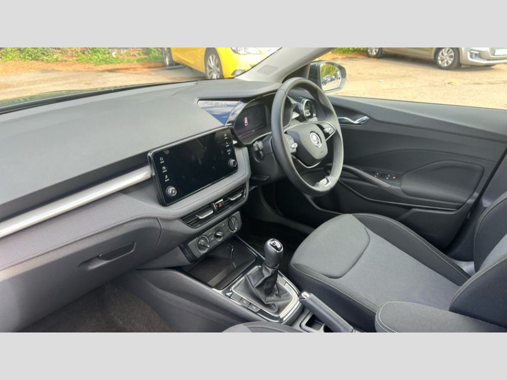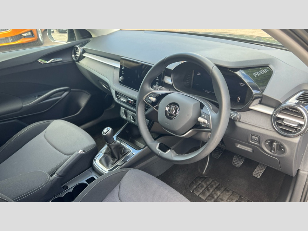Skoda Fabia 1.0 TSI 116 Colour Edition 5dr Advanced driver attention and drowsiness monitor, Bluetooth connection, Electromechanical power steering, Exterior temperature gauge, Service interval indicator, Traffic sign recognition, Virtual cockpit with 10.25" colour display, Wireless SmartLink for Apple CarPlay and Android Auto, 6 Speakers (4 in front and 2 in rear), Auxiliary socket for external MP3 player, DAB digital radio reception, Body coloured bumpers, Dimming rear view mirror with black frame, Door mirror integrated indicators, Front and rear electric windows, Front window wiper intermittent control, Headlight range control - Automatic, Ice scraper in fuel cap, LED daytime running lights with coming and leaving home feature, LED rear lights, Privacy glass, Rear LED fog light, Rear side wing doors, Rear window wiper with washing nozzles, Roof mounted spoiler, SKODA tailgate lettering in chrome, Third brake light, 2 reading lights in front and 2 reading lights in rear, 3 rear headrests, Backrest split and folding, Central console with removable cup holder and storage box, Chrome handbrake release button, Fabric upholstery, Front centre armrest, Gearshift knob/handle in leather, Grain satin black interior door handles, Hand brake lever handle in leather, Height adjustable front headrests, Height adjustable front seats, Height adjustable steering wheel, ISOFIX and TopTether anchorage points to the outer rear seats, ISOFIX and TopTether on the front passenger seat, Luggage compartment lighting, Manually adjustable lumbar support in front seats, Pollen filter, Rear seat bench unsplit, Single front passenger seat, Storm grey headlining, Sun visors with mirror and airbag label on passenger side, Textile floor mats, Ticket holder, Umbrella in drivers door, 3-point height adjustable front seats belts with pretensioner and force limiter, Automatic warning lights in case of crash, Driver and passengers airbag with switch off function, e-Call+, ESC including ABS, MSR, ASR, EDS, HBA and XDS, Front and rear seat belt warning, FRONT ASSIST (AEB City and AEB Inter Urban), Front side airbags, Head airbags, One tone horn, Pedestrian protection, Three rear 3-points safety seat belts with pretensioner and force limiter including stop function for outer rear seat belts, Tyre pressure monitoring system, Anti-theft alarm system including immobiliser, interior monitoring, backup horn, and towing protection, Central locking with radio remote control, interior controls, SAFE function and 2 foldable keys, Colour Edition air vents, Grain satin black central console cover, Metallic grey upper decorative trim, Satin black door and side trim panel in front, Textile Kota grey lower decorative inserts, Anti-theft wheel bolts protection, Super-low rolling resistance tyres