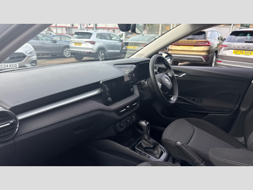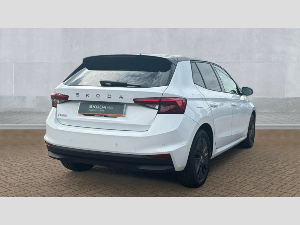 Skoda Fabia 1.0 TSI 116 Colour Edition 5dr DSG Advanced driver attention and drowsiness monitor, Bluetooth connection, Electromechanical power steering, Exterior temperature gauge, Service interval indicator, Traffic sign recognition, Virtual cockpit with 10.25" colour display, Wireless SmartLink for Apple CarPlay and Android Auto, 6 Speakers (4 in front and 2 in rear), Auxiliary socket for external MP3 player, DAB digital radio reception, Body coloured bumpers, Dimming rear view mirror with black frame, Door mirror integrated indicators, Front and rear electric windows, Front window wiper intermittent control, Headlight range control - Automatic, Ice scraper in fuel cap, LED daytime running lights with coming and leaving home feature, LED rear lights, Privacy glass, Rear LED fog light, Rear side wing doors, Rear window wiper with washing nozzles, Roof mounted spoiler, SKODA tailgate lettering in chrome, Third brake light, 2 reading lights in front and 2 reading lights in rear, 3 rear headrests, Backrest split and folding, Central console with removable cup holder and storage box, Chrome handbrake release button, Fabric upholstery, Front centre armrest, Gearshift knob/handle in leather, Grain satin black interior door handles, Hand brake lever handle in leather, Height adjustable front headrests, Height adjustable front seats, Height adjustable steering wheel, ISOFIX and TopTether anchorage points to the outer rear seats, ISOFIX and TopTether on the front passenger seat, Luggage compartment lighting, Manually adjustable lumbar support in front seats, Pollen filter, Rear seat bench unsplit, Single front passenger seat, Storm grey headlining, Sun visors with mirror and airbag label on passenger side, Textile floor mats, Ticket holder, Umbrella in drivers door, 3-point height adjustable front seats belts with pretensioner and force limiter, Automatic warning lights in case of crash, Driver and passengers airbag with switch off function, e-Call+, ESC including ABS, MSR, ASR, EDS, HBA and XDS, Front and rear seat belt warning, FRONT ASSIST (AEB City and AEB Inter Urban), Front side airbags, Head airbags, Hill hold control, One tone horn, Pedestrian protection, Three rear 3-points safety seat belts with pretensioner and force limiter including stop function for outer rear seat belts, Tyre pressure monitoring system, Anti-theft alarm system including immobiliser, interior monitoring, backup horn, and towing protection, Central locking with radio remote control, interior controls, SAFE function and 2 foldable keys, Colour Edition air vents, Grain satin black central console cover, Metallic grey upper decorative trim, Satin black door and side trim panel in front, Textile Kota grey lower decorative inserts, Anti-theft wheel bolts protection, Super-low rolling resistance tyres