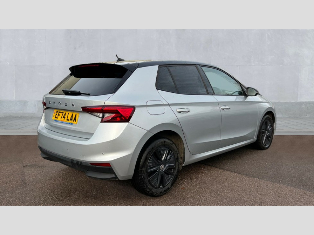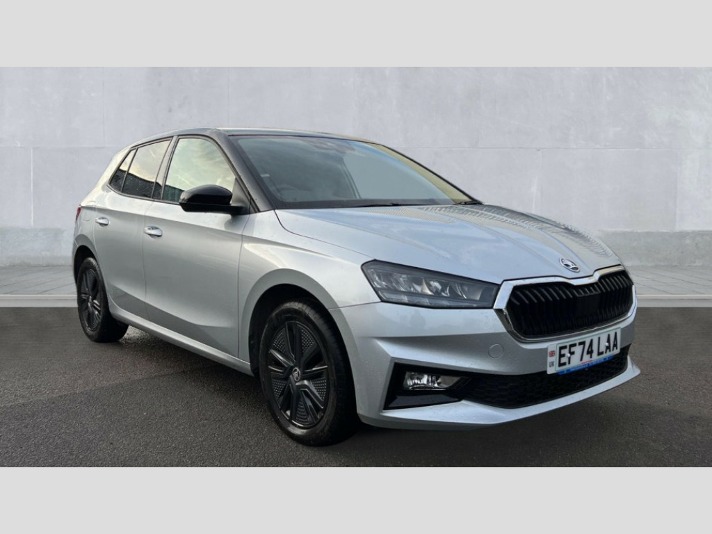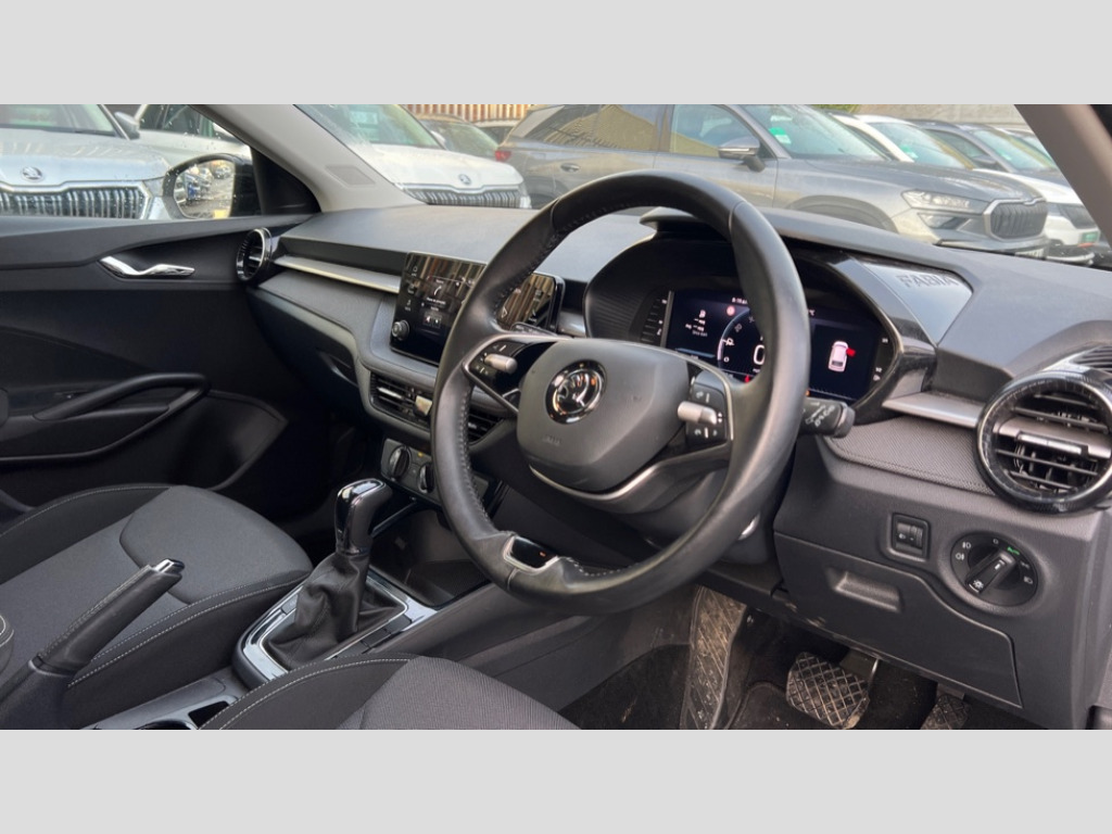 Skoda Fabia 1.0 TSI 116 Colour Edition 5dr DSG Advanced driver attention and drowsiness monitor, Bluetooth connection, Electromechanical power steering, Exterior temperature gauge, Service interval indicator, Traffic sign recognition, Virtual cockpit with 10.25" colour display, Wireless SmartLink for Apple CarPlay and Android Auto, 6 Speakers (4 in front and 2 in rear), Auxiliary socket for external MP3 player, DAB digital radio reception, Body coloured bumpers, Dimming rear view mirror with black frame, Door mirror integrated indicators, Front and rear electric windows, Front window wiper intermittent control, Headlight range control - Automatic, Ice scraper in fuel cap, LED daytime running lights with coming and leaving home feature, LED rear lights, Privacy glass, Rear LED fog light, Rear side wing doors, Rear window wiper with washing nozzles, Roof mounted spoiler, SKODA tailgate lettering in chrome, Third brake light, 2 reading lights in front and 2 reading lights in rear, 3 rear headrests, Backrest split and folding, Central console with removable cup holder and storage box, Chrome handbrake release button, Fabric upholstery, Front centre armrest, Gearshift knob/handle in leather, Grain satin black interior door handles, Hand brake lever handle in leather, Height adjustable front headrests, Height adjustable front seats, Height adjustable steering wheel, ISOFIX and TopTether anchorage points to the outer rear seats, ISOFIX and TopTether on the front passenger seat, Luggage compartment lighting, Manually adjustable lumbar support in front seats, Pollen filter, Rear seat bench unsplit, Single front passenger seat, Storm grey headlining, Sun visors with mirror and airbag label on passenger side, Textile floor mats, Ticket holder, Umbrella in drivers door, 3-point height adjustable front seats belts with pretensioner and force limiter, Automatic warning lights in case of crash, Driver and passengers airbag with switch off function, e-Call+, ESC including ABS, MSR, ASR, EDS, HBA and XDS, Front and rear seat belt warning, FRONT ASSIST (AEB City and AEB Inter Urban), Front side airbags, Head airbags, Hill hold control, One tone horn, Pedestrian protection, Three rear 3-points safety seat belts with pretensioner and force limiter including stop function for outer rear seat belts, Tyre pressure monitoring system, Anti-theft alarm system including immobiliser, interior monitoring, backup horn, and towing protection, Central locking with radio remote control, interior controls, SAFE function and 2 foldable keys, Colour Edition air vents, Grain satin black central console cover, Metallic grey upper decorative trim, Satin black door and side trim panel in front, Textile Kota grey lower decorative inserts, Anti-theft wheel bolts protection, Super-low rolling resistance tyres