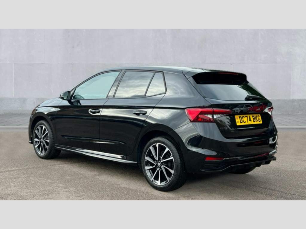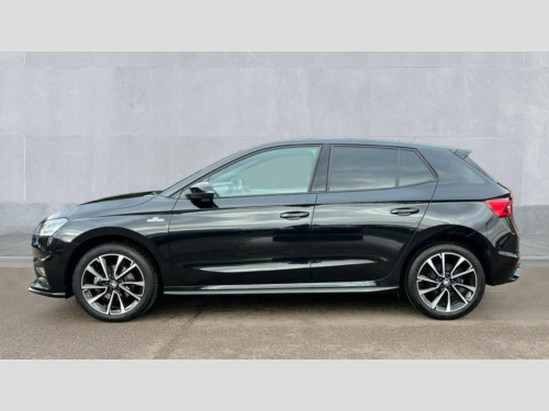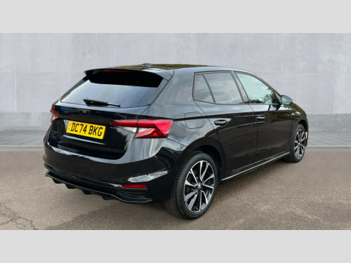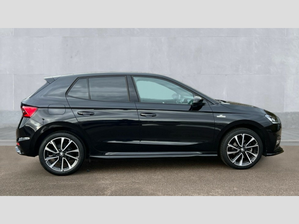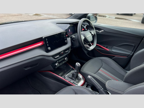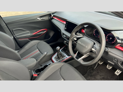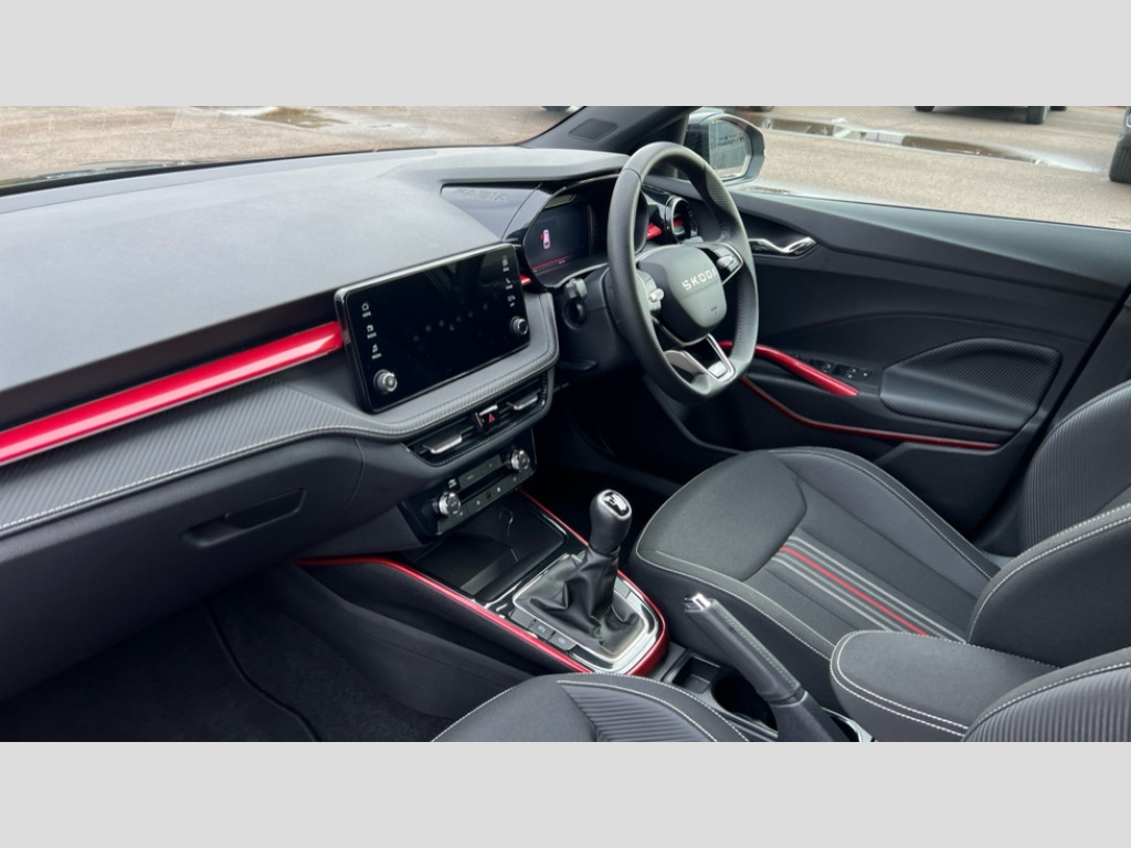 Skoda Fabia 1.0 TSI 116 Monte Carlo 5dr Advanced driver attention and drowsiness monitor, Bluetooth connection, Electromechanical power steering, Exterior temperature gauge, Service interval indicator, Traffic sign recognition, Virtual cockpit with 10.25" colour display, Wireless SmartLink for Apple CarPlay and Android Auto, 6 Speakers (4 in front and 2 in rear), Auxiliary socket for external MP3 player, DAB digital radio reception, Auto dimming rear view mirror, Black radiator grille, Body coloured bumpers, Door mirror integrated indicators, Front and rear electric windows, Front window wiper intermittent control, Headlight range control - Automatic, Ice scraper in fuel cap, LED daytime running lights with coming and leaving home feature, LED rear lights, Monte Carlo badging, Privacy glass, Rear LED fog light, Rear side wing doors, Rear window wiper with washing nozzles, Roof mounted spoiler, SKODA tailgate lettering in black, Sports bumpers, Third brake light, 2 reading lights in front and 2 reading lights in rear, 3 rear headrests, Aluminium pedals, Backrest split and folding, Black headlining, Central console with removable cup holder and storage box, Chrome handbrake release button, Door sills with fabia badging, Dual zone air conditioning with climatronic electronic control, Fabric/artificial leather upholstery, Front centre armrest, Front sports seats, Gearshift knob/handle in leather, Hand brake lever handle in leather, Height adjustable front headrests, Height adjustable front seats, Height adjustable steering wheel, ISOFIX and TopTether anchorage points to the outer rear seats, ISOFIX and TopTether on the front passenger seat, Luggage compartment lighting, Manually adjustable lumbar support in front seats, Metallic painted red central console cover, Metallic red interior door handles, Pollen filter, Rear seat bench unsplit, Single front passenger seat, Sun visors with mirror and airbag label on passenger side, Textile floor mats, Ticket holder, Umbrella in drivers door, 3-point height adjustable front seats belts with pretensioner and force limiter, Automatic warning lights in case of crash, Driver and passengers airbag with switch off function, e-Call+, ESC including ABS, MSR, ASR, EDS, HBA and XDS, Front and rear seat belt warning, FRONT ASSIST (AEB City and AEB Inter Urban), Front side airbags, Head airbags, One tone horn, Pedestrian protection, Three rear 3-points safety seat belts with pretensioner and force limiter including stop function for outer rear seat belts, Tyre pressure monitoring system, Anti-theft alarm system including immobiliser, interior monitoring, backup horn, and towing protection, Central locking with radio remote control, interior controls, SAFE function and 2 foldable keys, Carbon effect door and side trim panels, Carbon effect lower decorative trim with white stitching, Monte carlo air vents, Red metallic upper decorative trim, Anti-theft wheel bolts protection, Super-low rolling resistance tyres