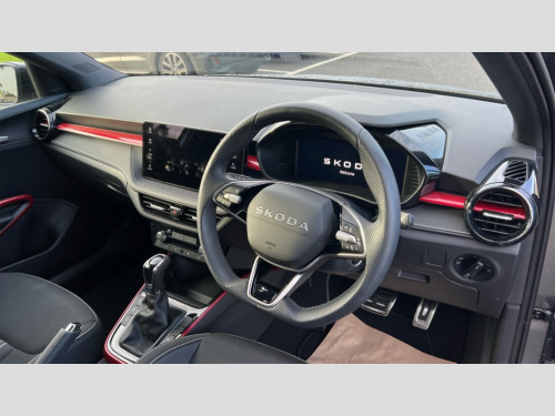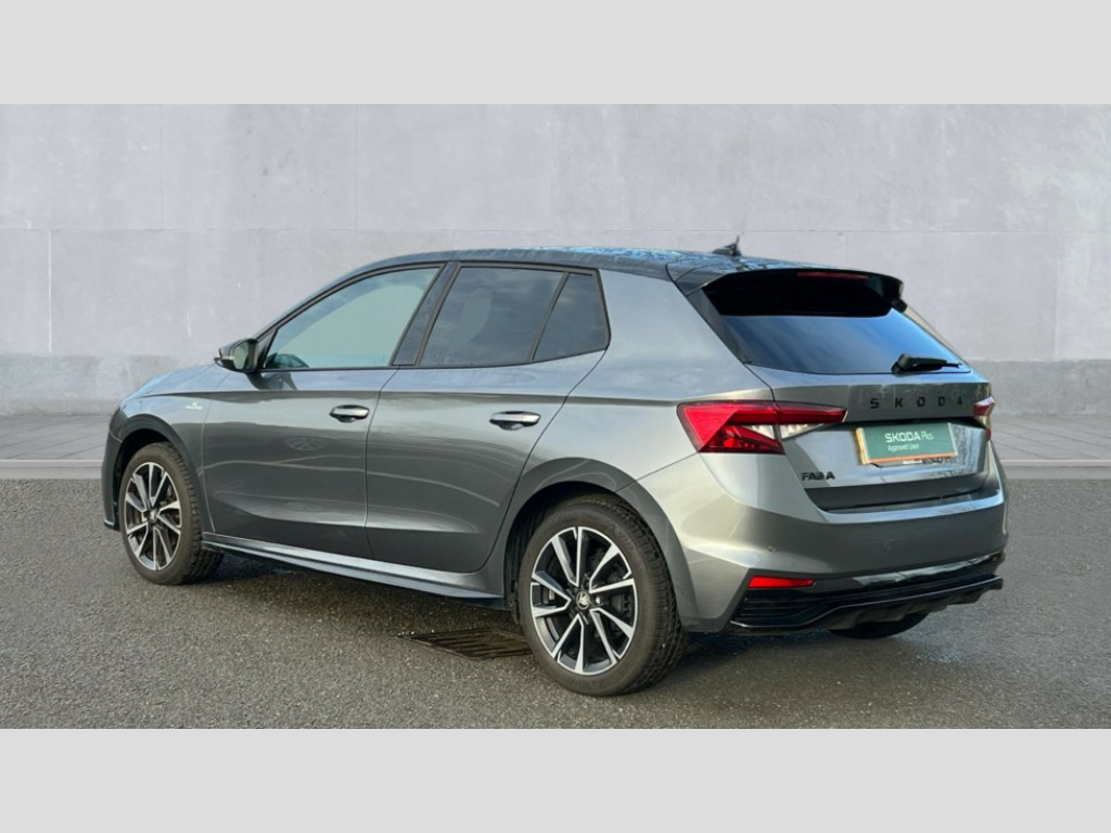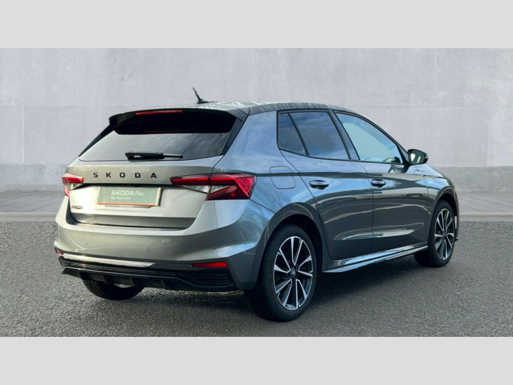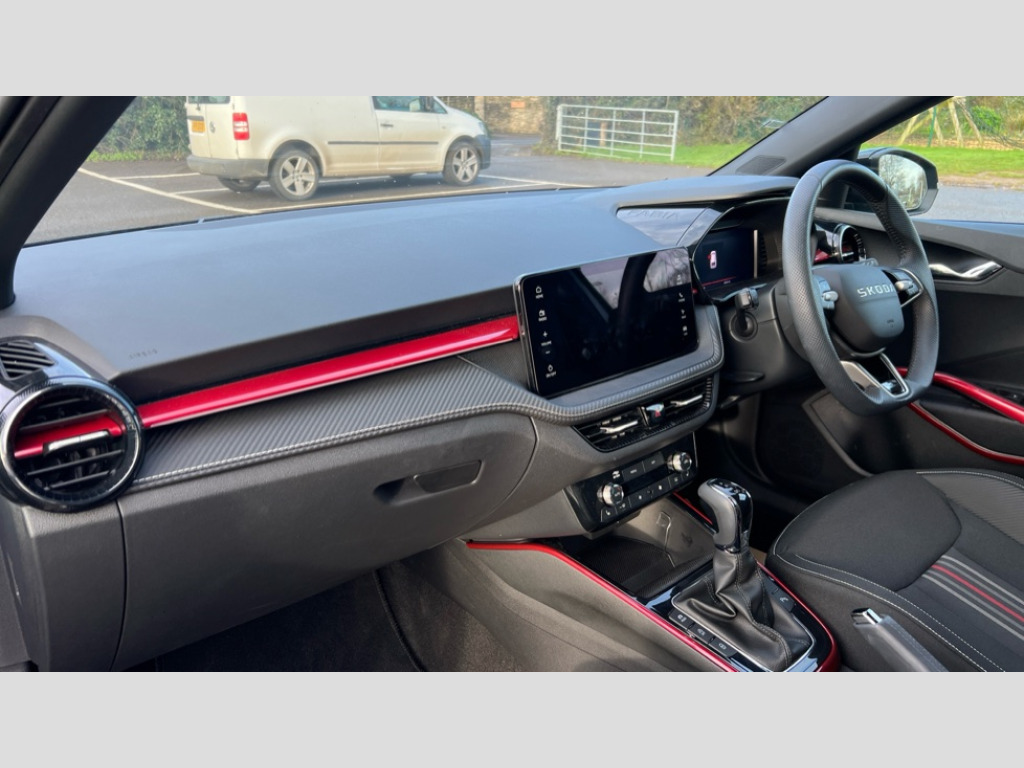 Skoda Fabia 1.0 TSI 116 Monte Carlo Edition 5dr DSG Advanced driver attention and drowsiness monitor, Bluetooth connection, Electromechanical power steering, Exterior temperature gauge, Service interval indicator, Traffic sign recognition, Virtual cockpit with 10.25" colour display, Wireless SmartLink for Apple CarPlay and Android Auto, 6 Speakers (4 in front and 2 in rear), 9.2" colour display skoda navigation system with voice control and web radio, Auxiliary socket for external MP3 player, DAB digital radio reception, Auto dimming rear view mirror, Black radiator grille, Body coloured bumpers, Door mirror integrated indicators, Dynamic headlight range control, Front and rear electric windows, Front window wiper intermittent control, Ice scraper in fuel cap, LED 3rd brake light, LED daytime running lights with coming and leaving home feature, LED rear lights, Monte Carlo badging, Privacy glass, Rear LED fog light, Rear side wing doors, Rear window wiper with washing nozzles, Roof mounted spoiler, SKODA tailgate lettering in black, Sports bumpers, Unique dark chrome design logo on alloy wheels, 2 LED reading lights in front and rear, 3 rear headrests, Aluminium pedals, Backrest split and folding, Black headlining, Central console with removable cup holder and storage box, Chrome handbrake release button, Door sills with fabia badging, Dual zone air conditioning with climatronic electronic control, Fabric/artificial leather upholstery, Front centre armrest, Front sports seats, Gearshift knob/handle in leather, Hand brake lever handle in leather, Height adjustable front headrests, Height adjustable front seats, Height adjustable steering wheel, ISOFIX and TopTether anchorage points to the outer rear seats, ISOFIX and TopTether on the front passenger seat, Luggage compartment lighting, Manually adjustable lumbar support in front seats, Metallic painted red central console cover, Metallic red interior door handles, Pollen filter, Rear seat bench unsplit, Single front passenger seat, Skoda lettering on steering wheel, Sun visors with mirror and airbag label on passenger side, Textile floor mats, Ticket holder, Umbrella in drivers door, Convenience pack - Fabia, Light and view pack plus - Fabia, 3-point height adjustable front seats belts with pretensioner and force limiter, Automatic warning lights in case of crash, Driver and passengers airbag with switch off function, e-Call+, ESC including ABS, MSR, ASR, EDS, HBA and XDS, Front and rear seat belt warning, FRONT ASSIST (AEB City and AEB Inter Urban), Front side airbags, Head airbags, Hill hold control, One tone horn, Pedestrian protection, Three rear 3-points safety seat belts with pretensioner and force limiter including stop function for outer rear seat belts, Tyre pressure monitoring system, Anti-theft alarm system including immobiliser, interior monitoring, backup horn, and towing protection, Central locking with radio remote control, interior controls, SAFE function and 2 foldable keys, Black painted air vents, Carbon effect door and side trim panels, Carbon effect lower decorative trim with white stitching, Red metallic upper decorative trim, Anti-theft wheel bolts protection, Super-low rolling resistance tyres